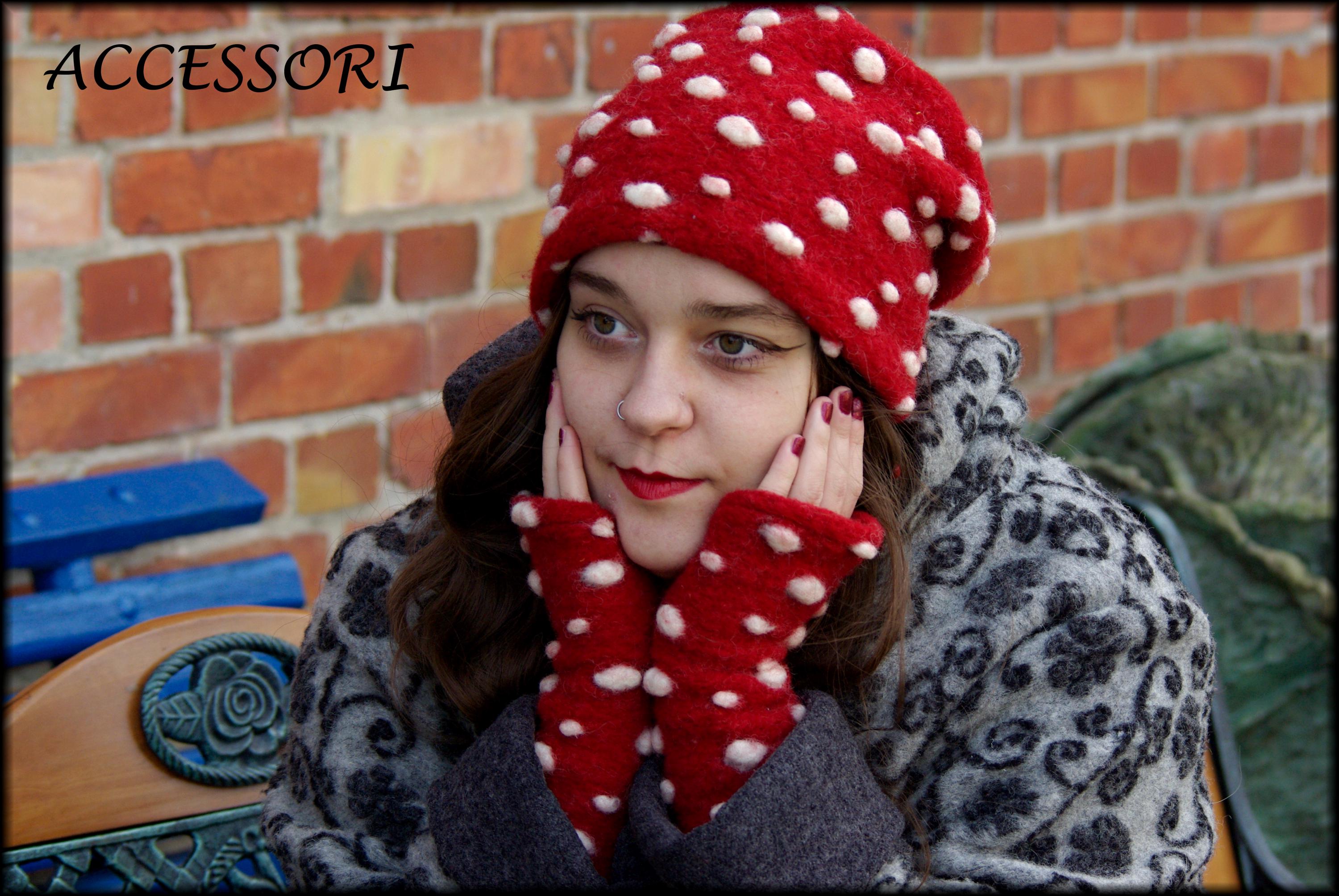 Arm warmers made of wool fabric (80% wool, 20% cotton) with thumb hole