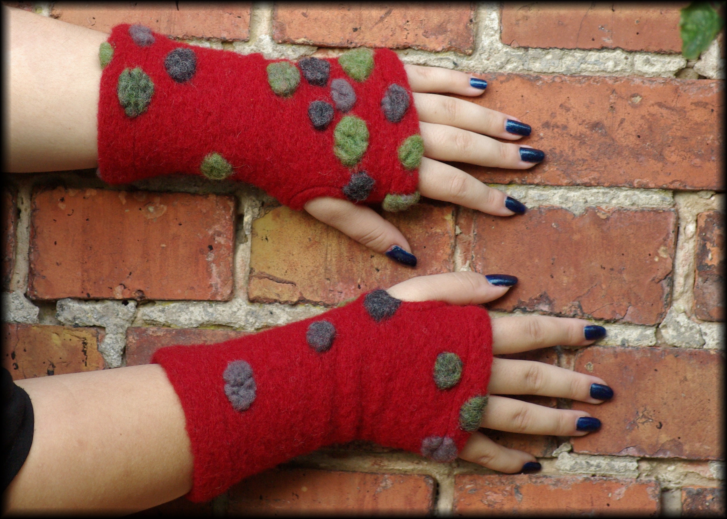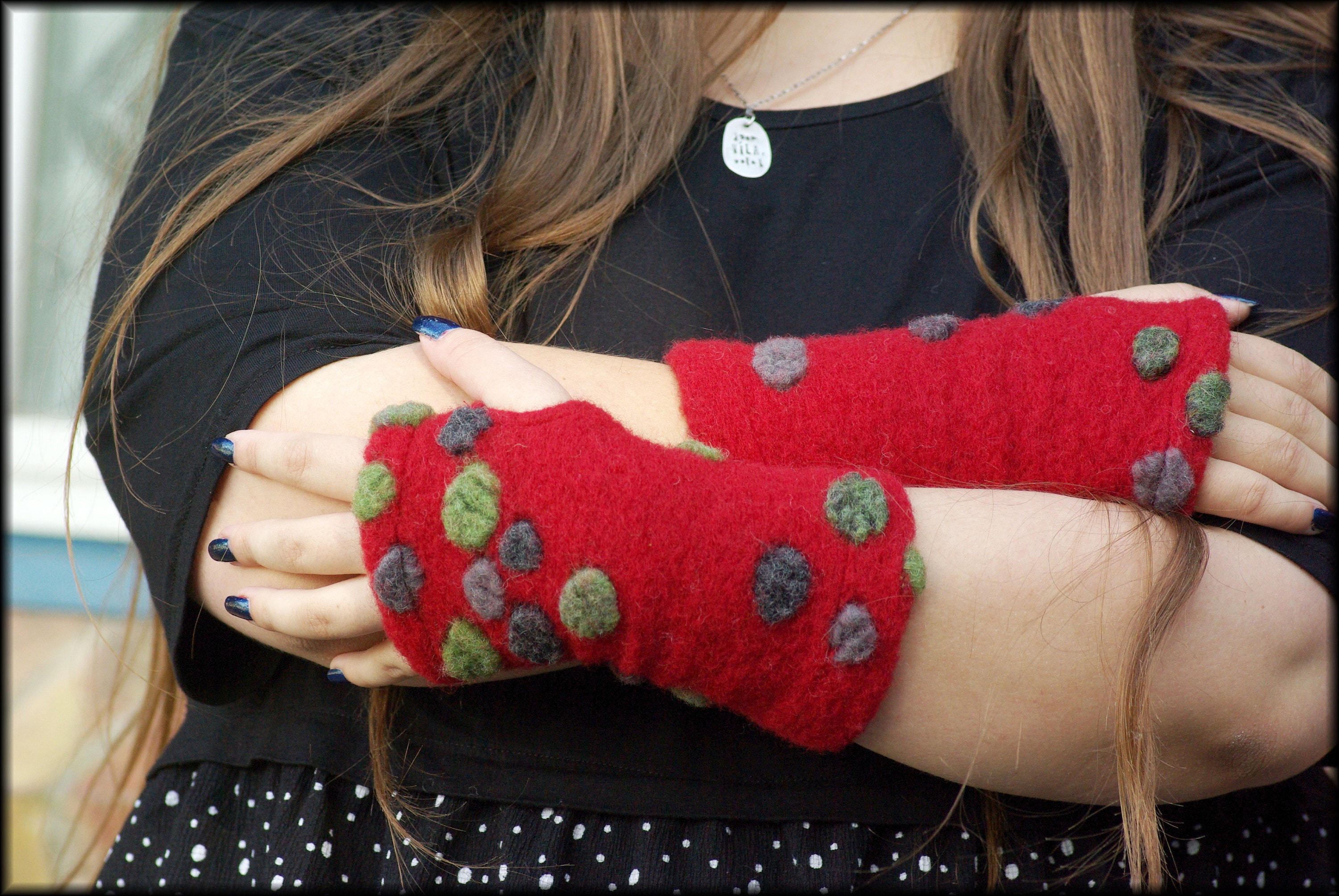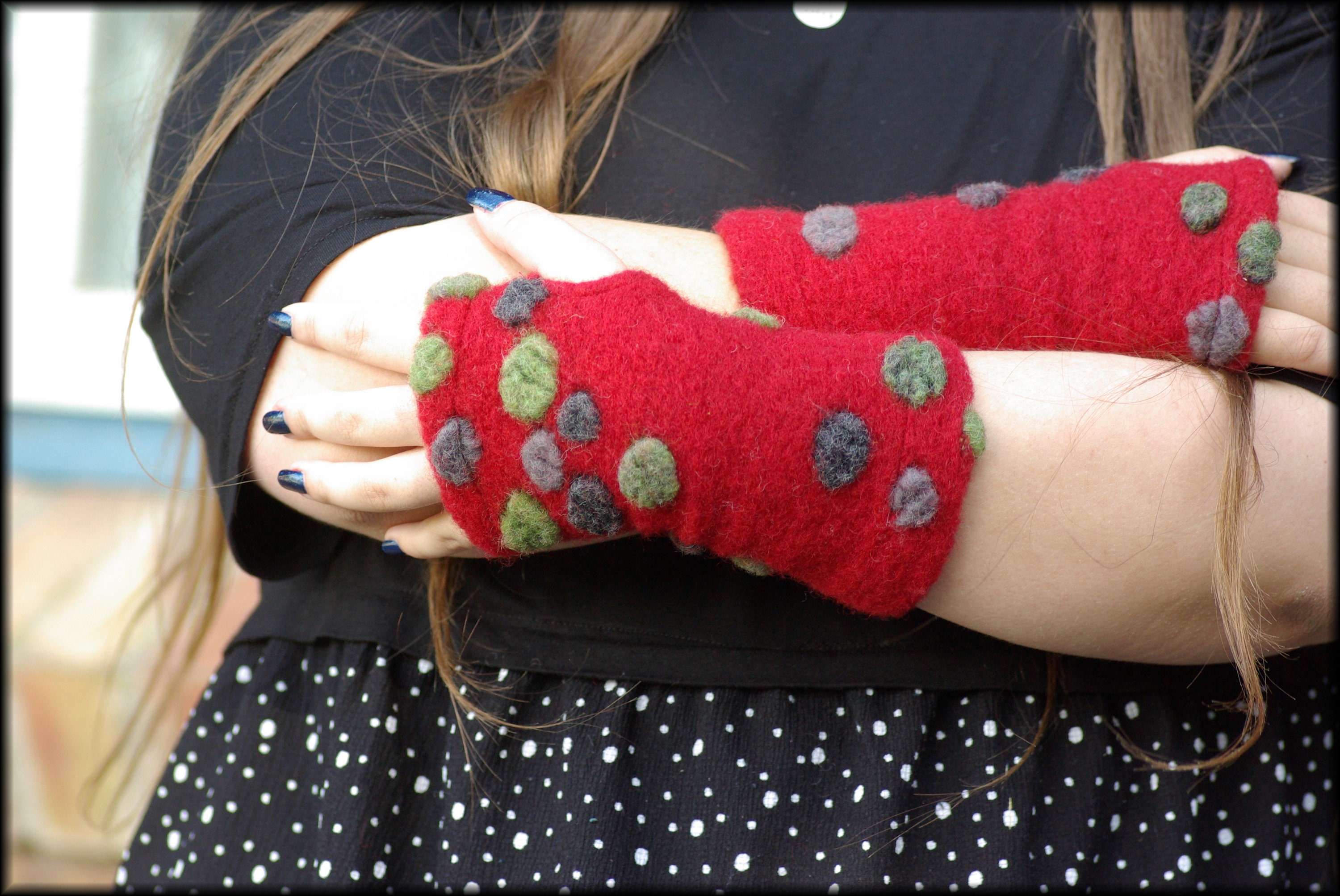 Warme Stulpen in rot und grün. Sehr hübsch gearbeitet.