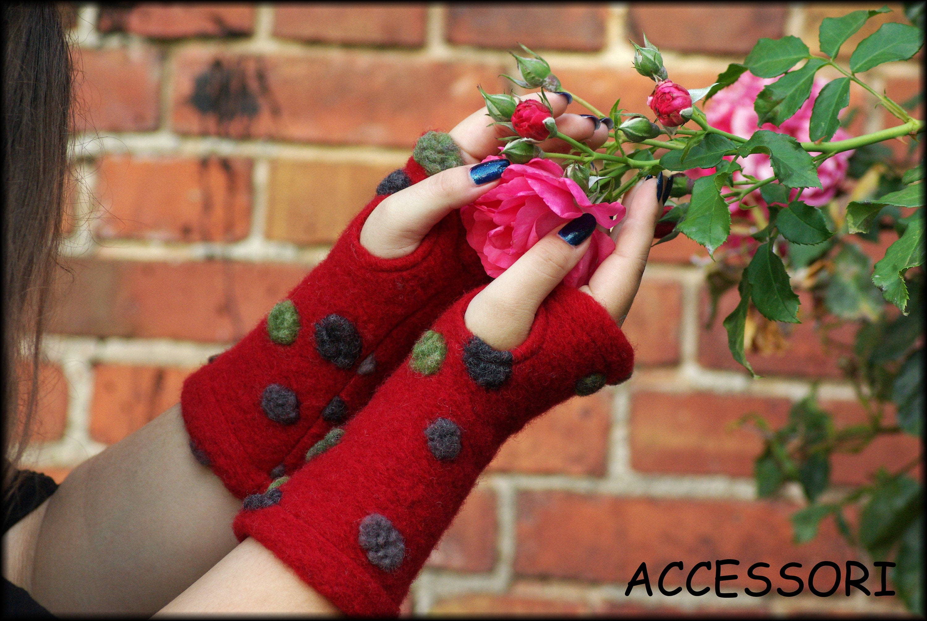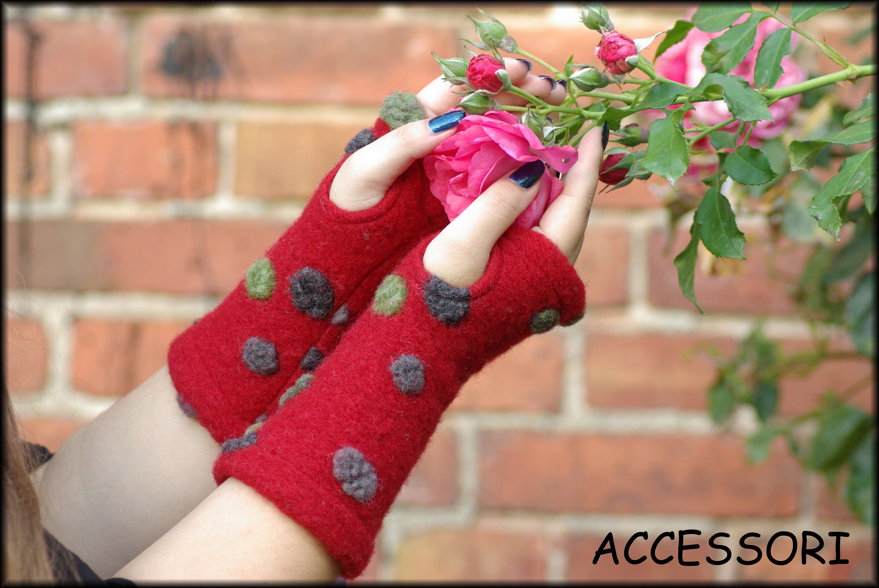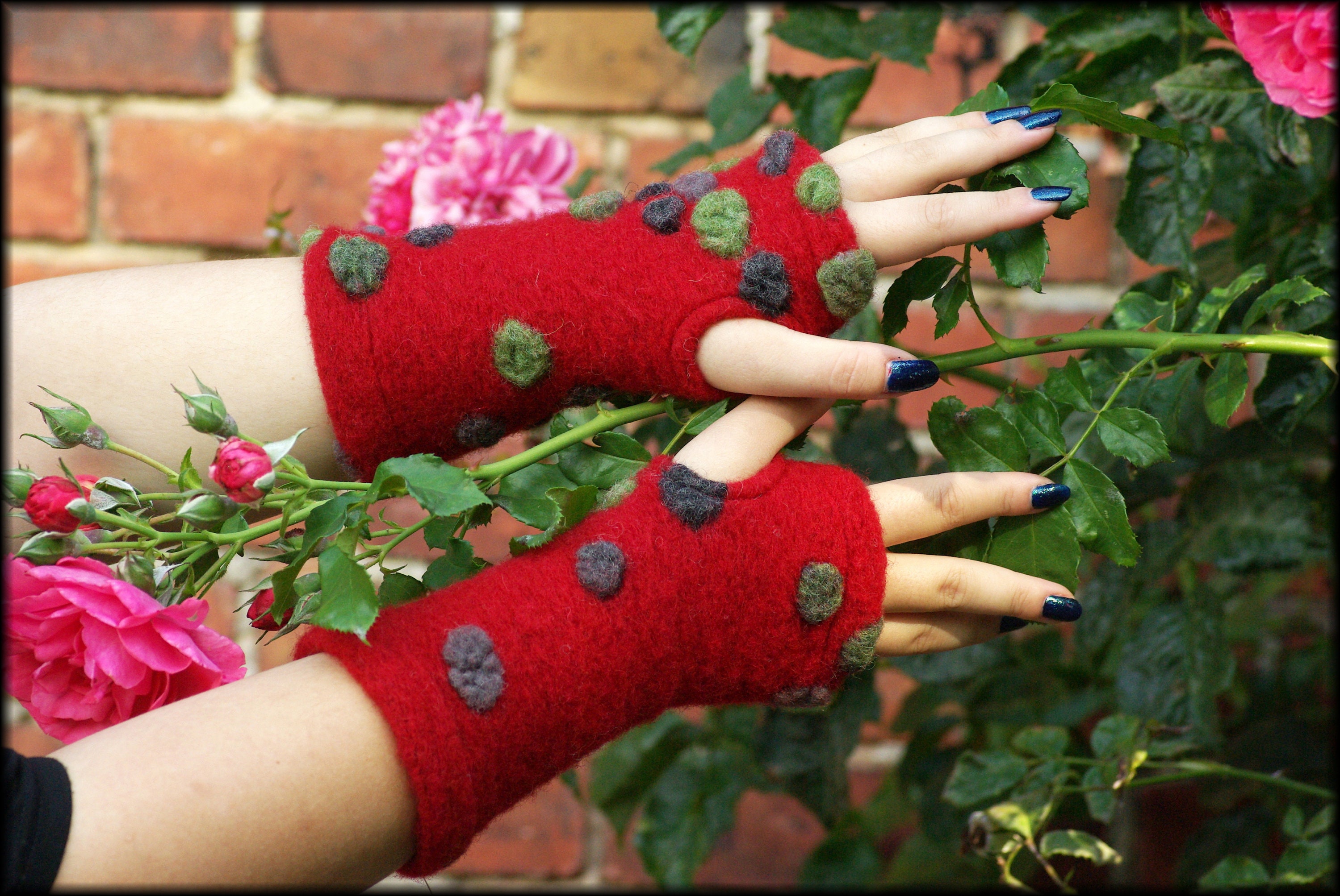 Warme Stulpen in rot und grün. Sehr hübsch gearbeitet.