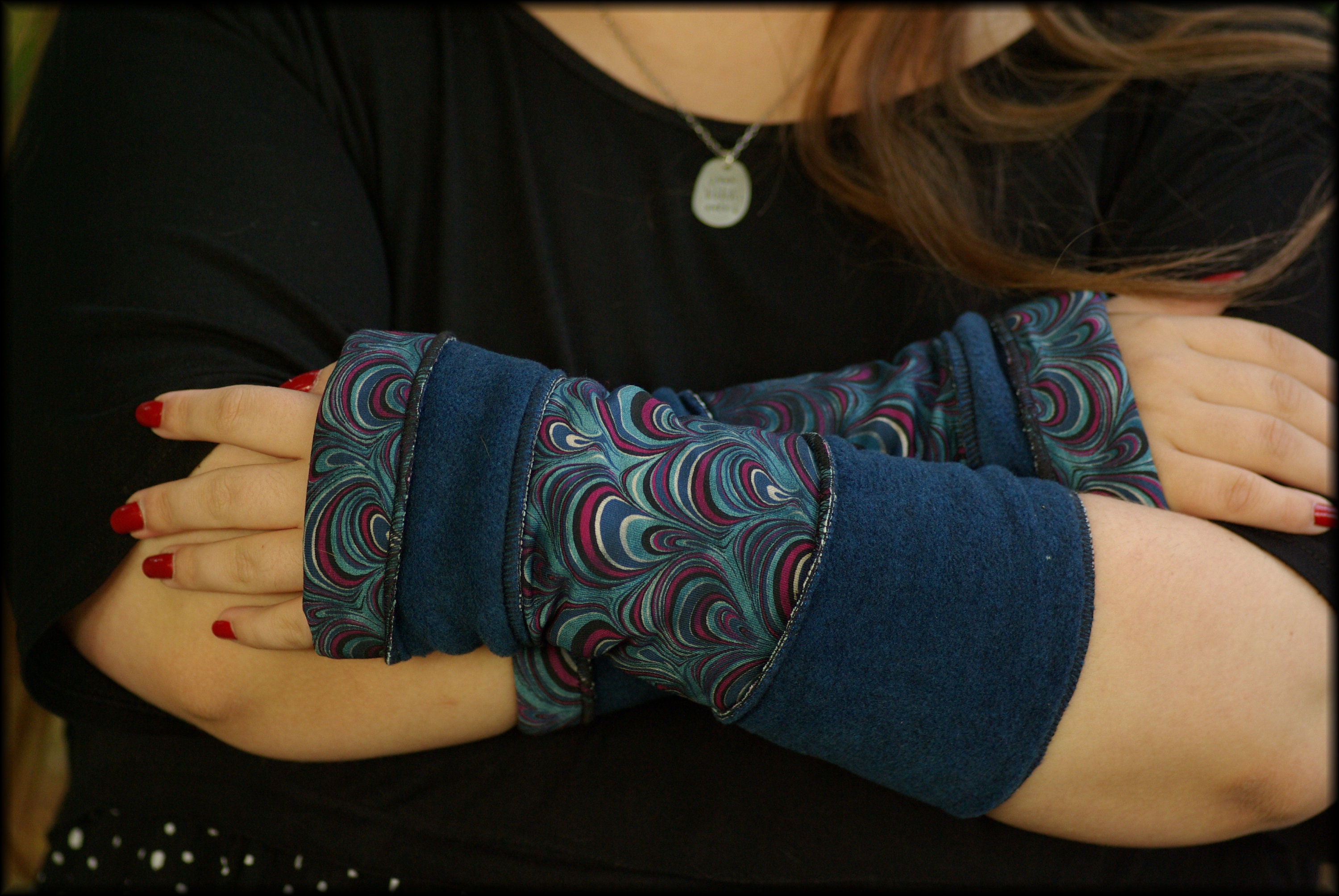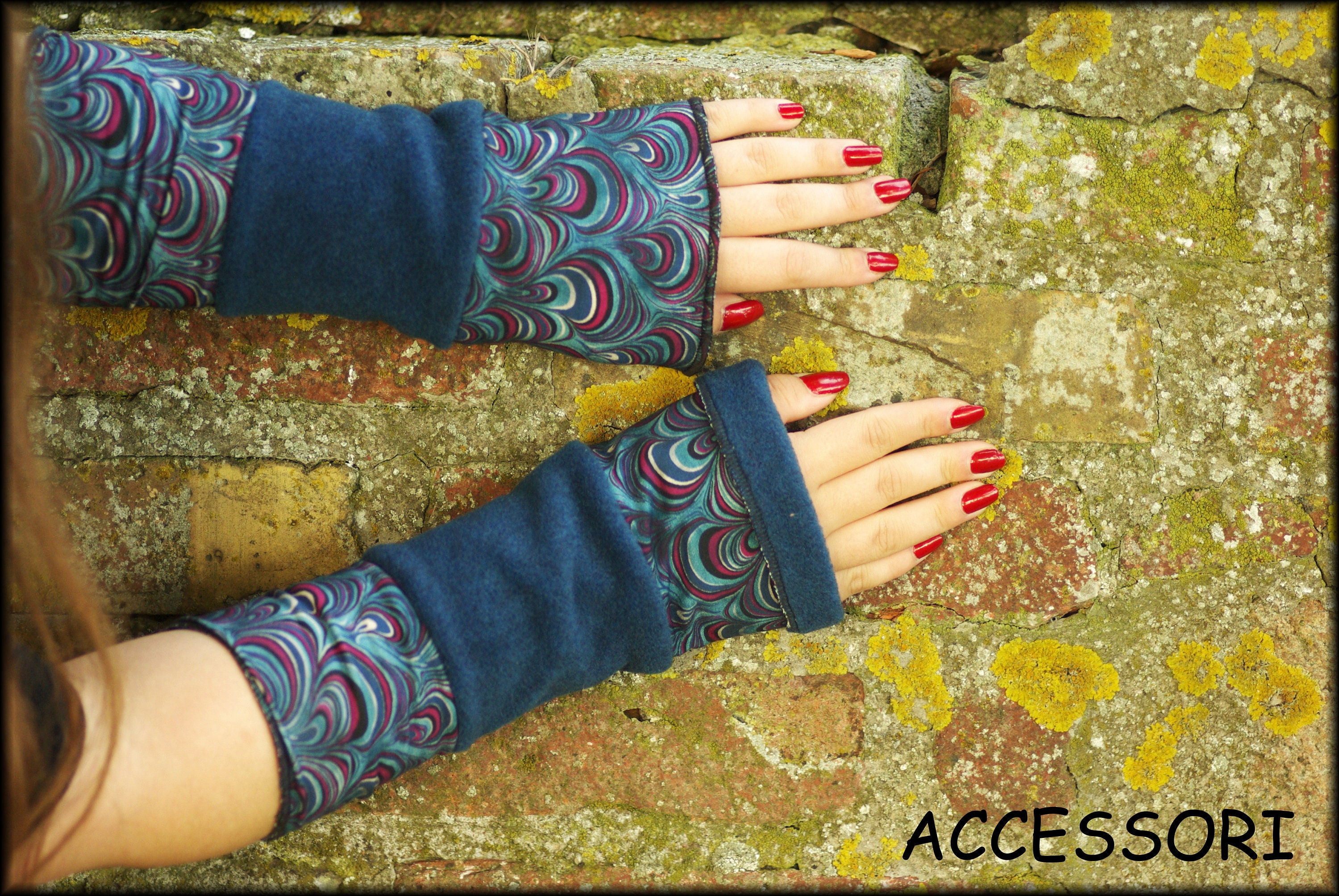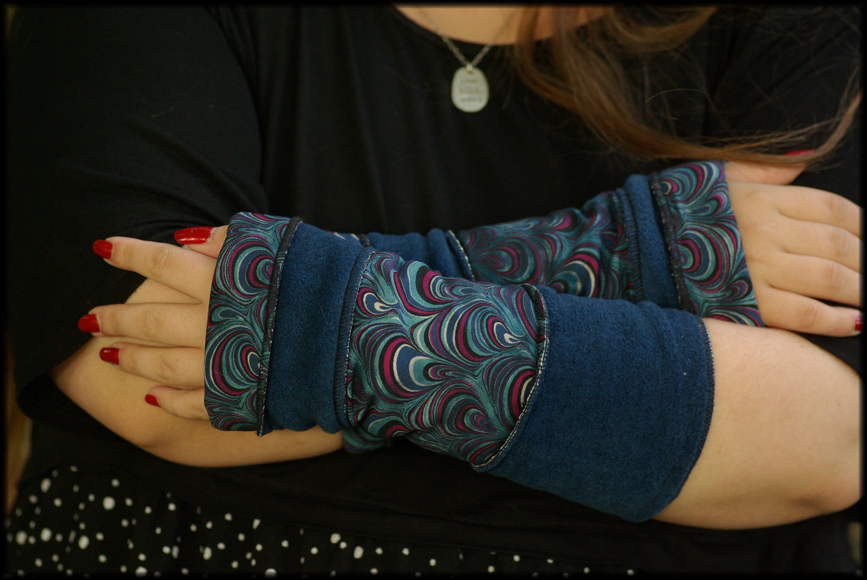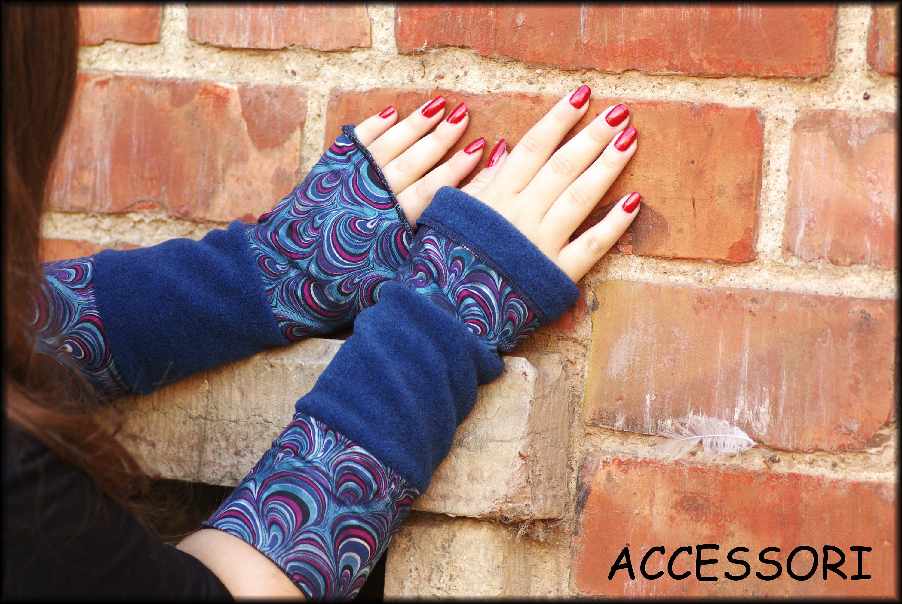 Beautiful arm warmers in blue color, both sides, for turning and turning, length 25 cm, width 11 cm (on request I can also sew other dimensions). They are sewn from double fabric.