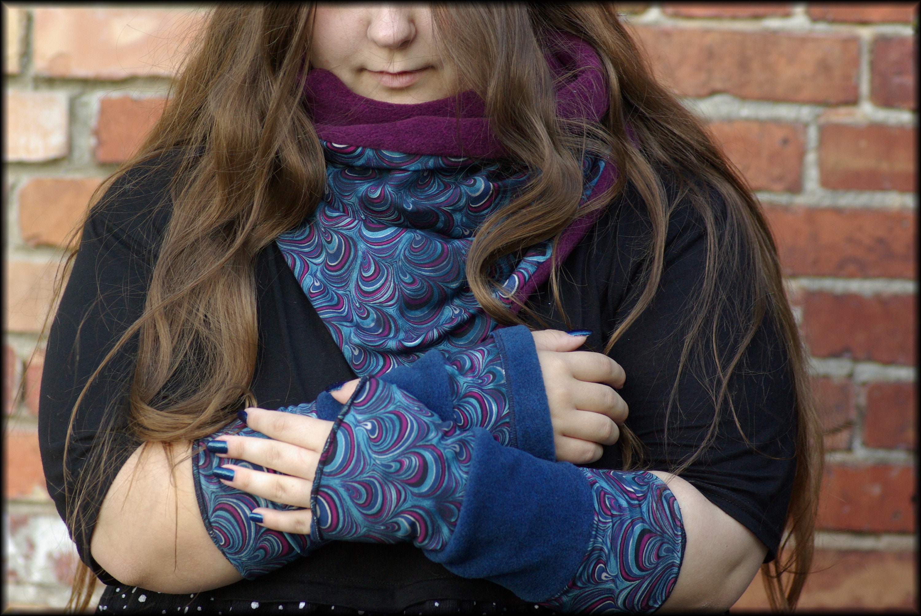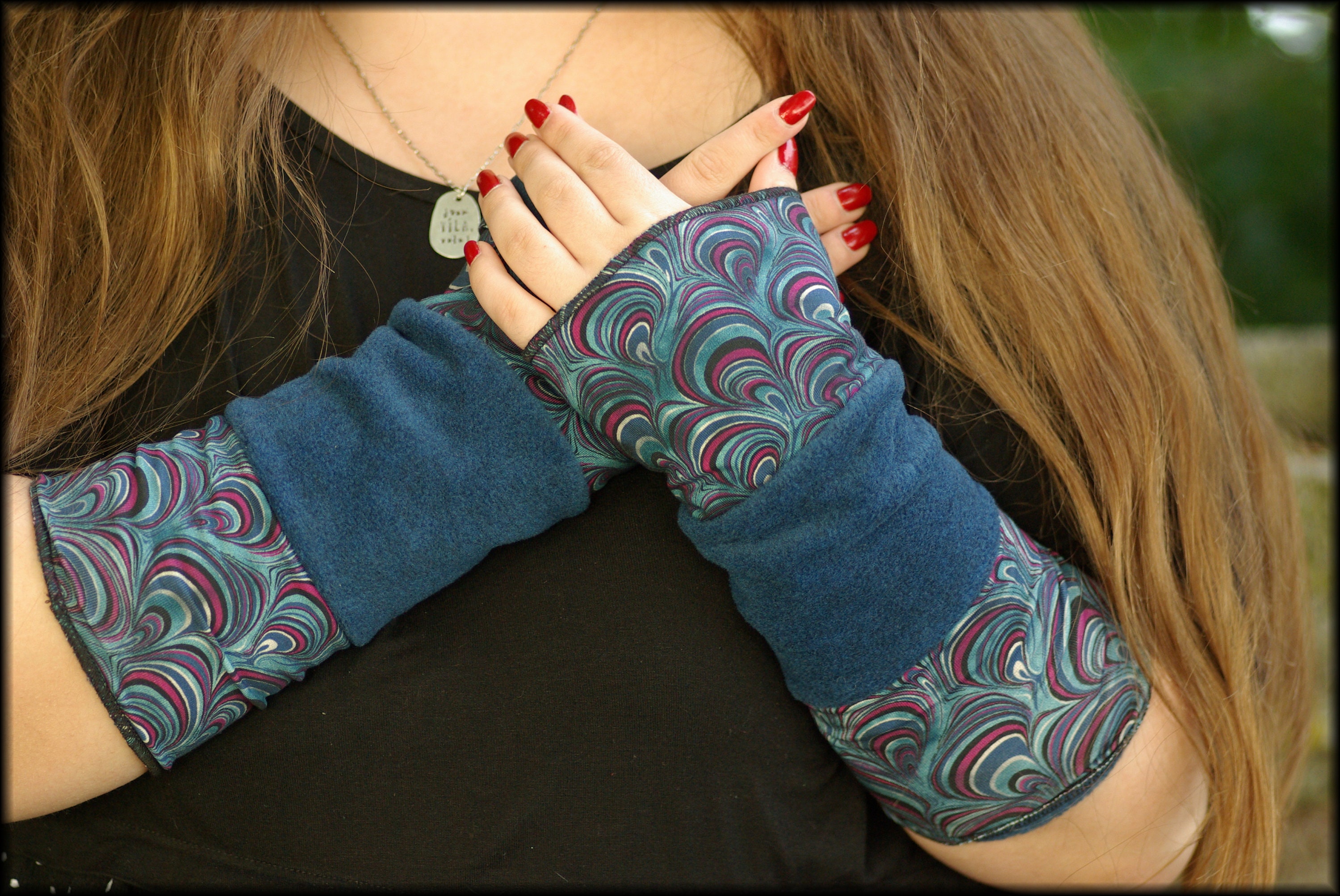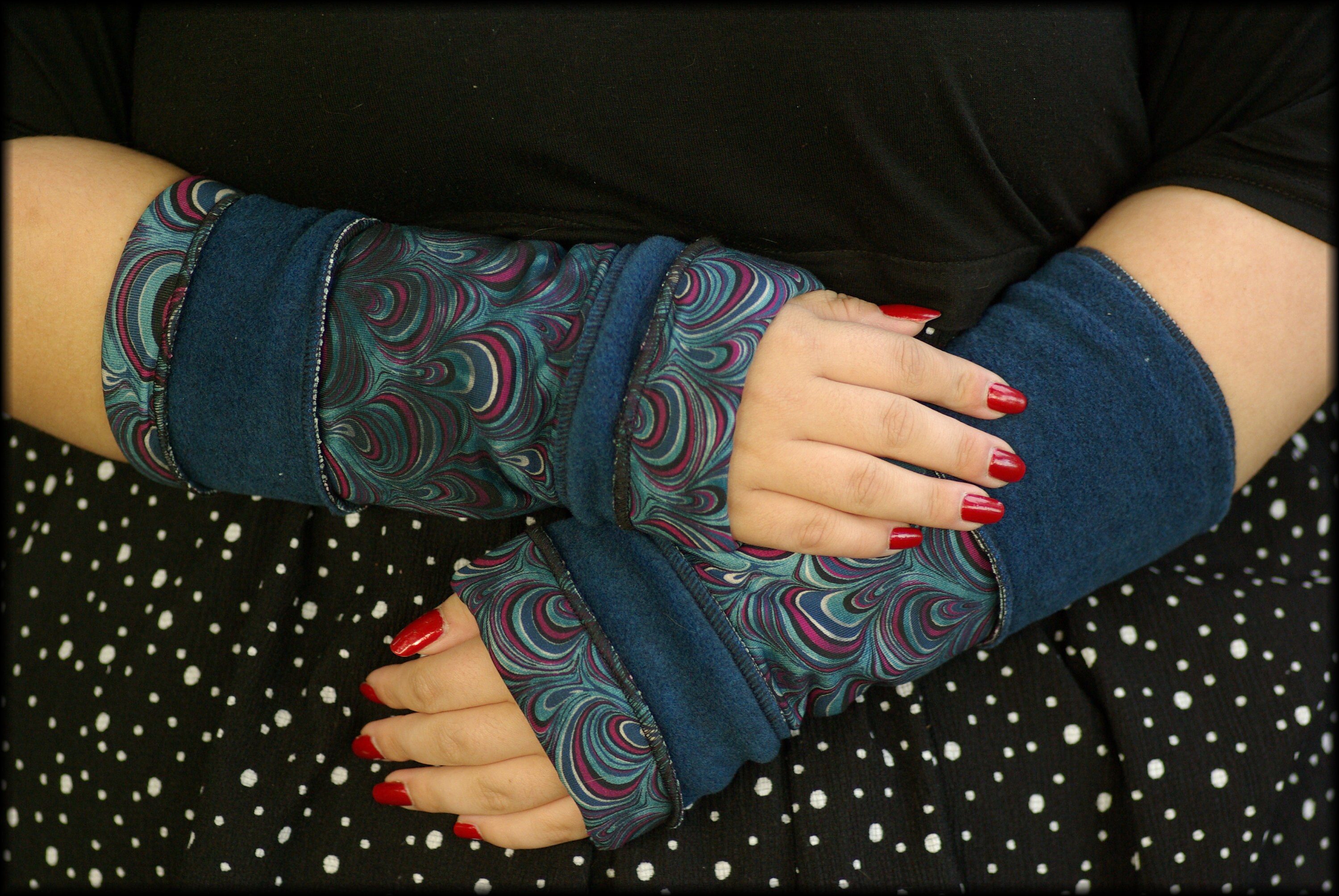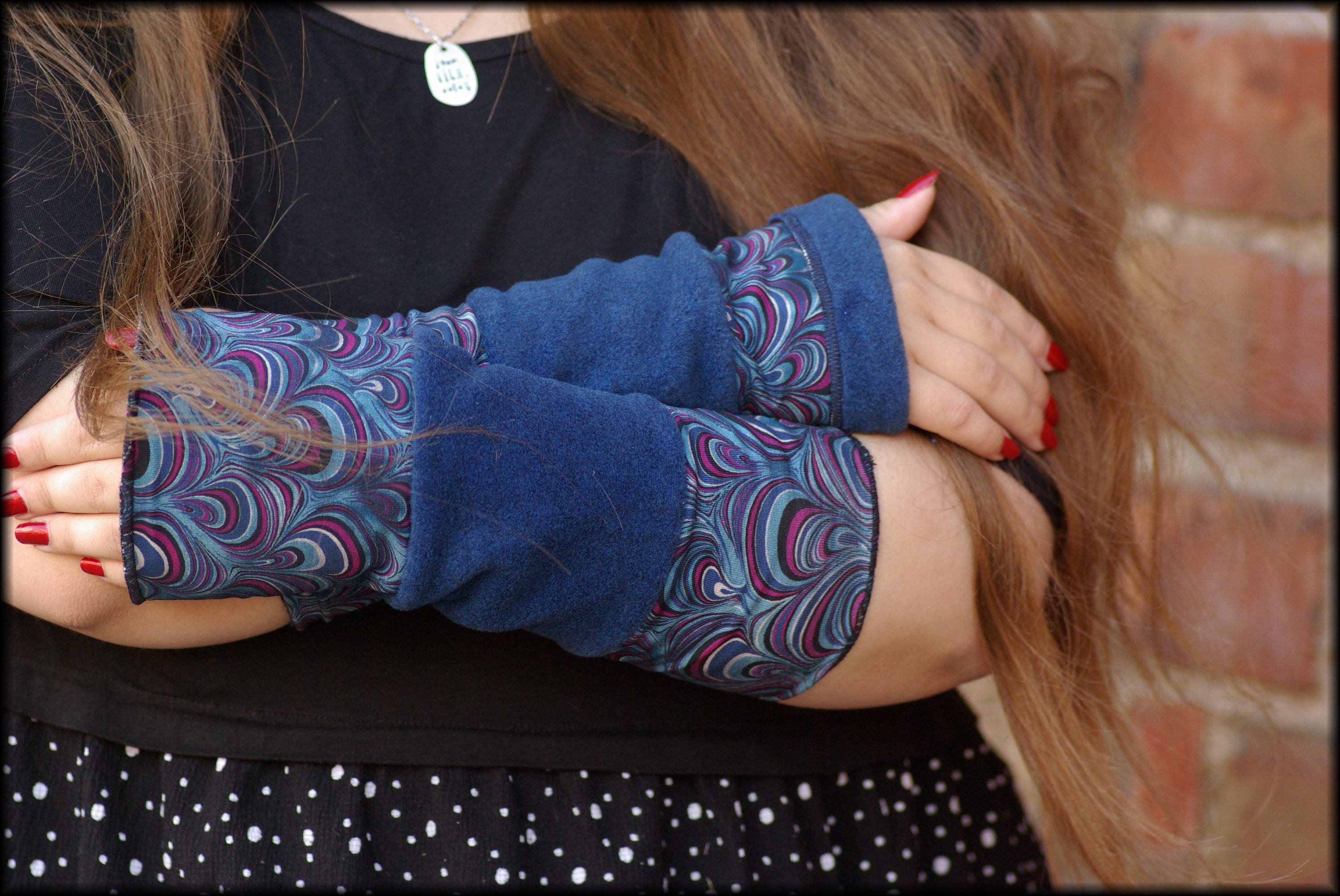 Beautiful arm warmers in blue color, both sides, for turning and turning, length 25 cm, width 11 cm (on request I can also sew other dimensions). They are sewn from double fabric.