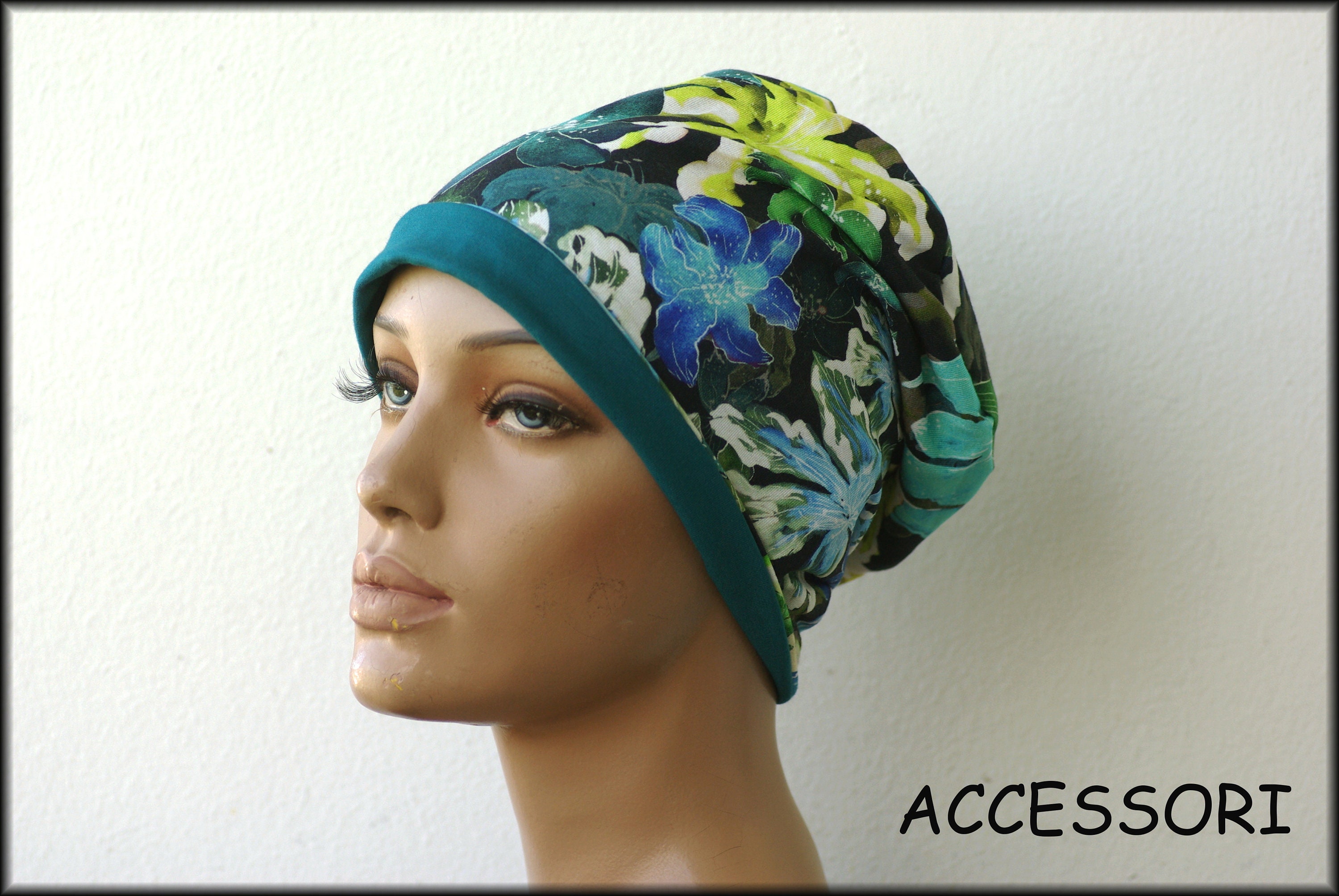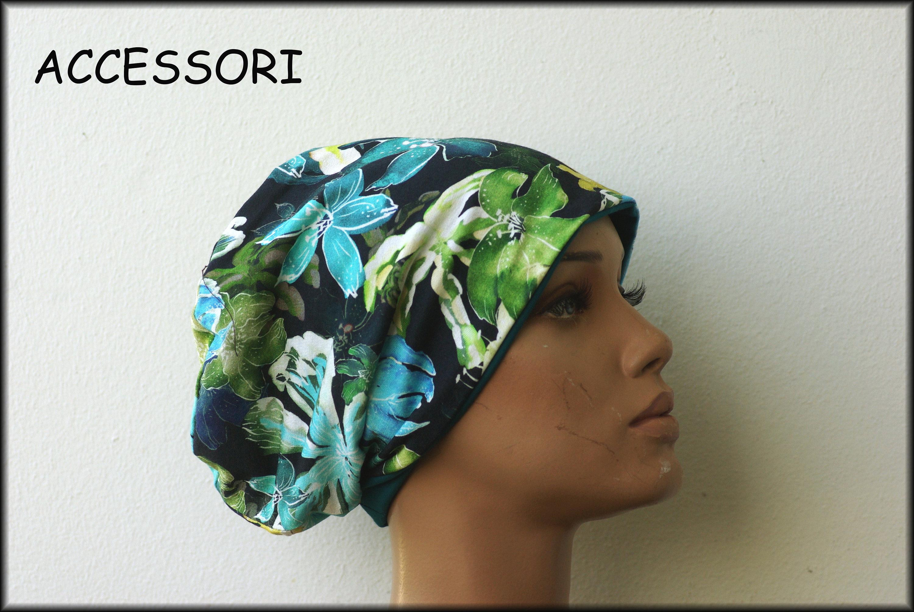 Matching gauntlets can be ordered for the hat, also reversible (one side with the motif, the other plain like the lining of the hat), length of the gauntlets approx. 25 cm