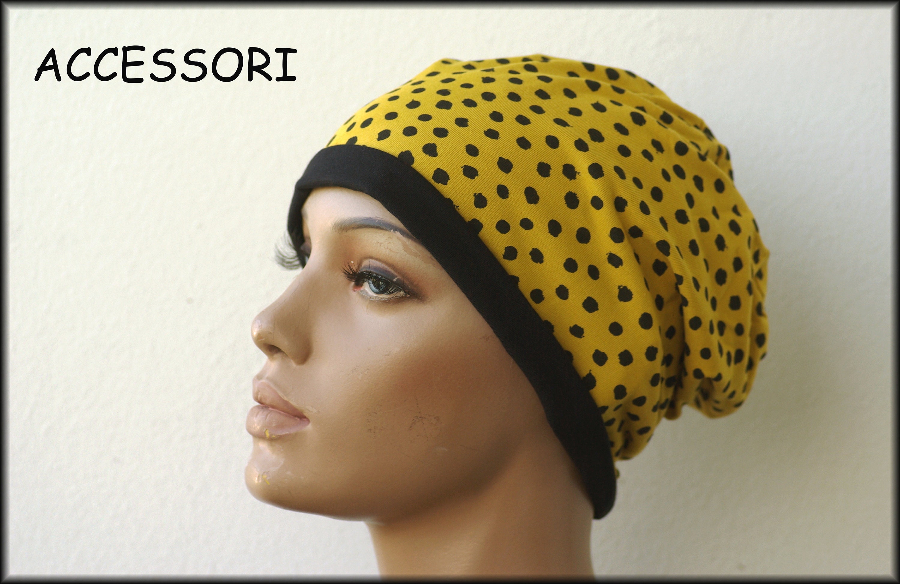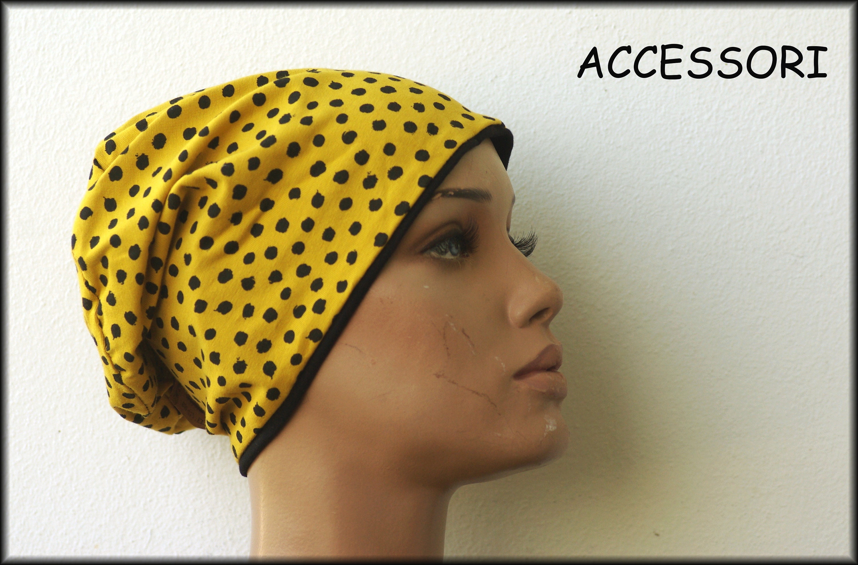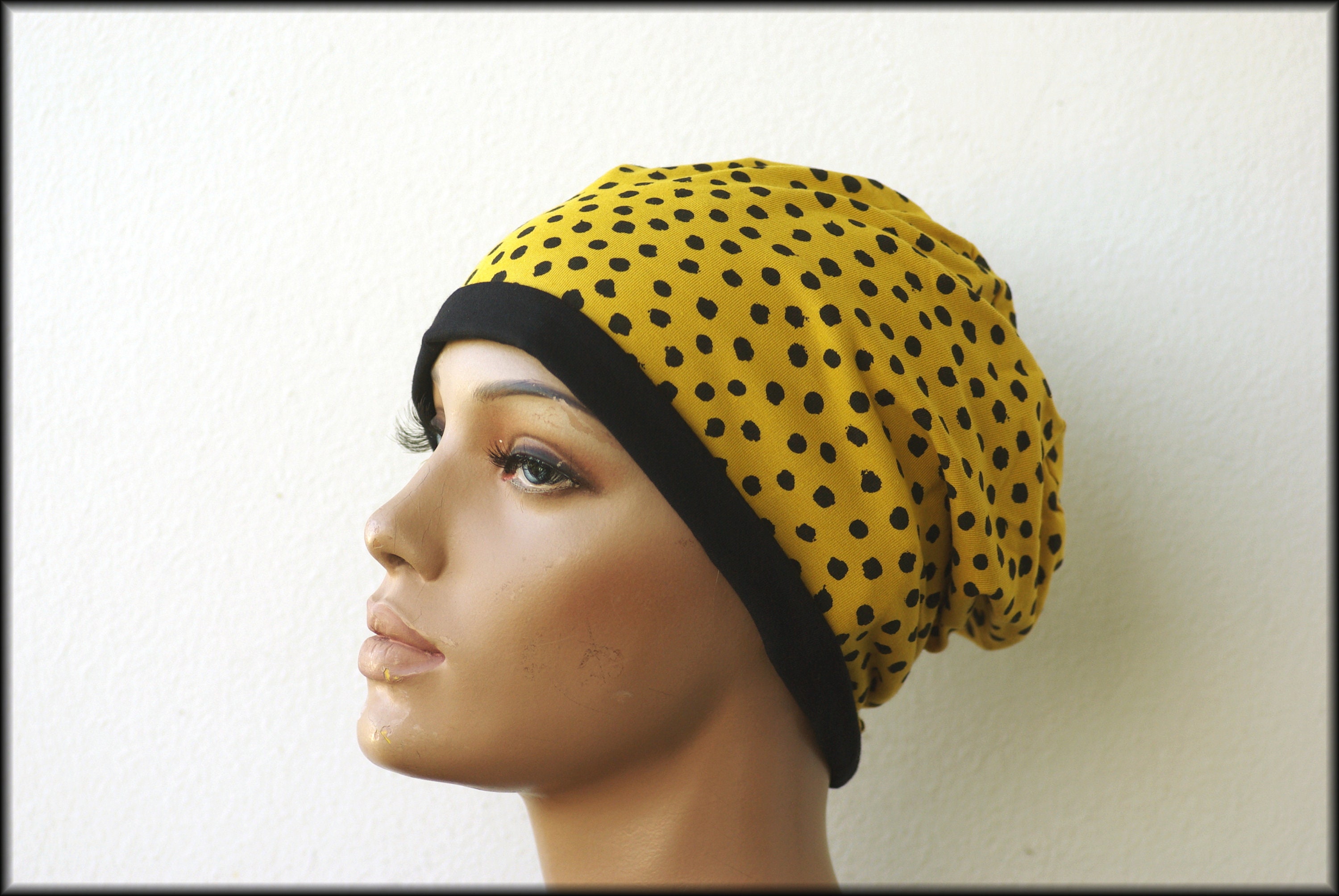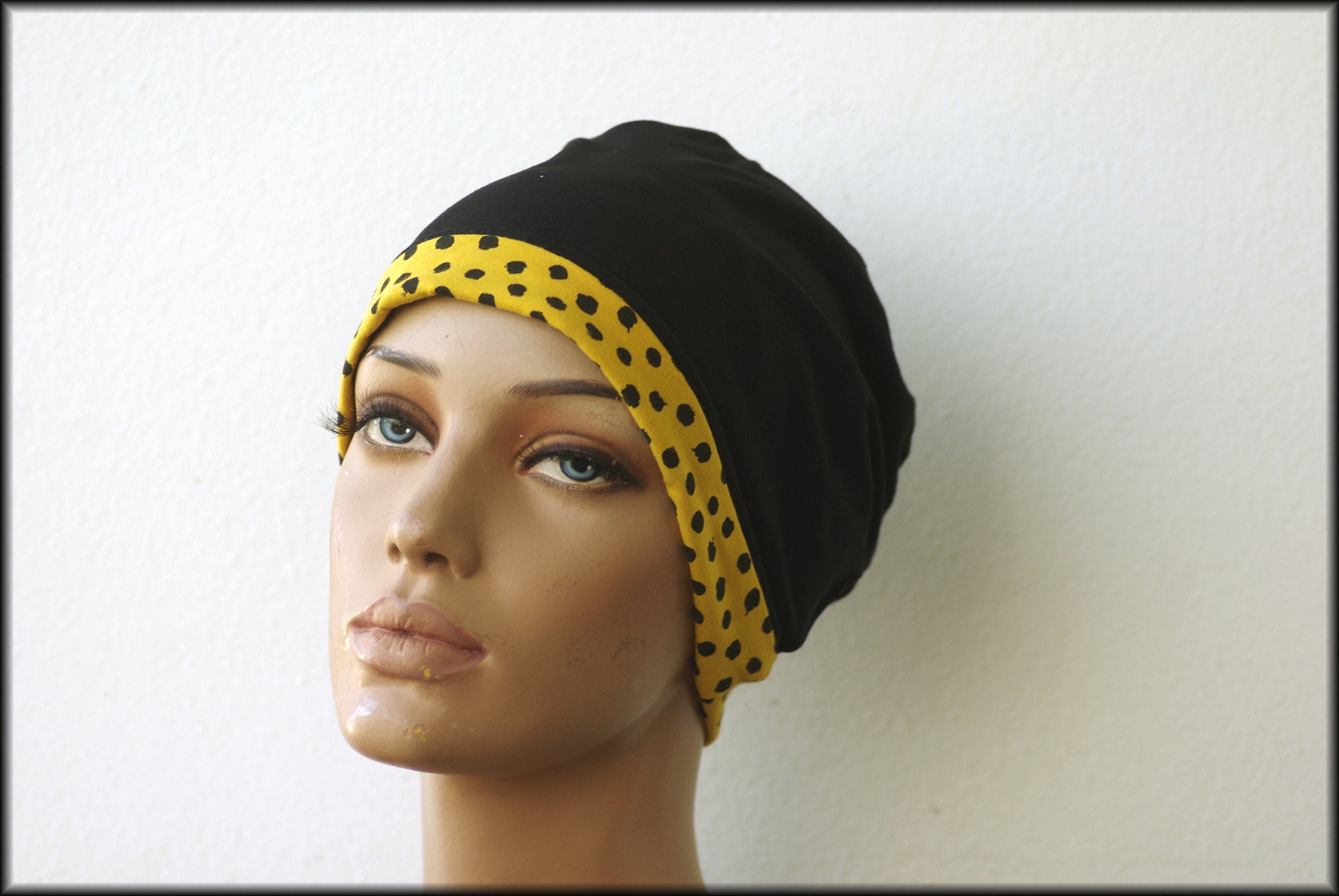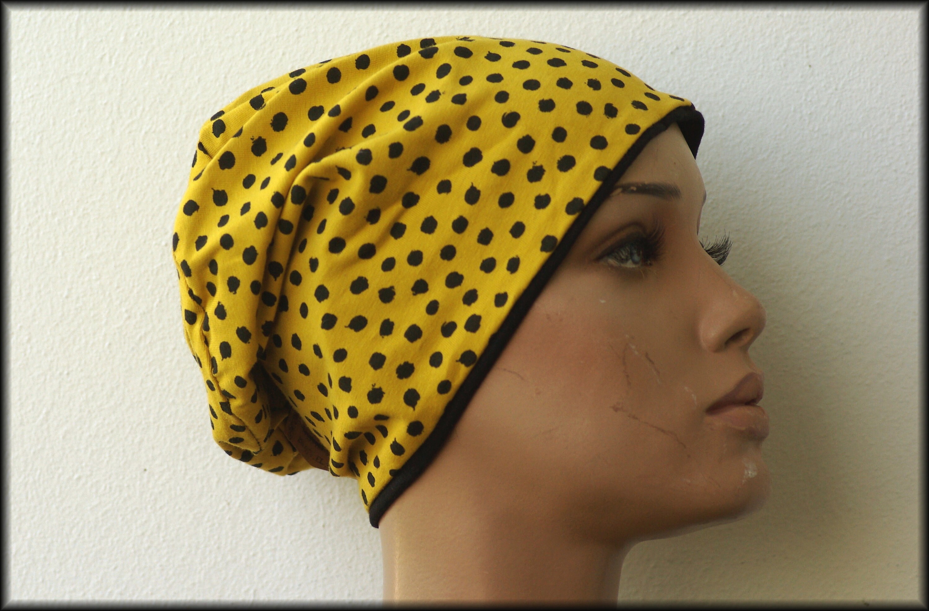 Hat Beanie double hat reversible hat dots yellow black dotted cotton jersey