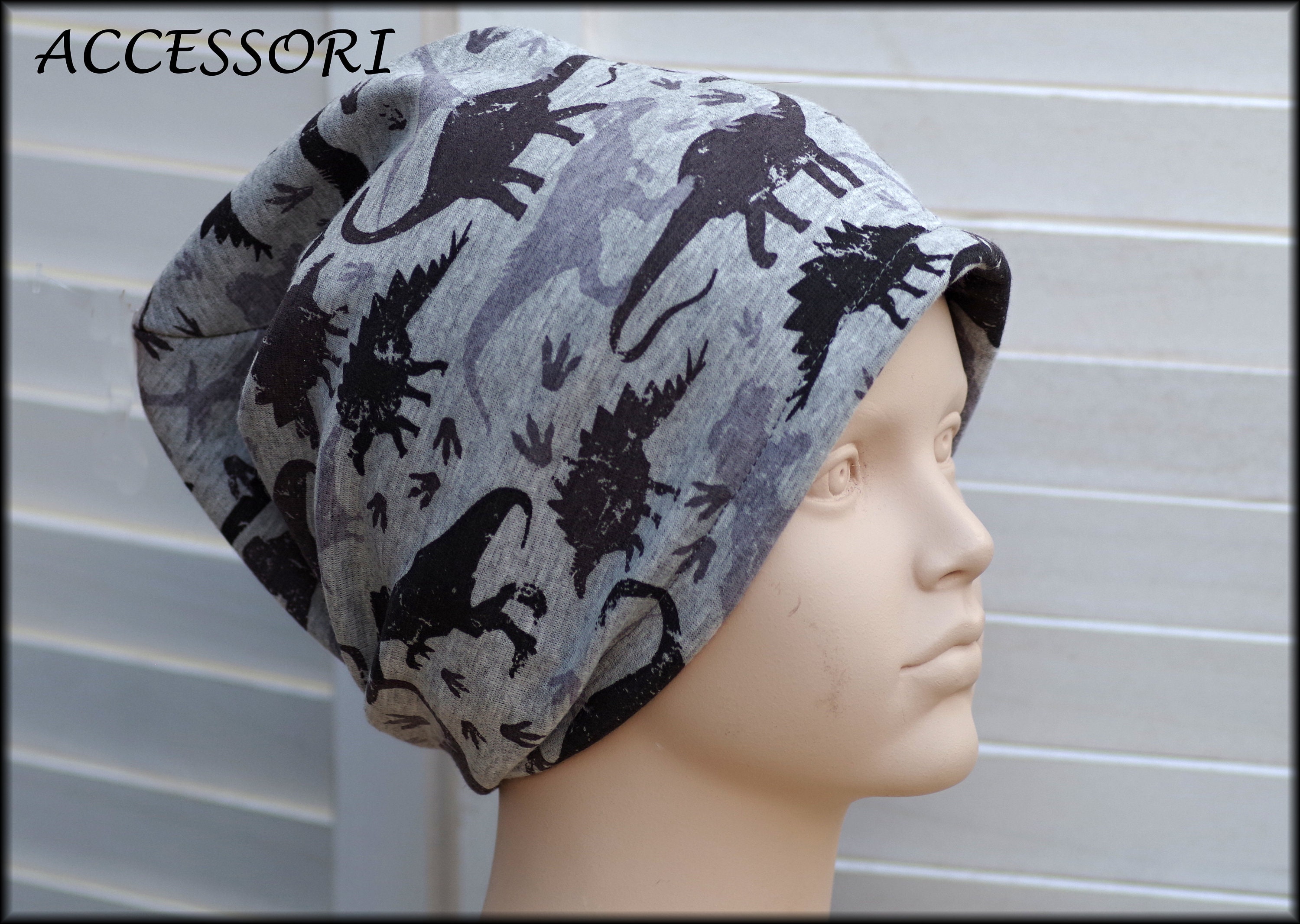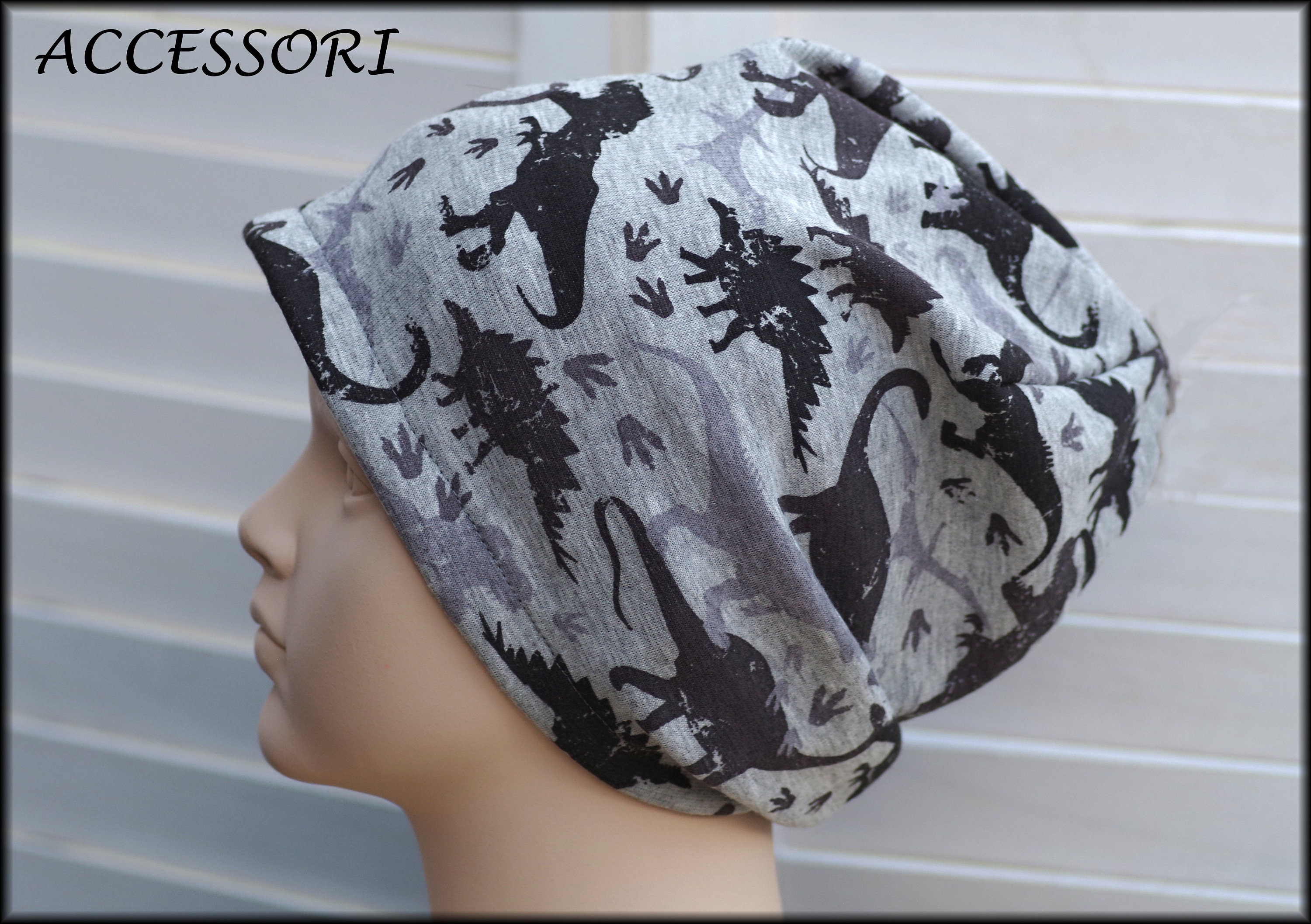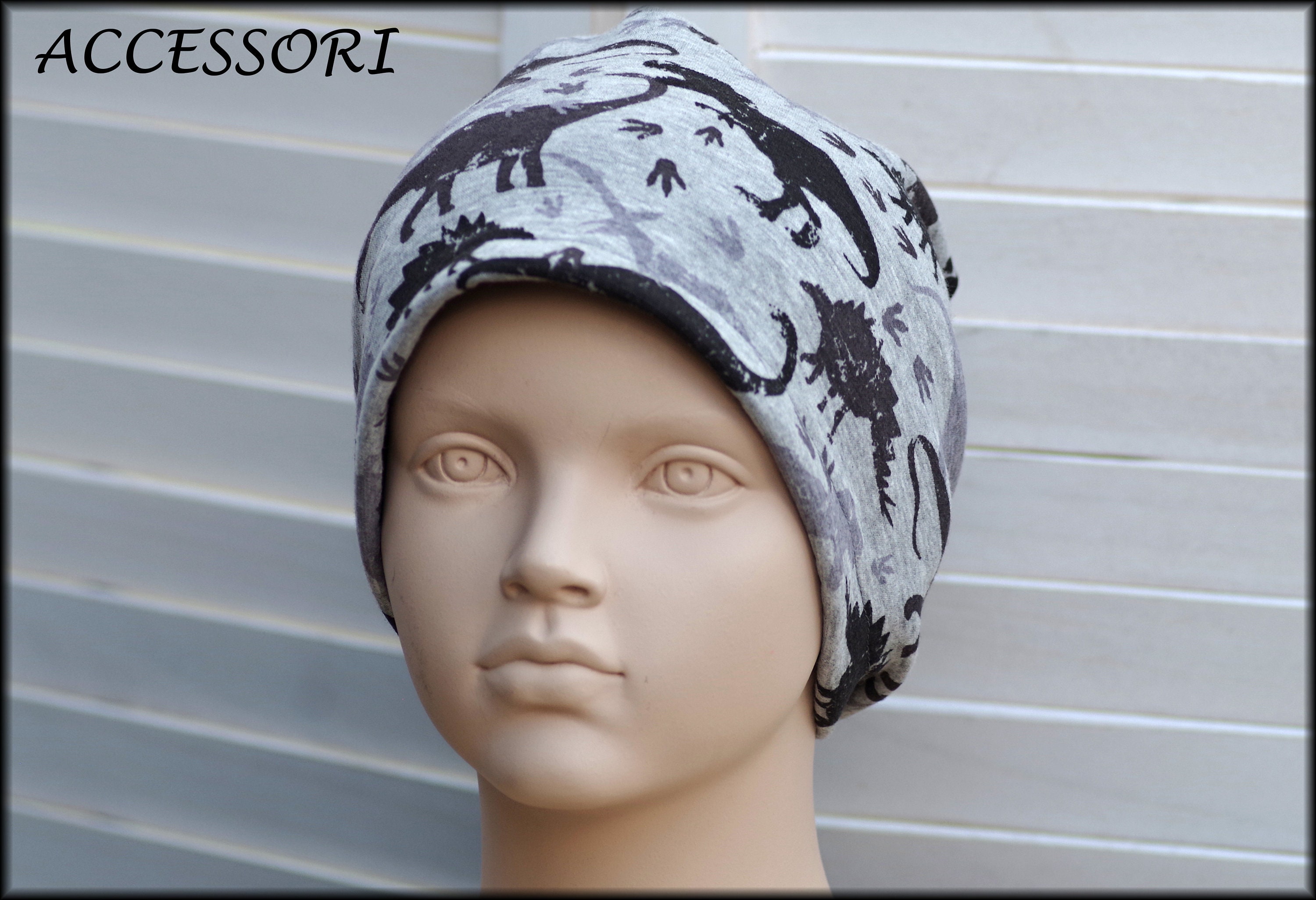 Children's hat beanie loop with dinosaurs Dinosauria gray brown camuflage cotton baby hat warm cuddly alpine fleece winter hat