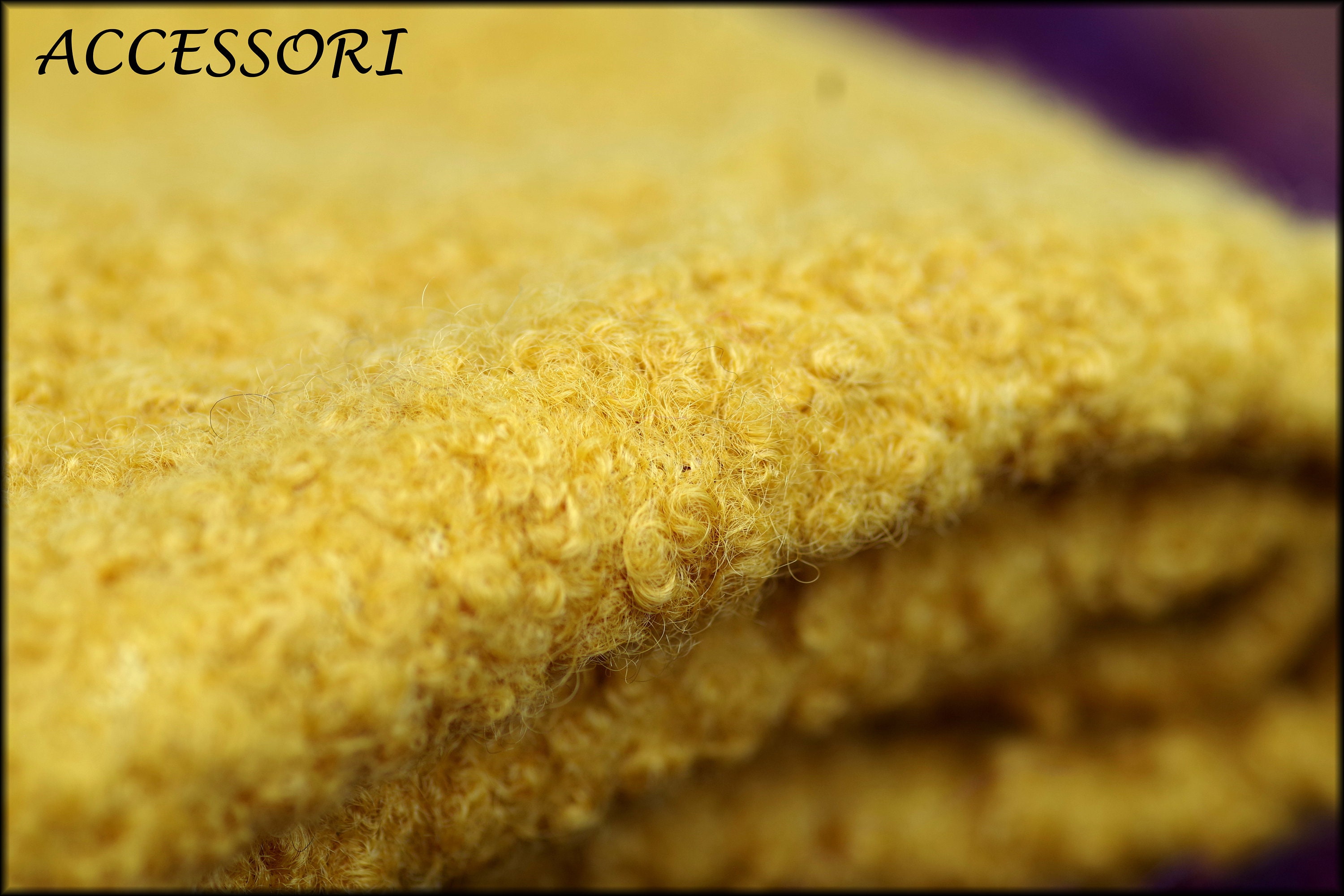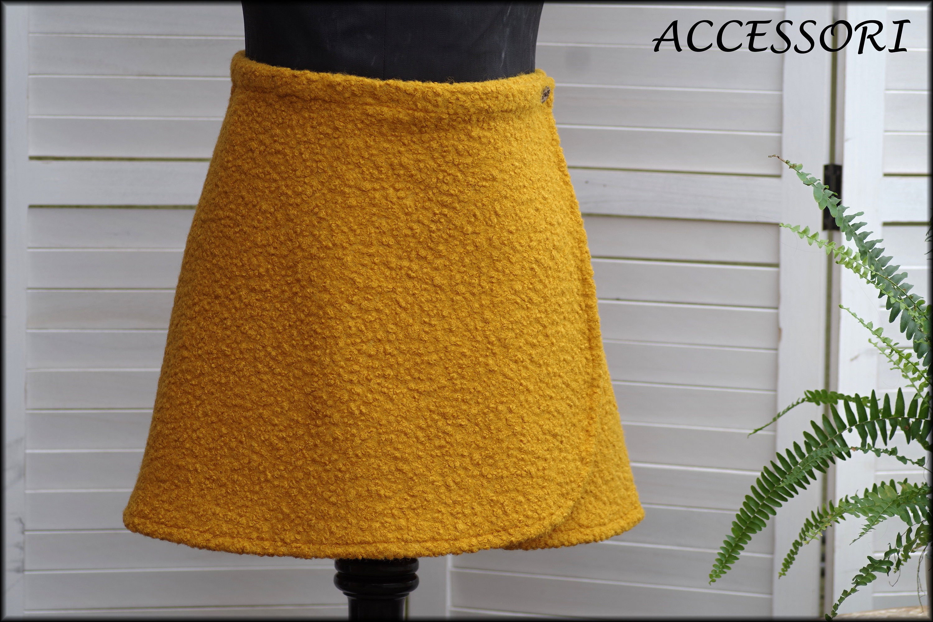 This wrap skirt is sewn from a bouclé fabric (100% polyester). Rubber is sewn in at the back.