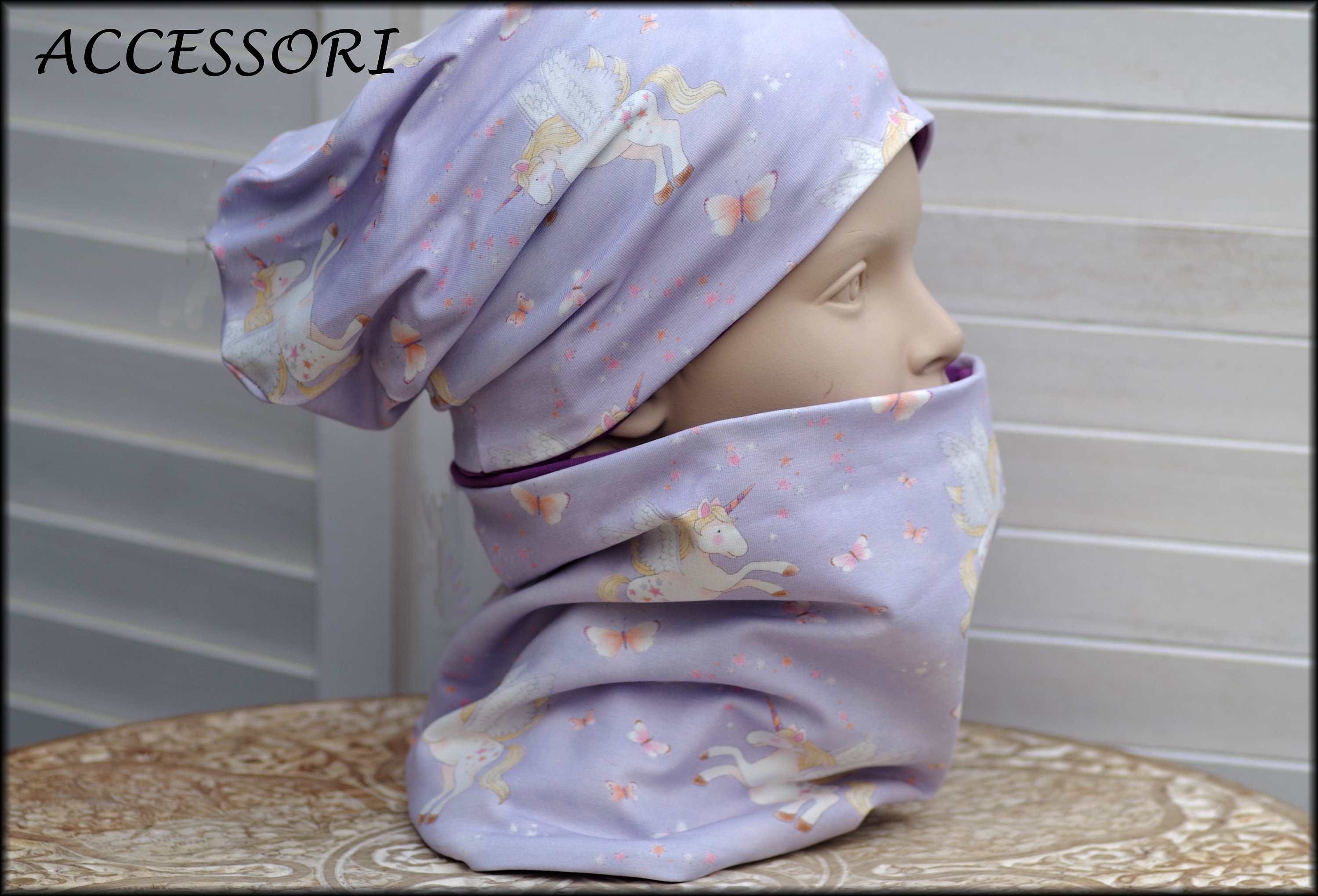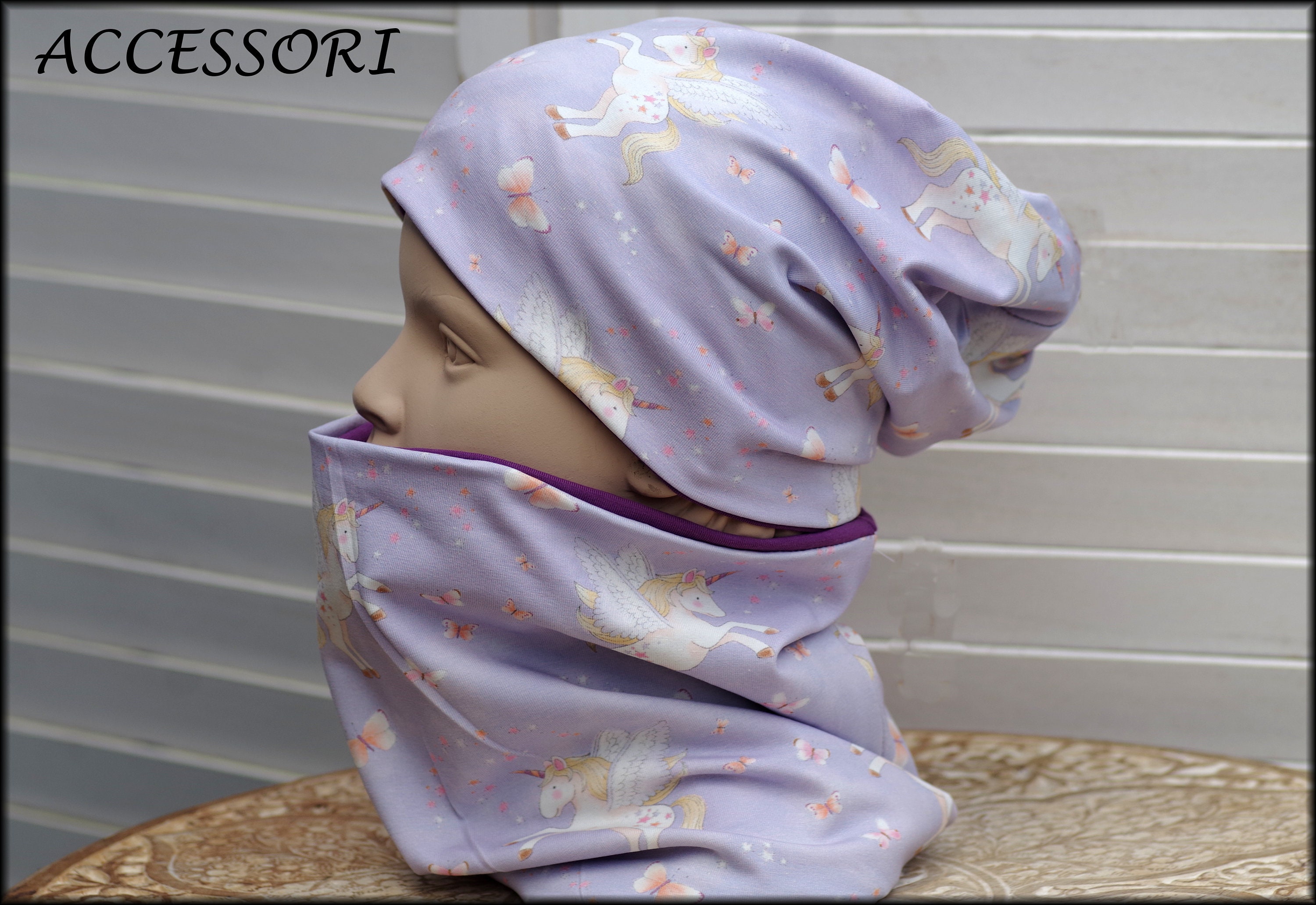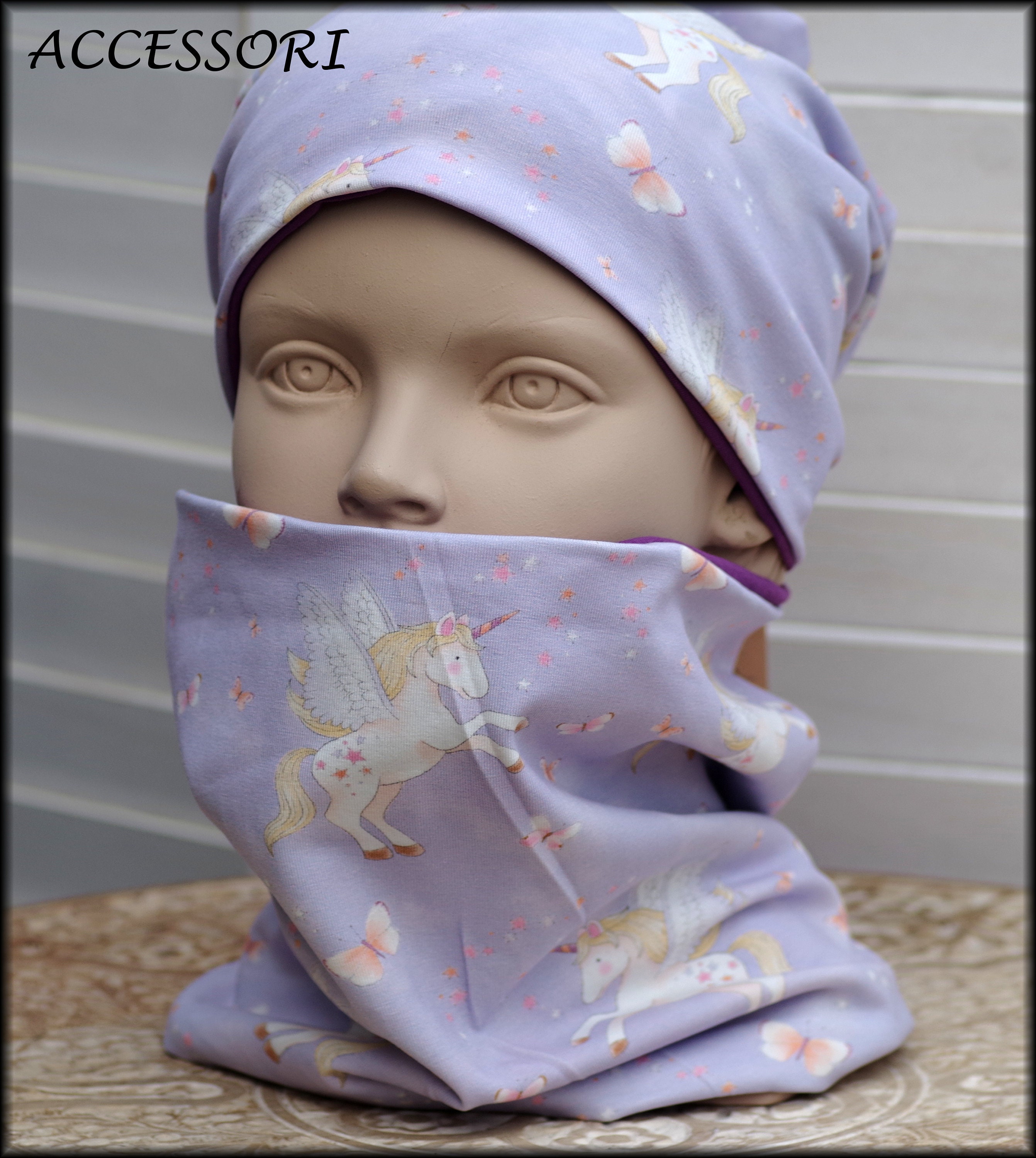 Children's hat beanie loop unicorn light purple cotton baby hat