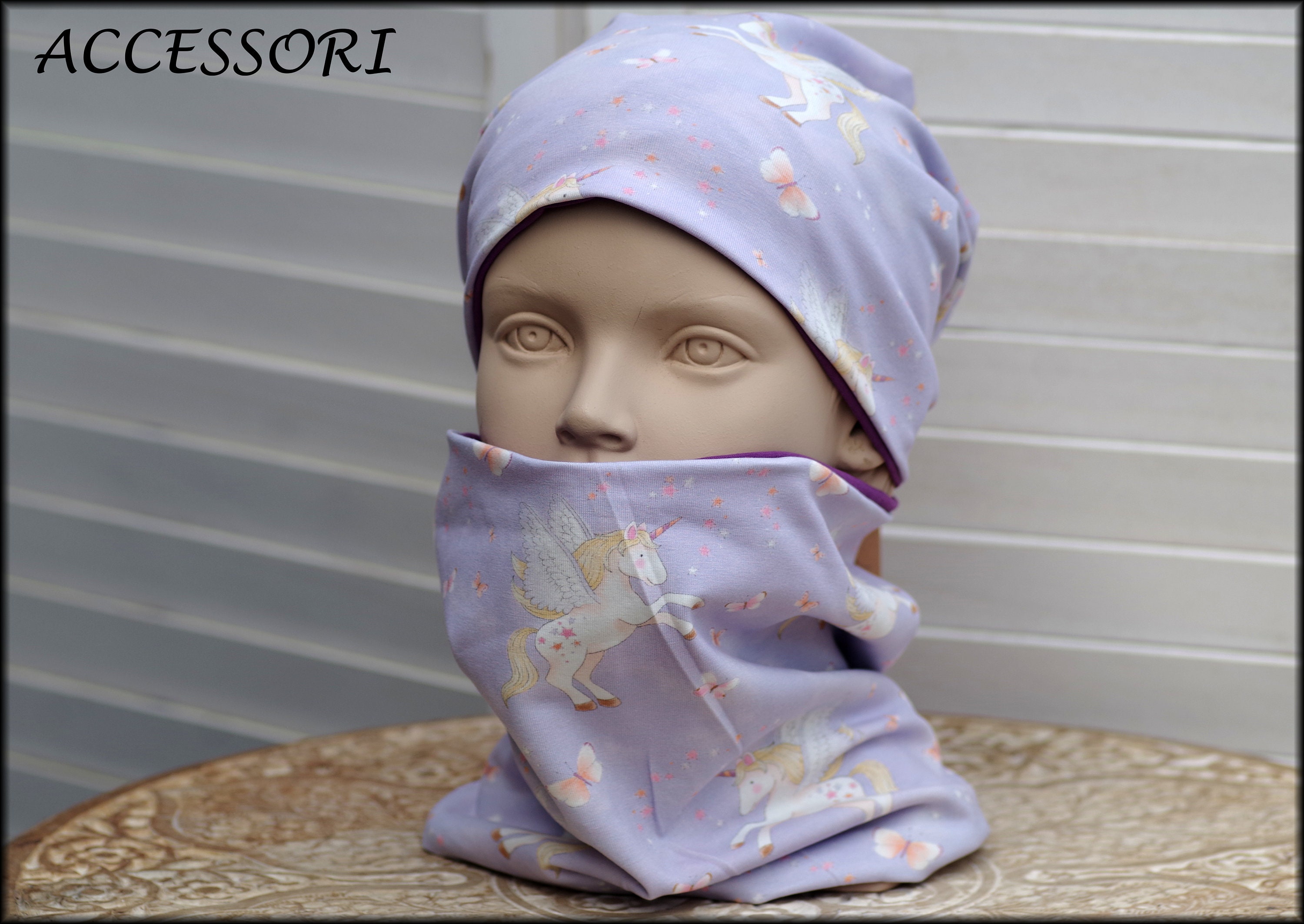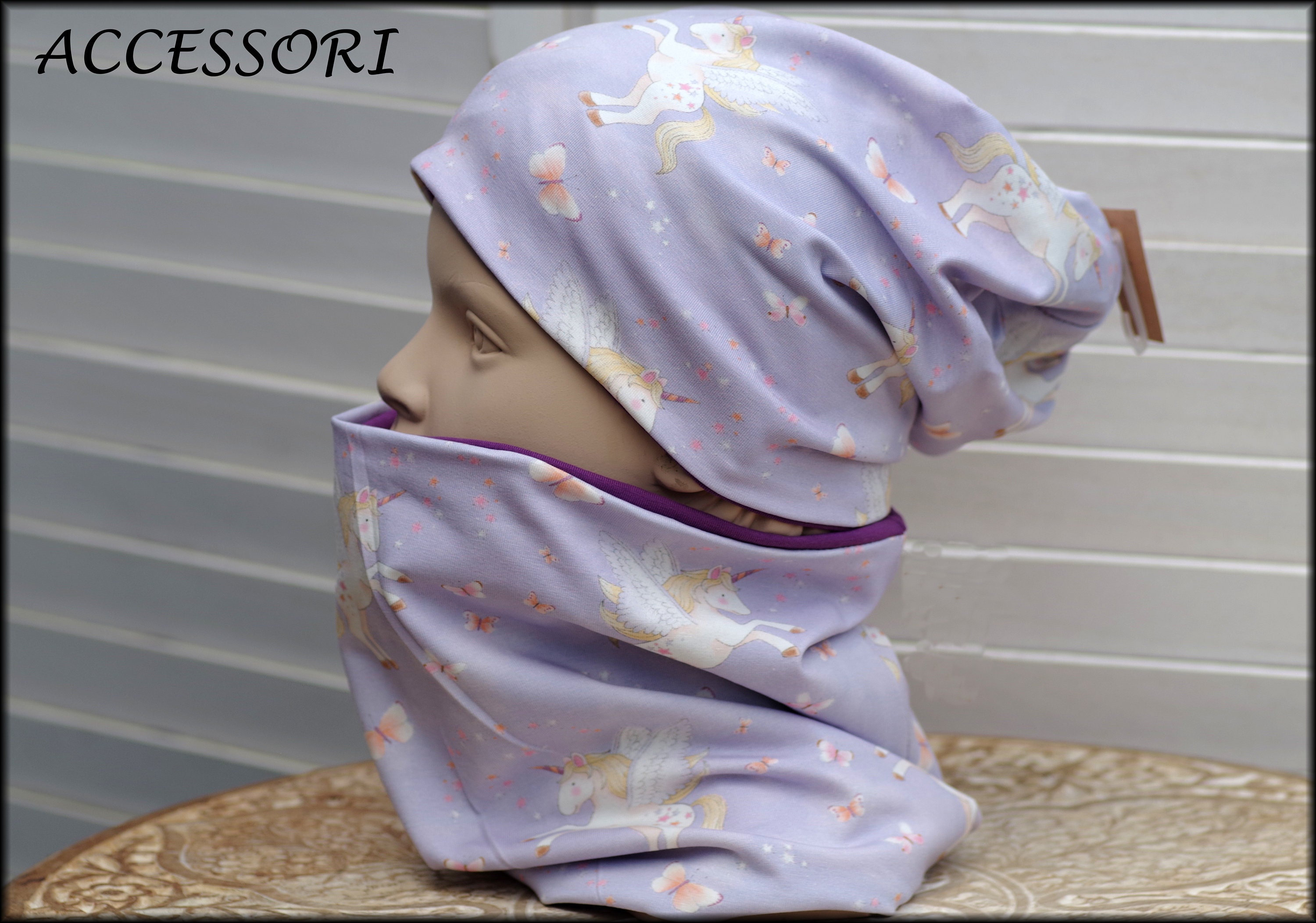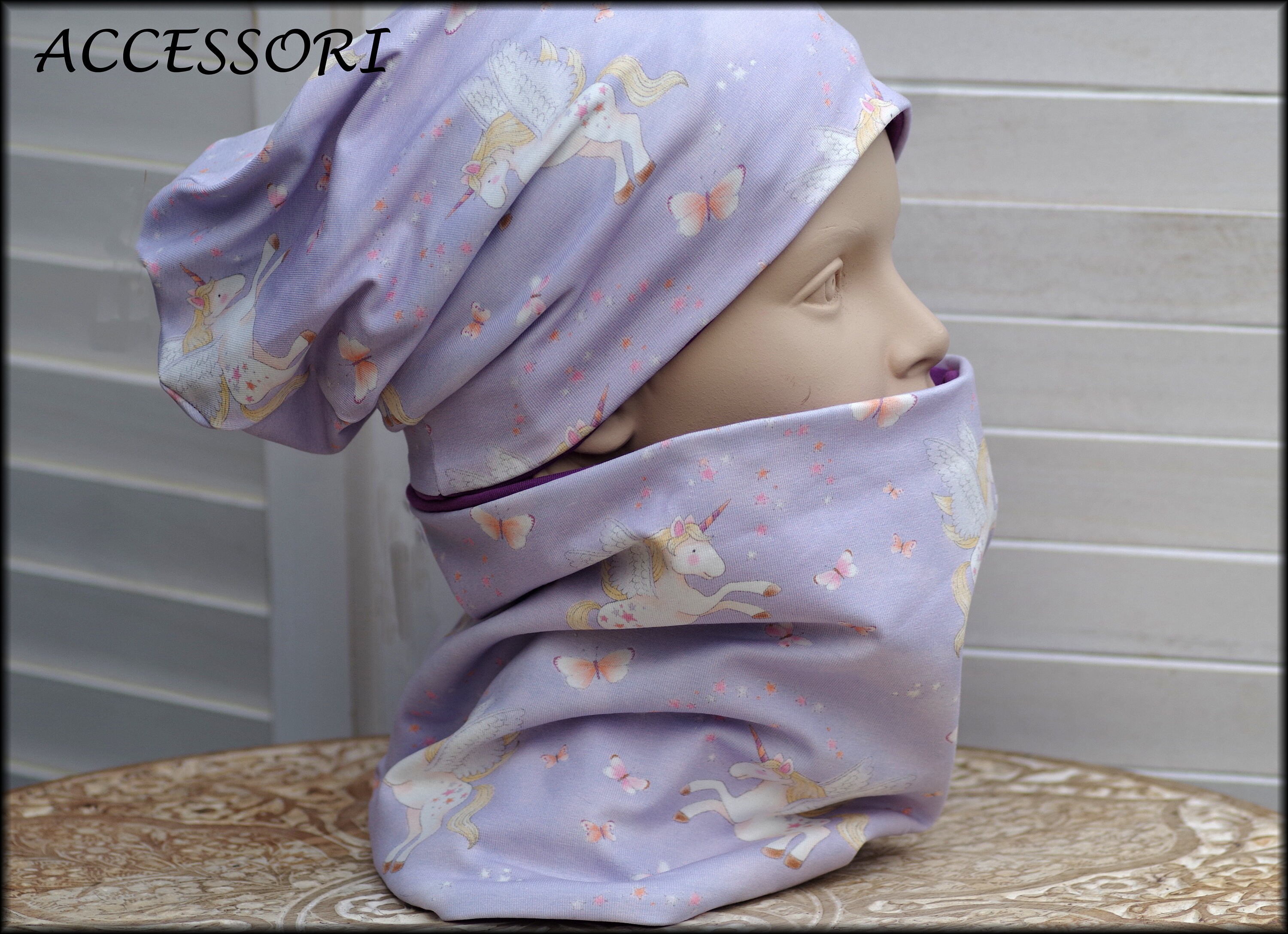 Children's hat beanie loop unicorn light purple cotton baby hat