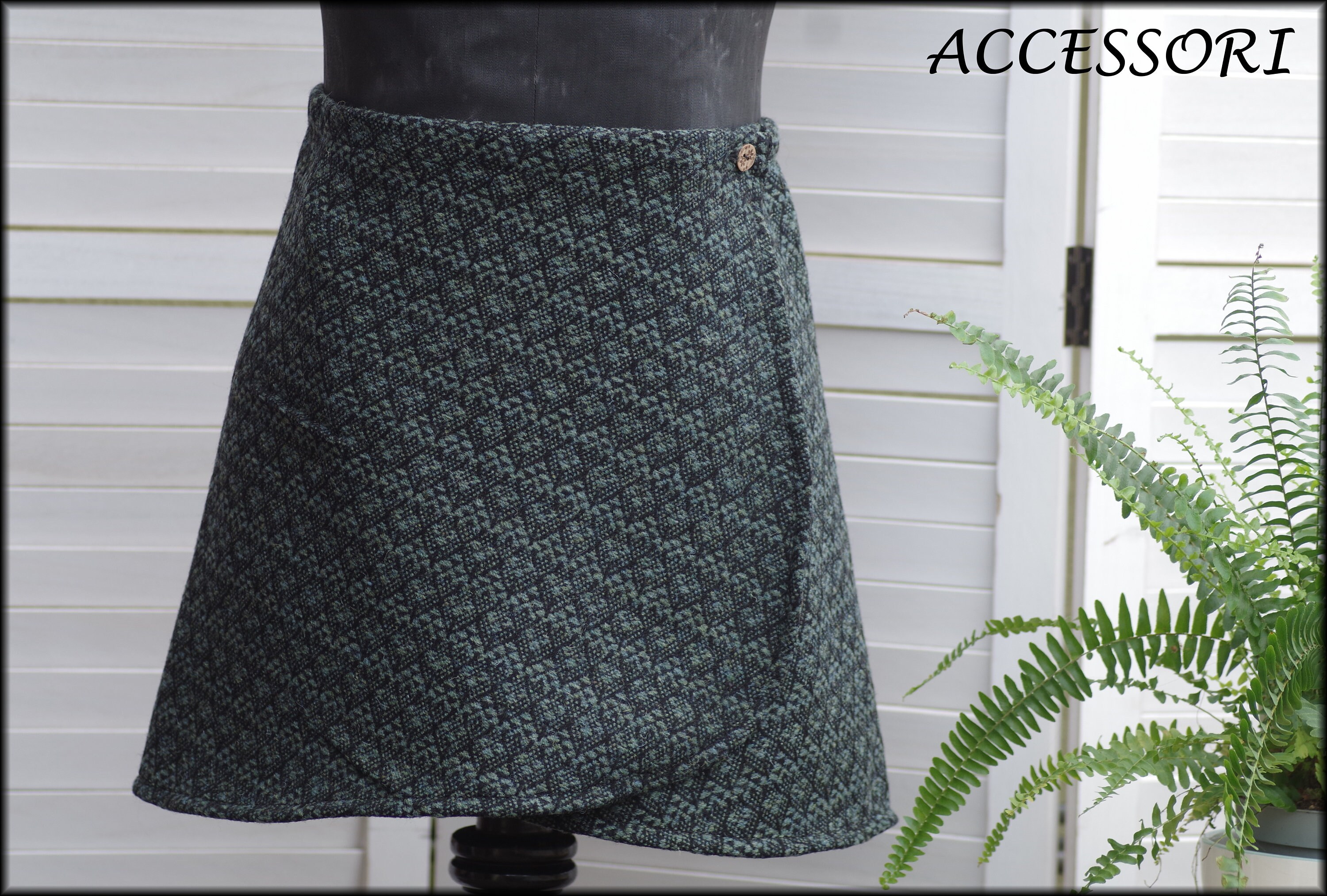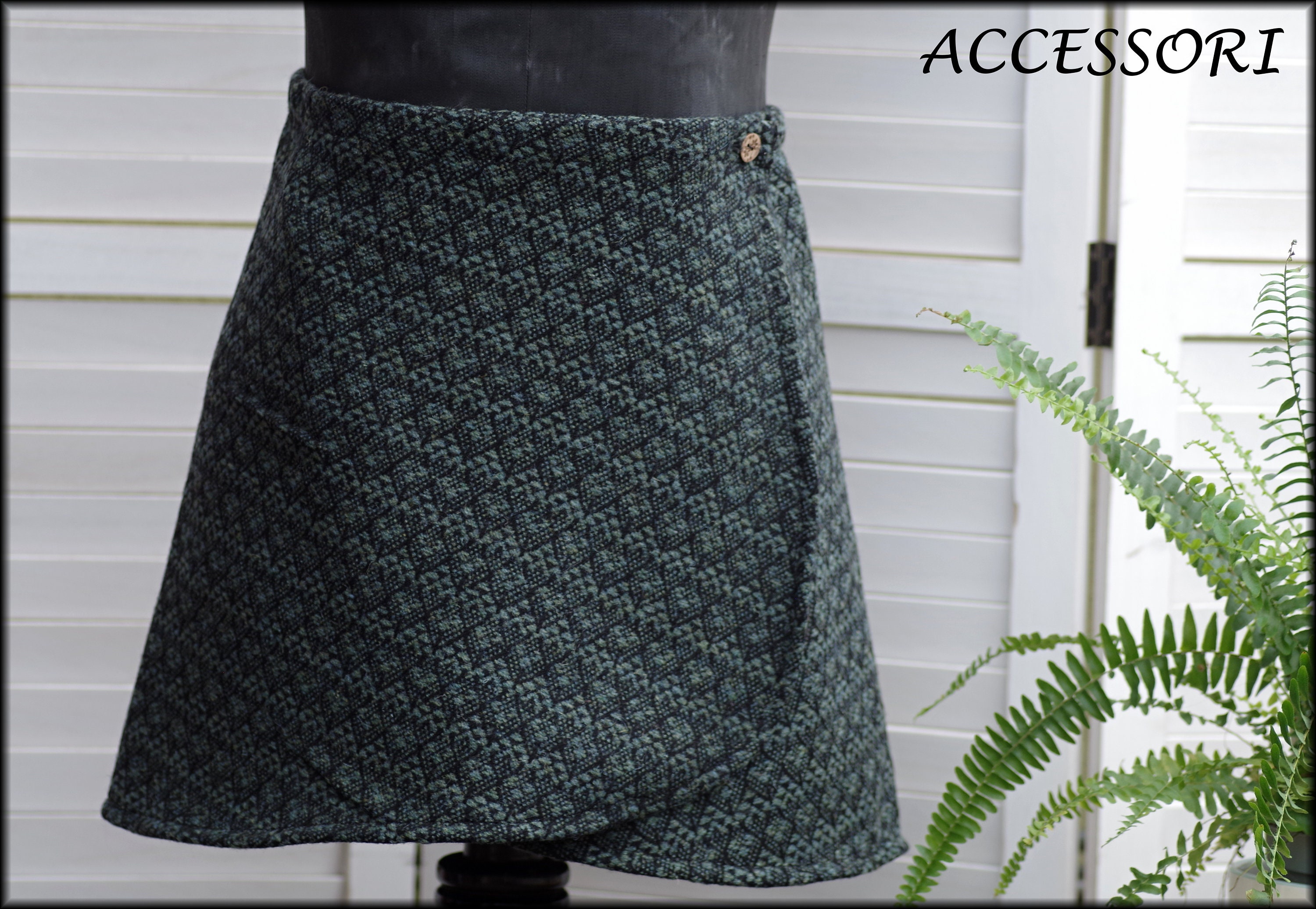 This wrap skirt is sewn from a high-quality wool fabric (100% wool). Rubber is sewn in at the back.