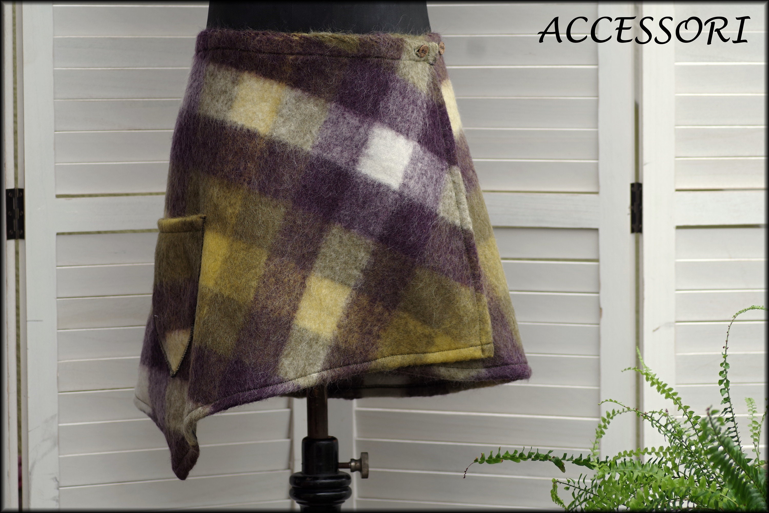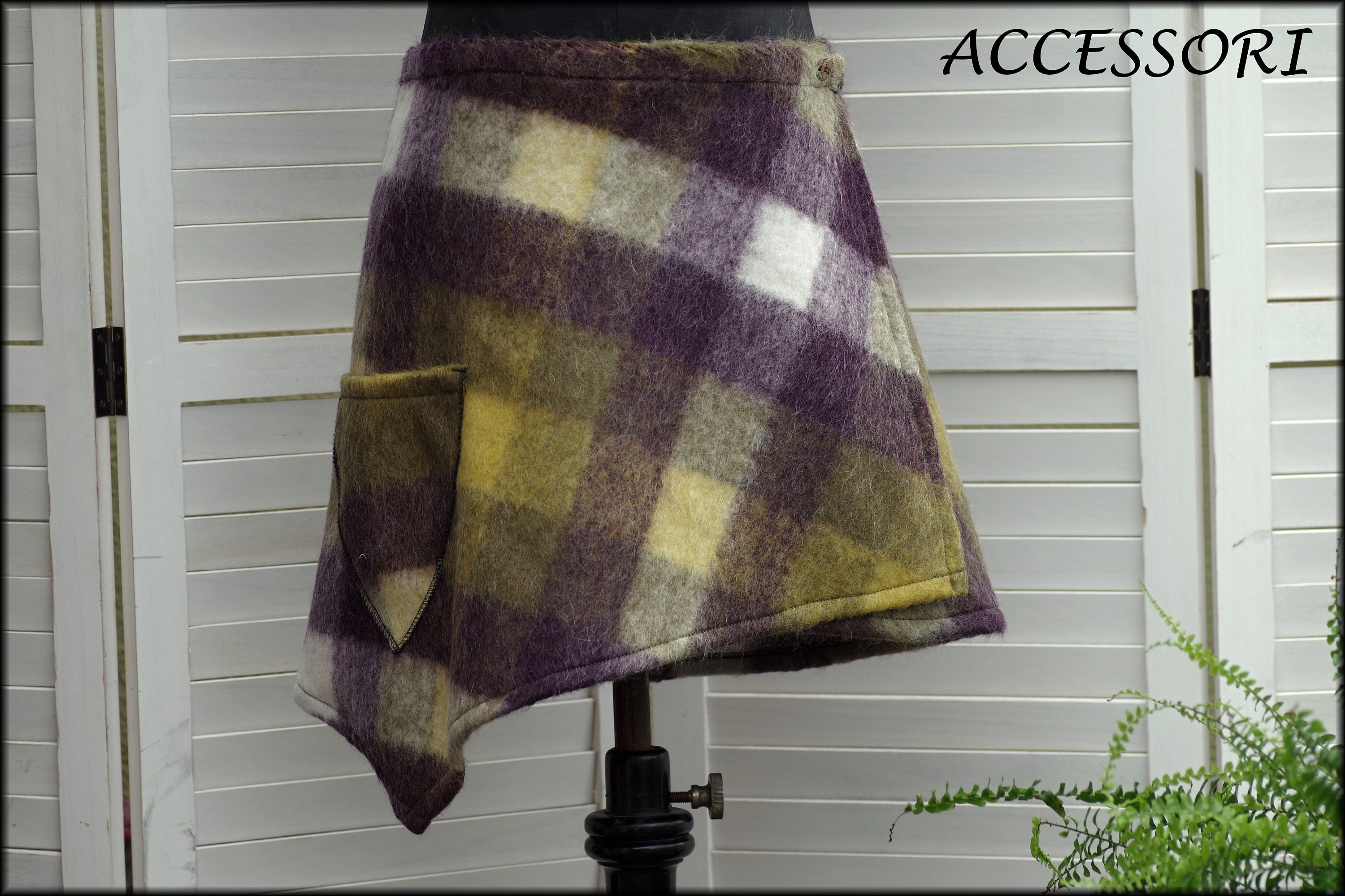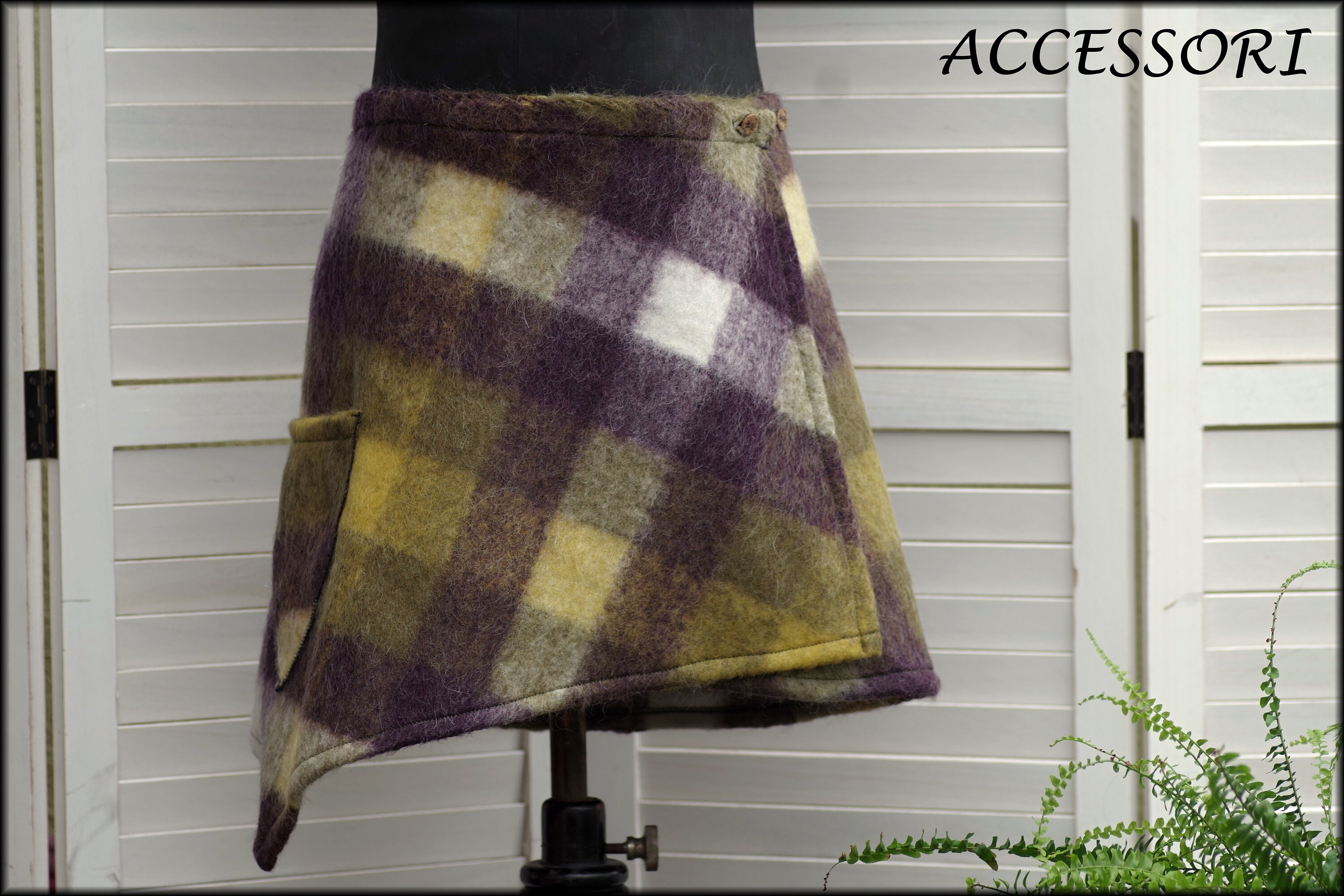 This wrap skirt is made from a soft wool fabric (60% wool, 40% polyamide). Elastic is sewn in at the back.