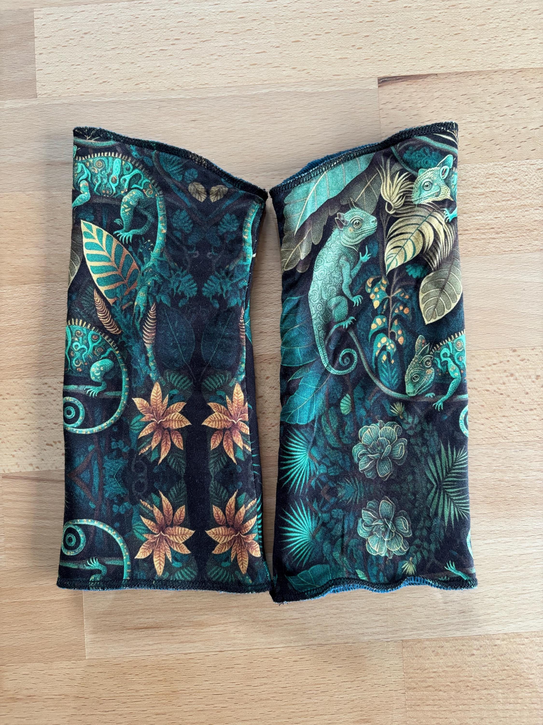 Beautiful arm warmers, double-sided, turn inside out or with a thumb hole, 25 cm long, 11 cm wide (I can also sew other sizes upon request). They are sewn from double fabric.