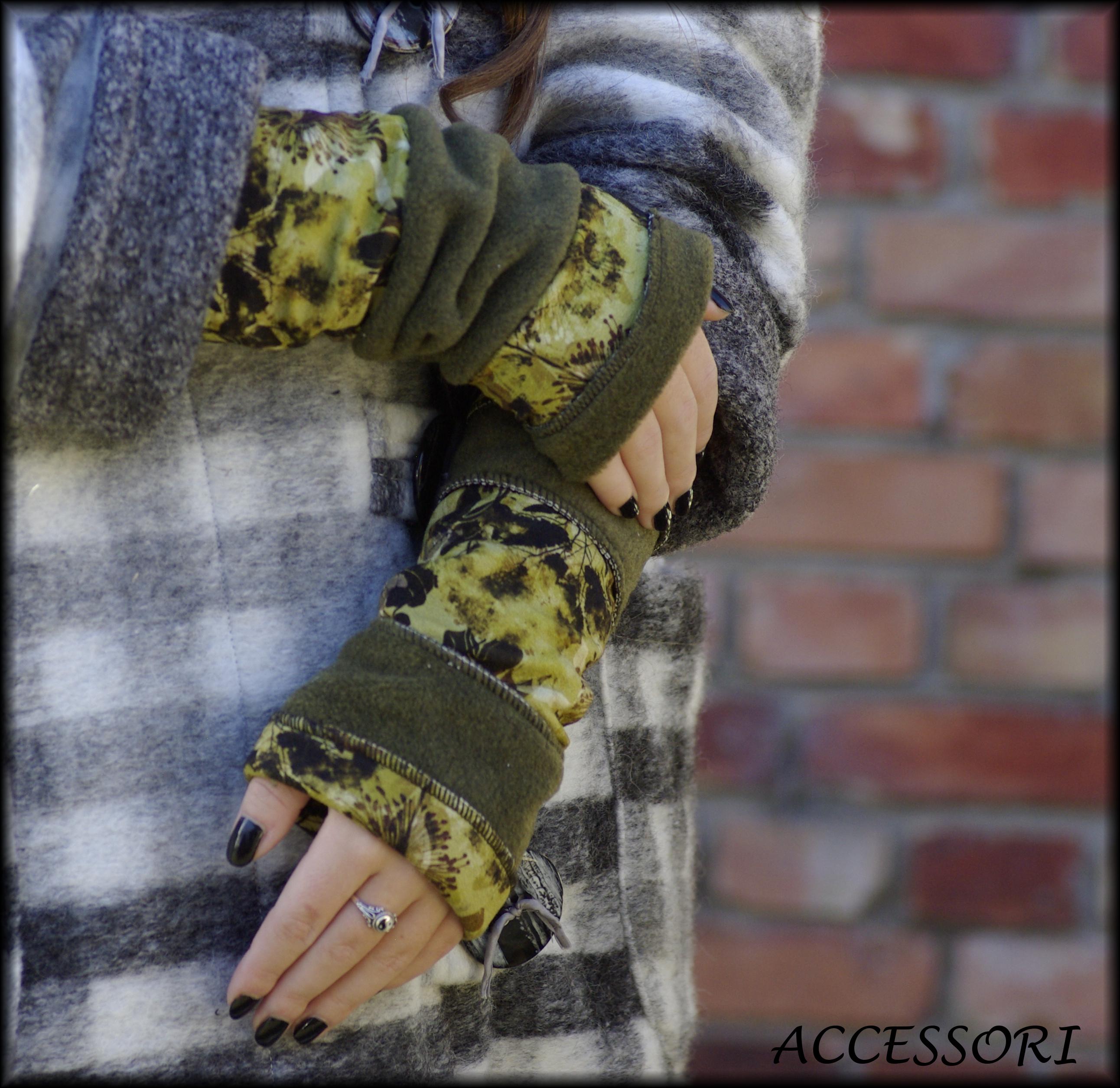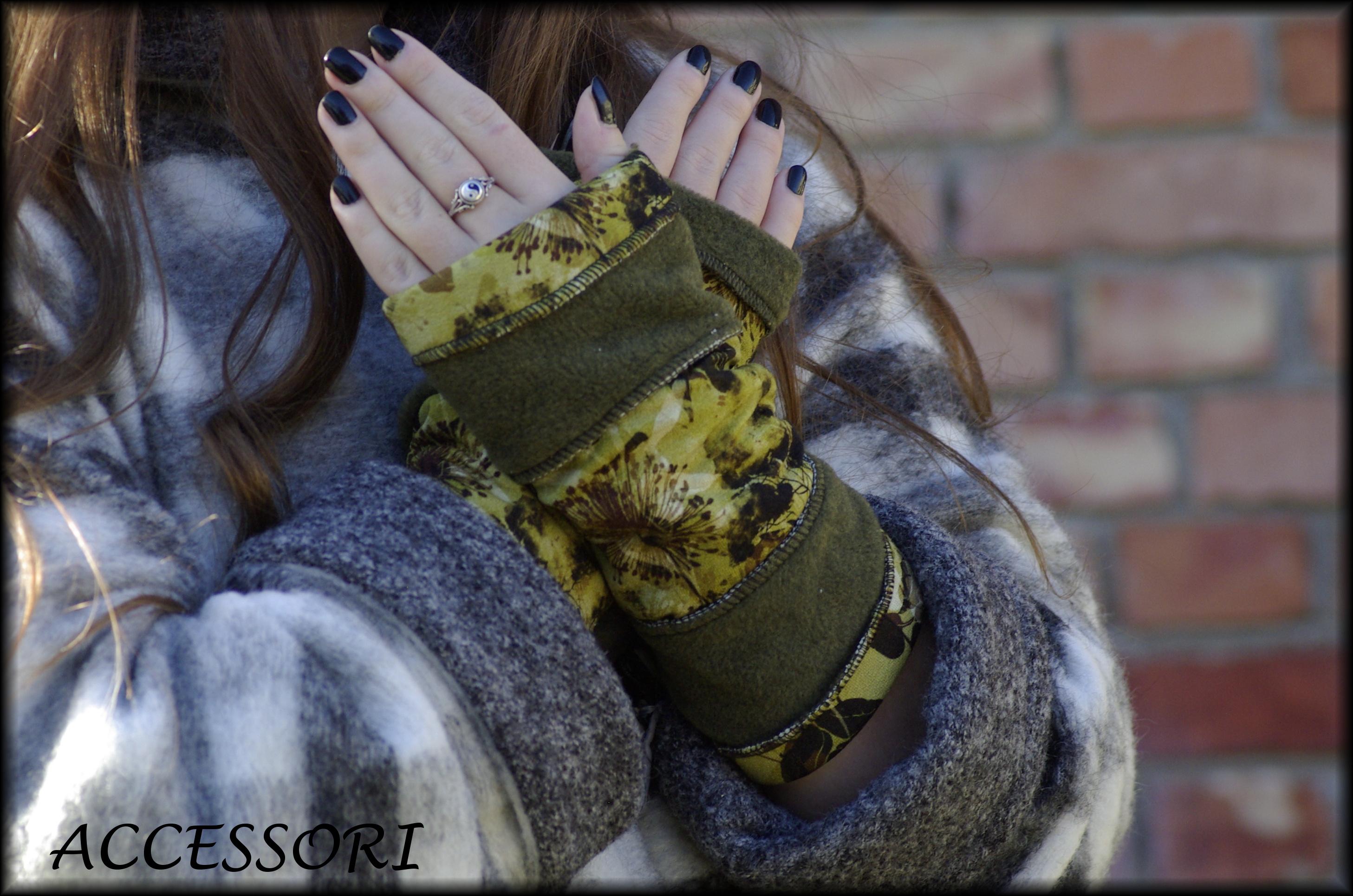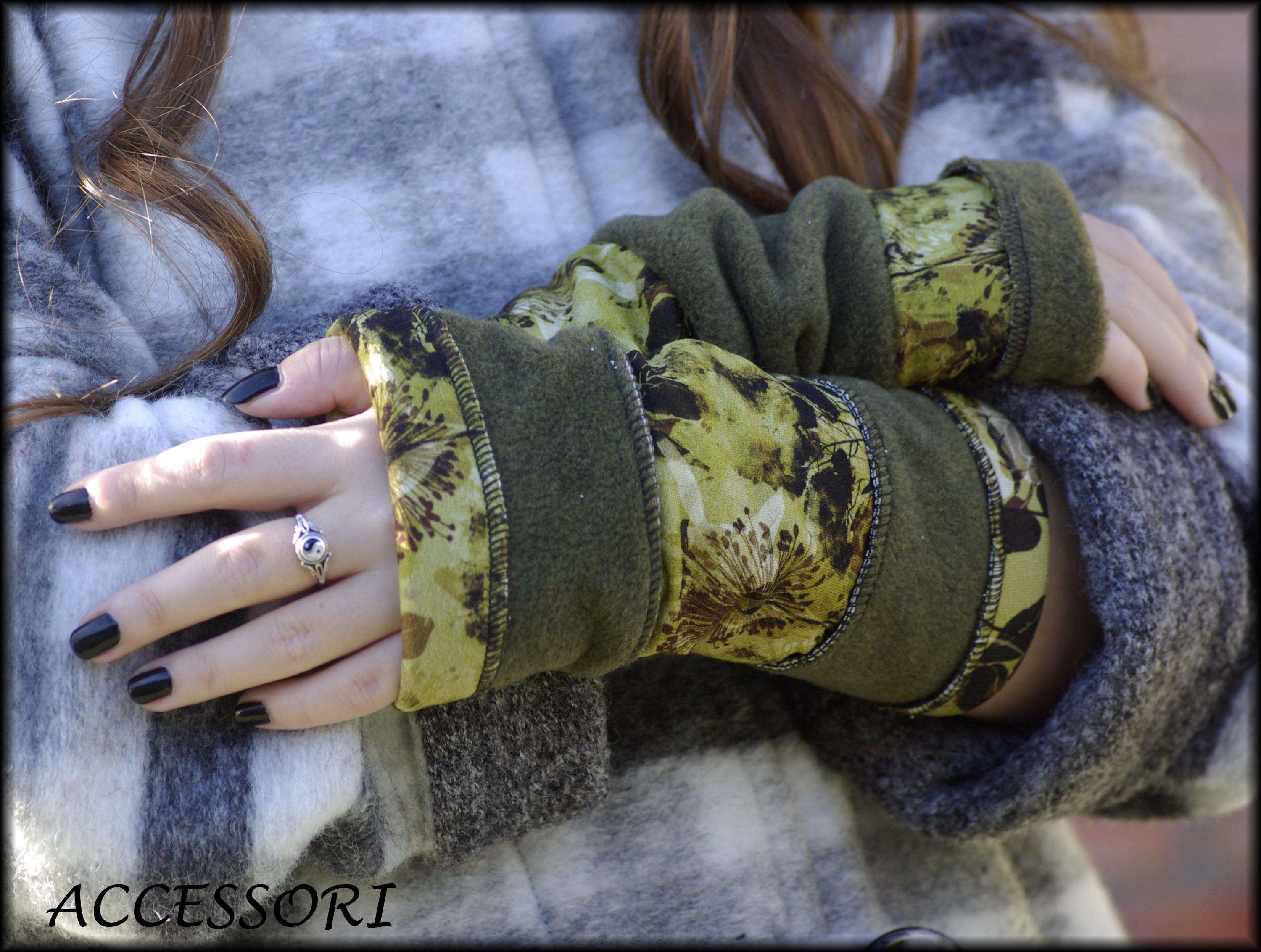 Beautiful arm warmers in khaki green, double-sided, to turn inside out and inside out, length 25 cm, width 11 cm (I can also sew other dimensions on request). They are sewn from double fabric.