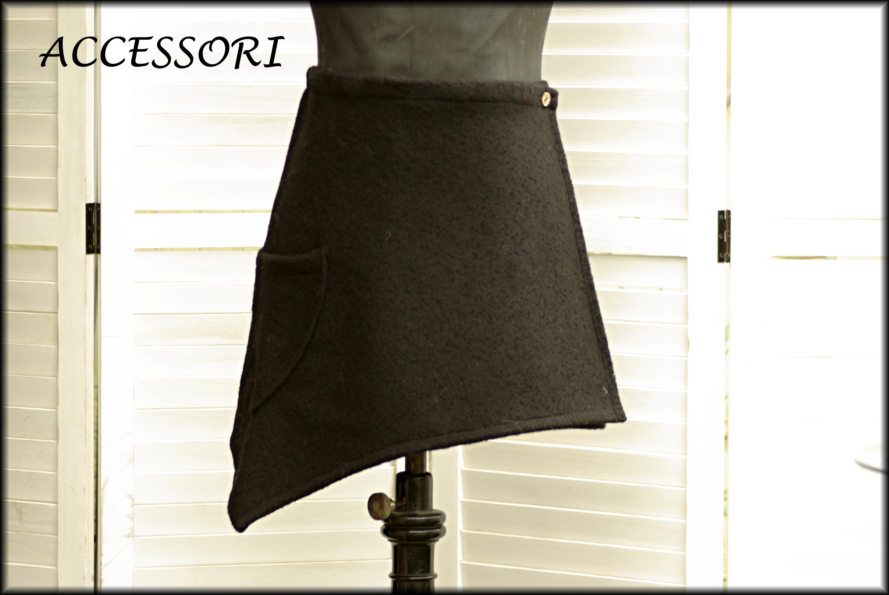 This wrap skirt is made of wool (100% wool). Elastic is sewn in at the back.