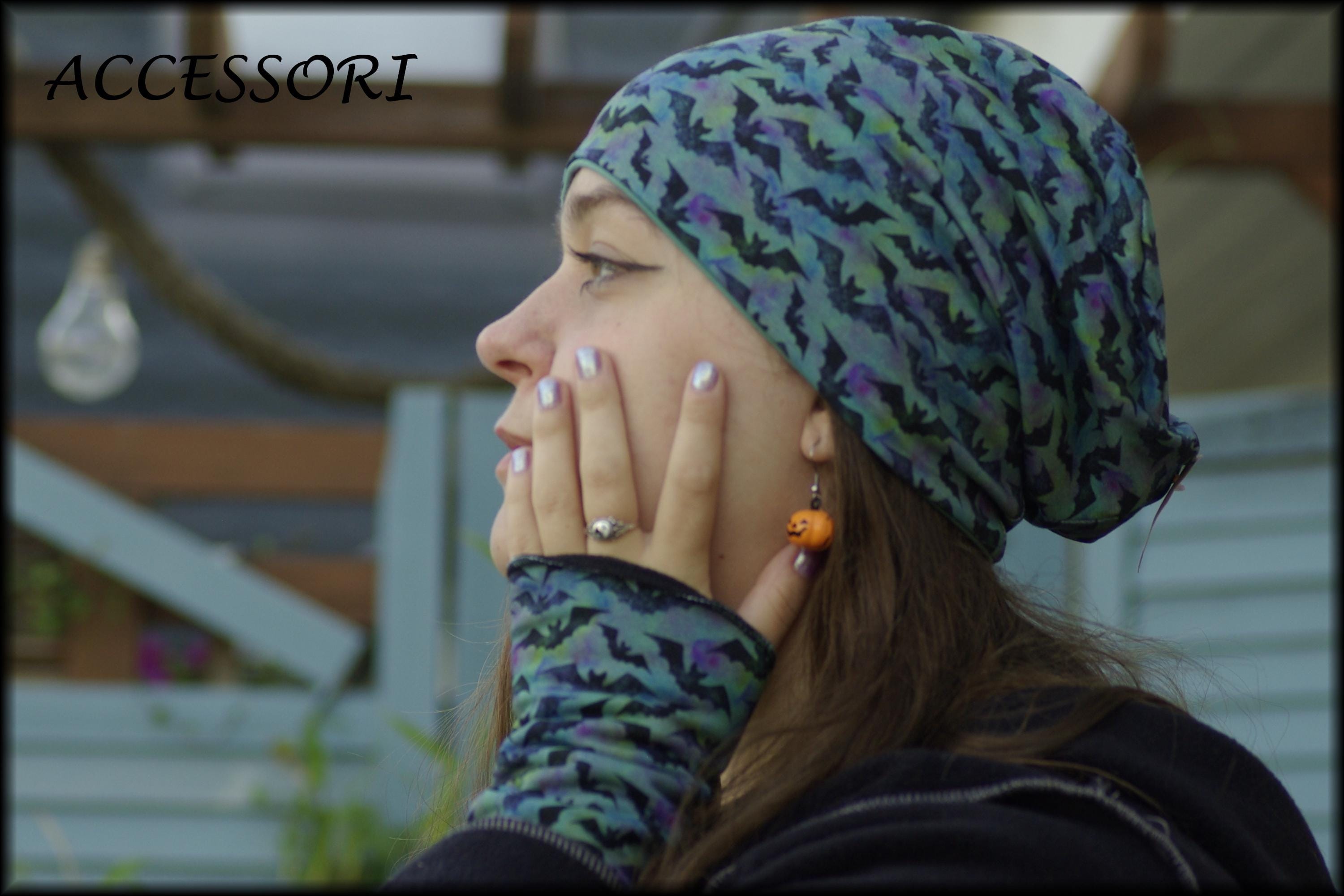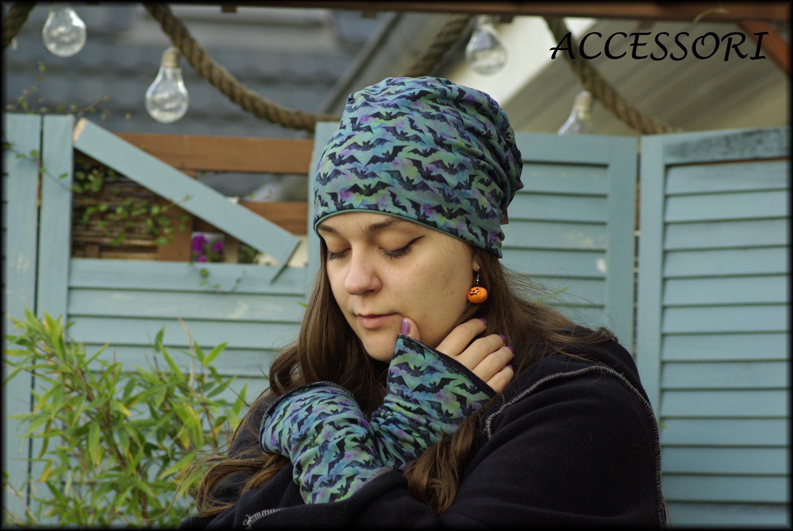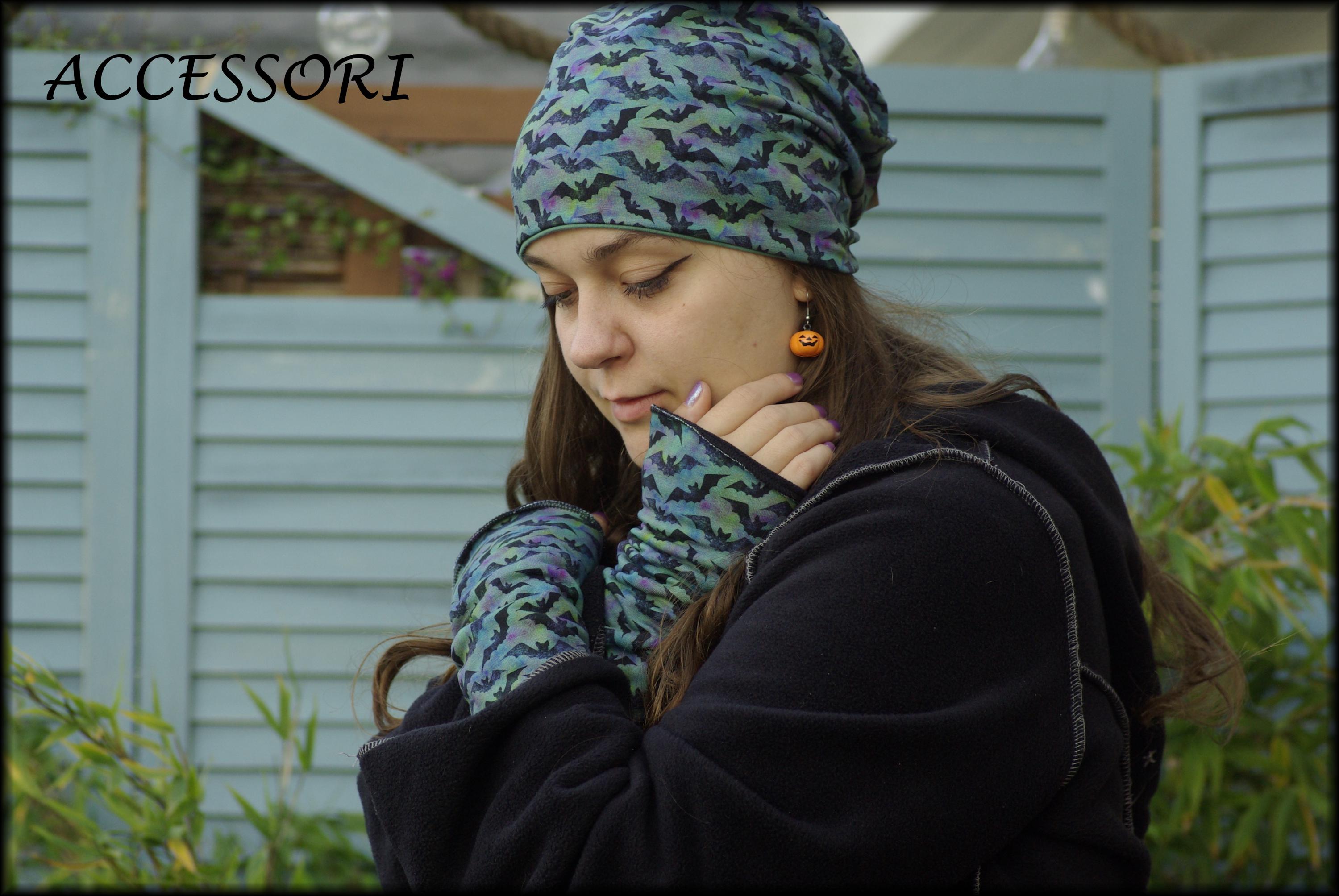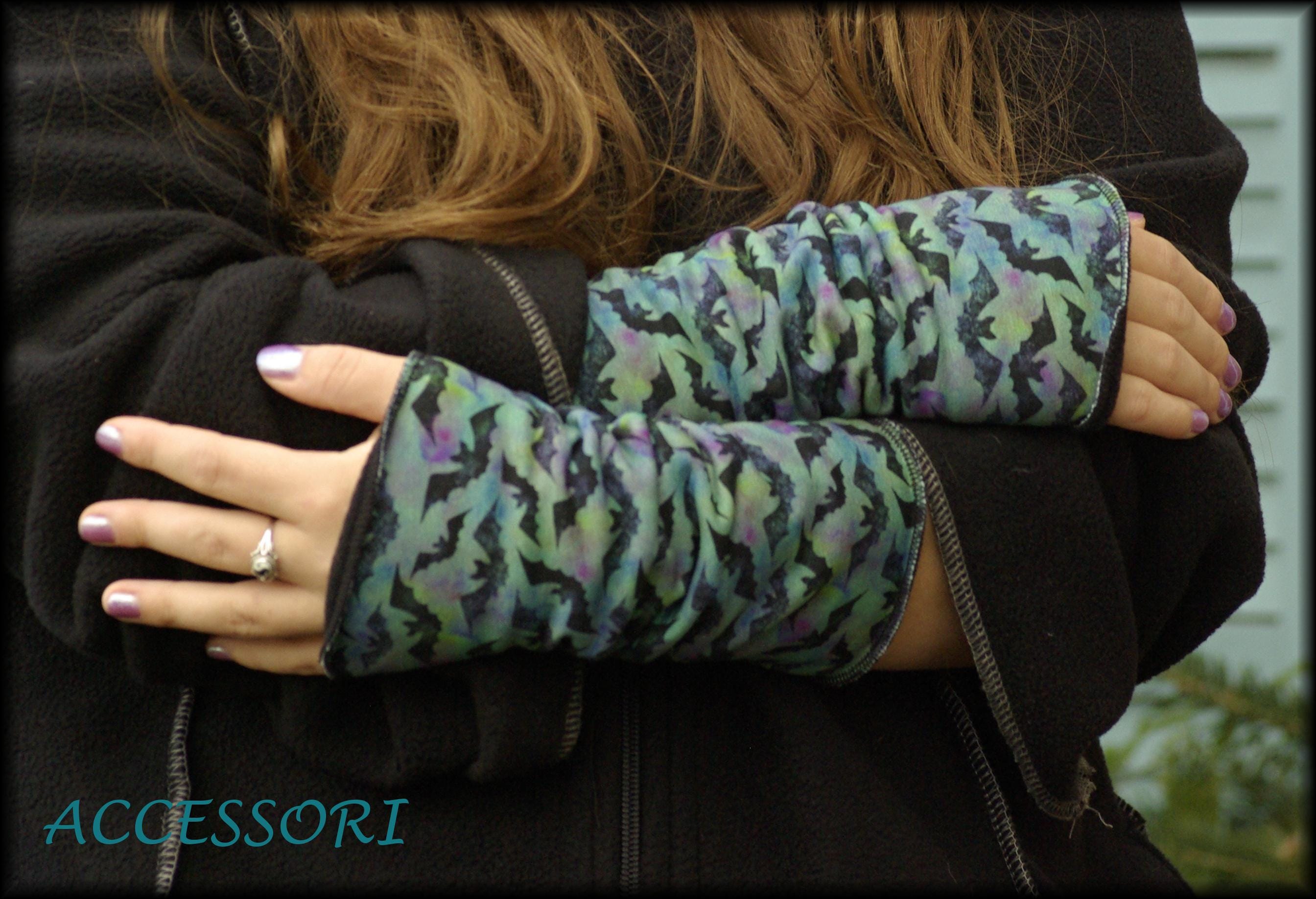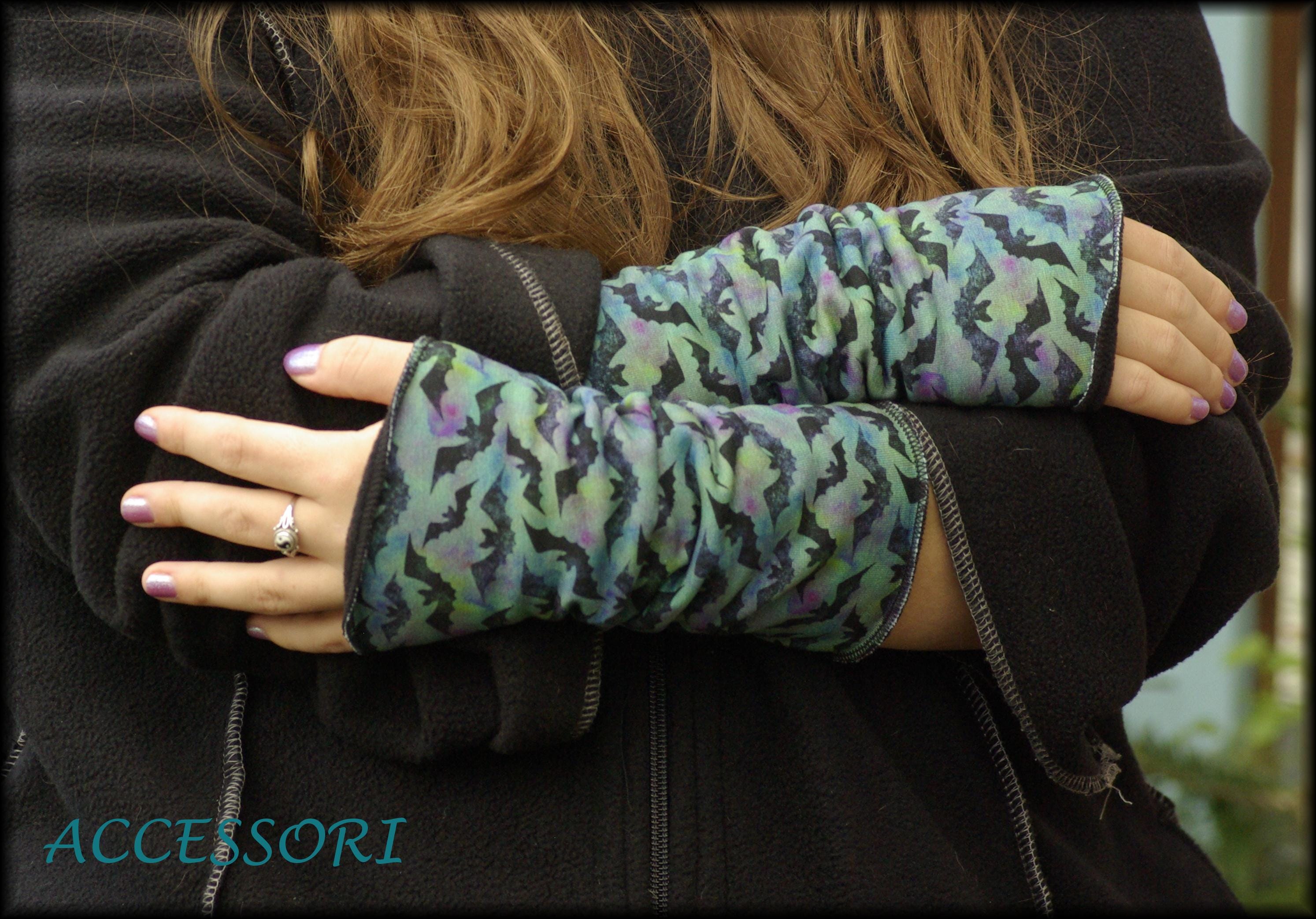 Cuffs Halloween wrist warmers petrol purple green black bat cotton jersey