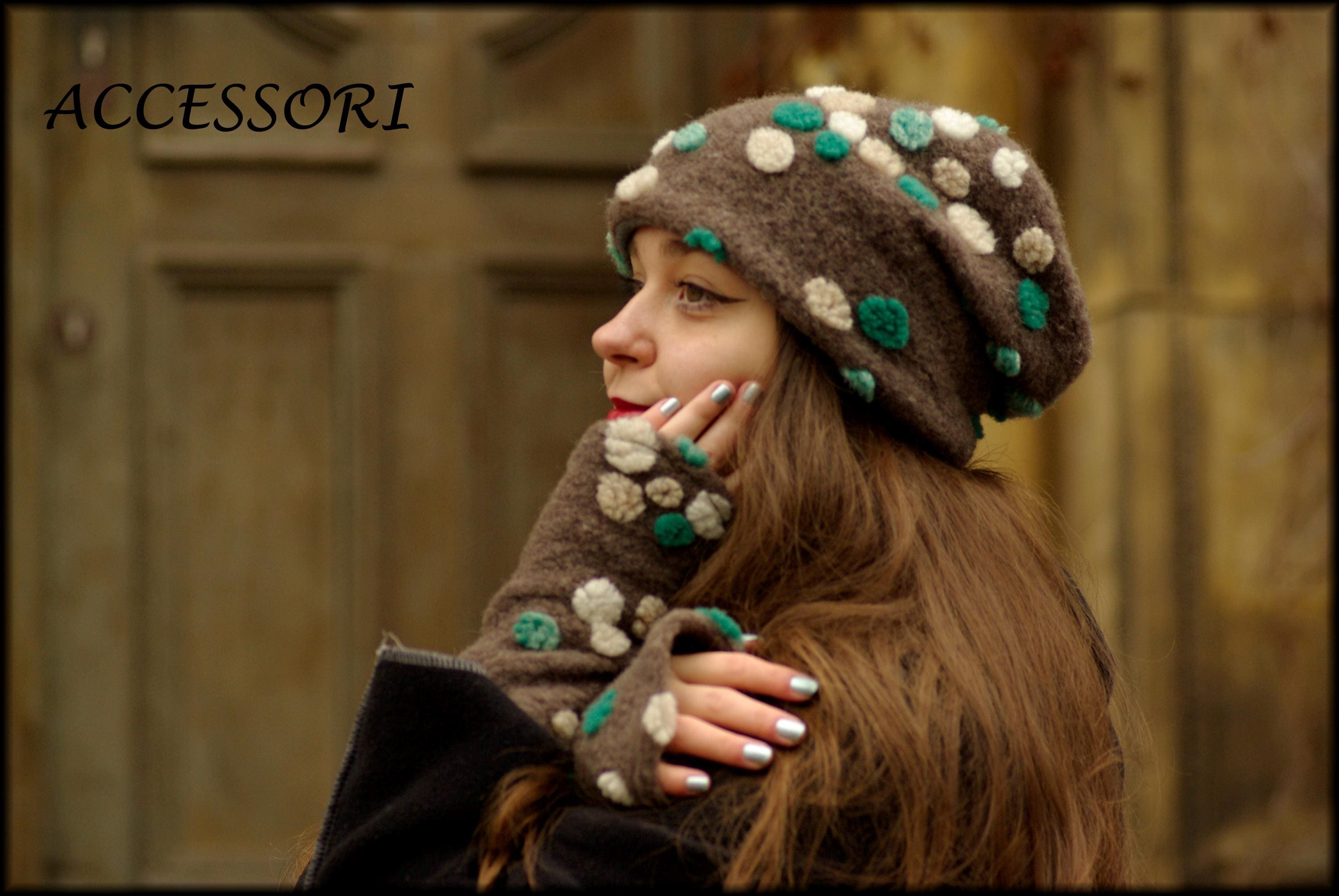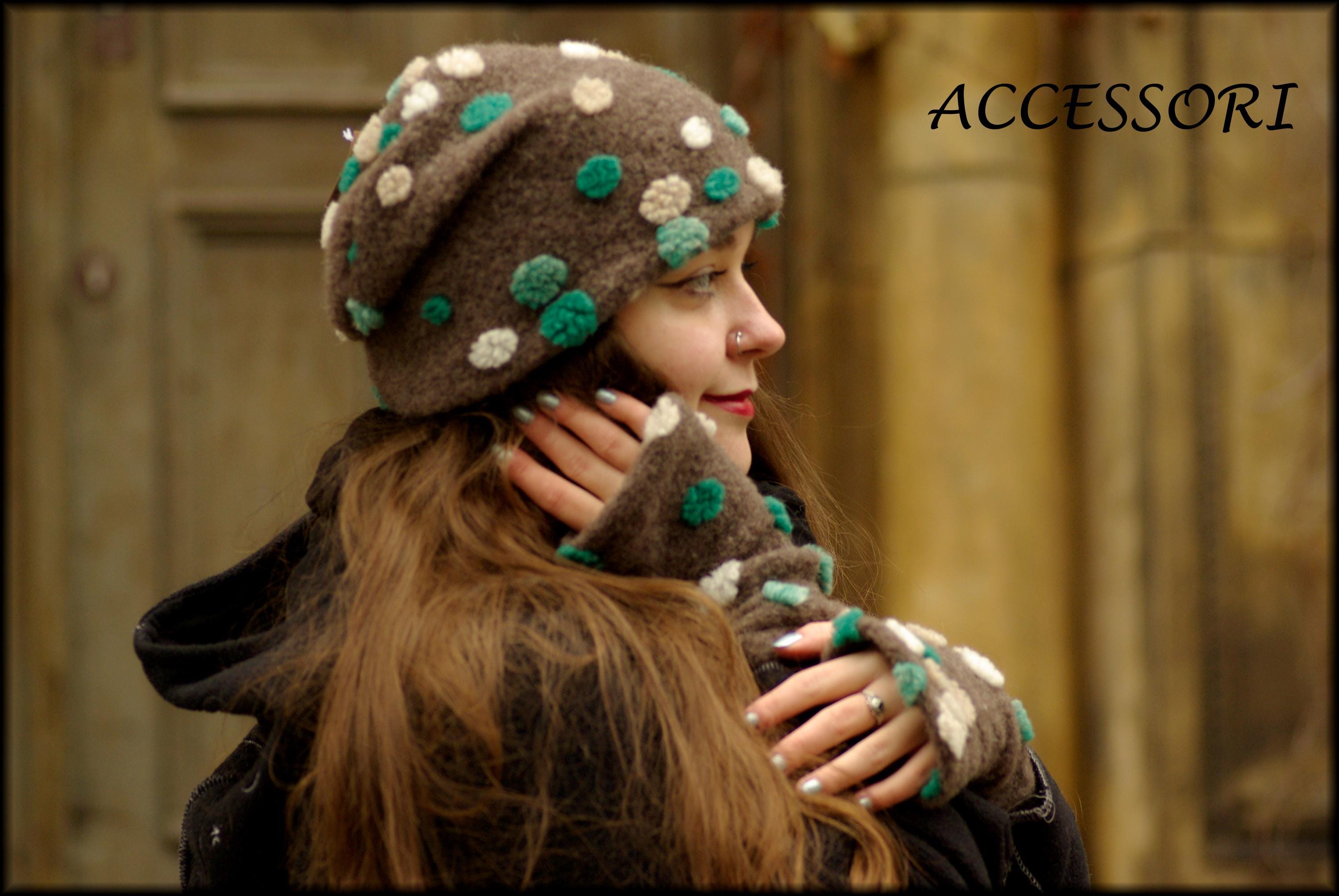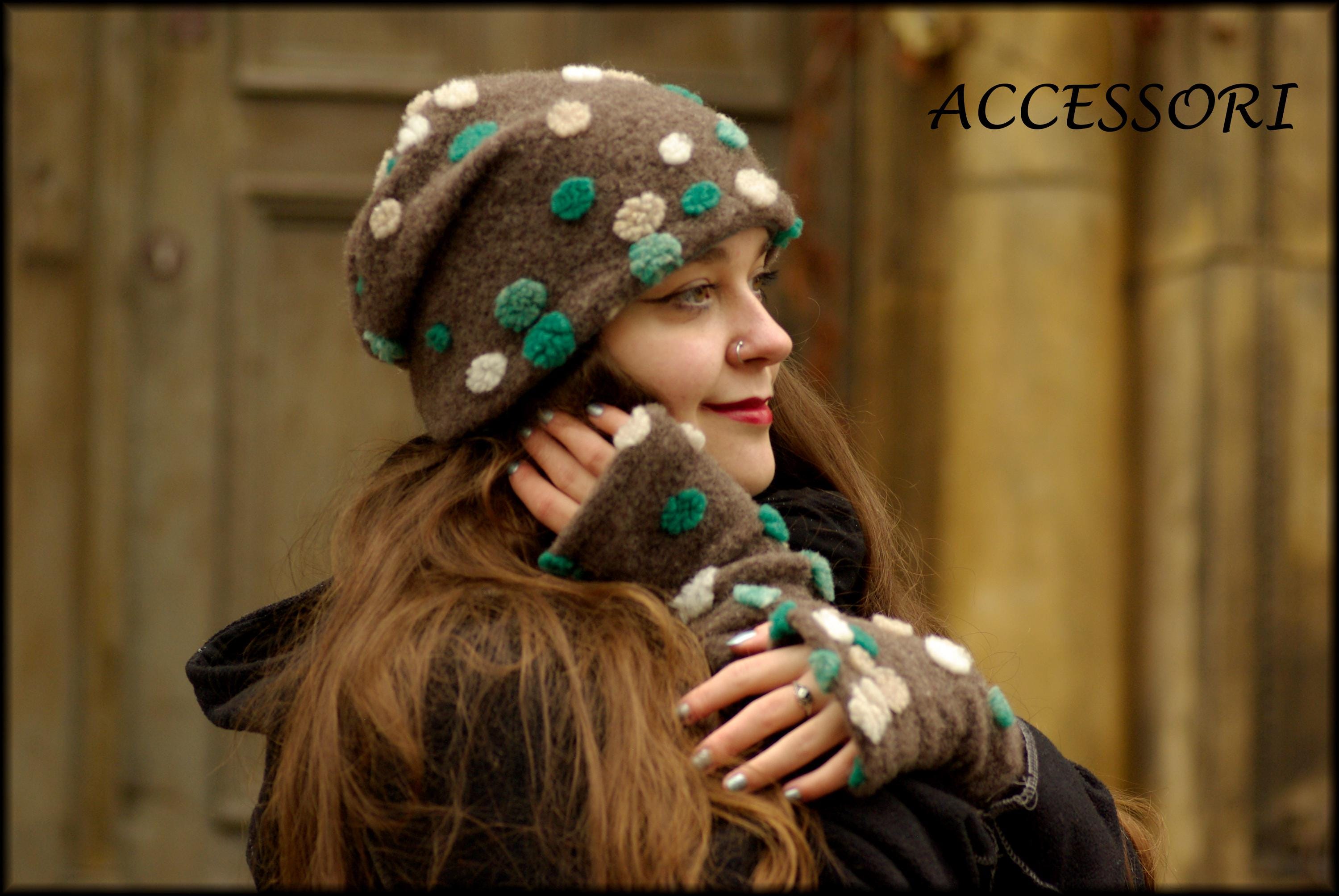 Matching wrist warmers with thumb holes can be ordered to go with the hat.