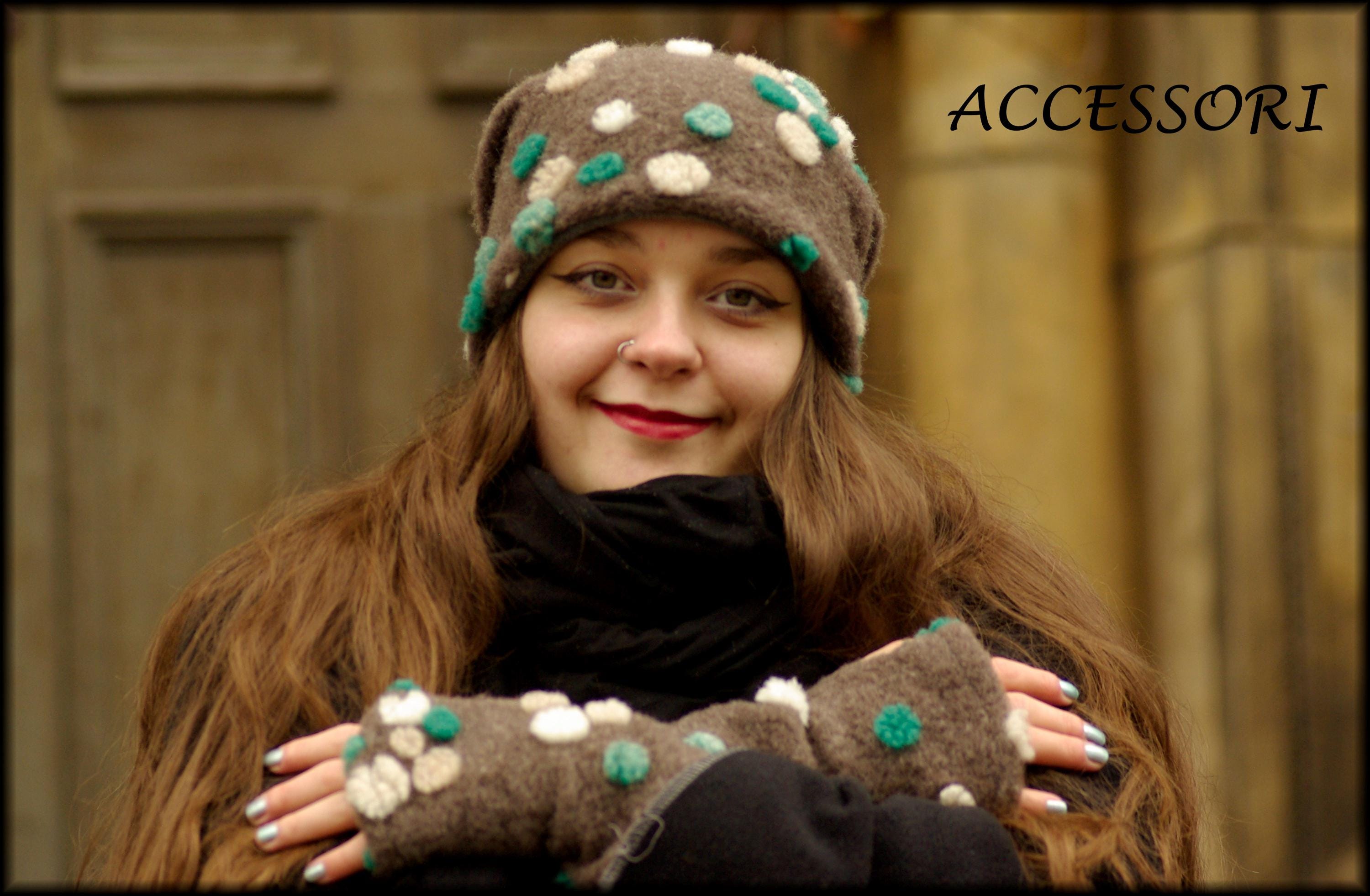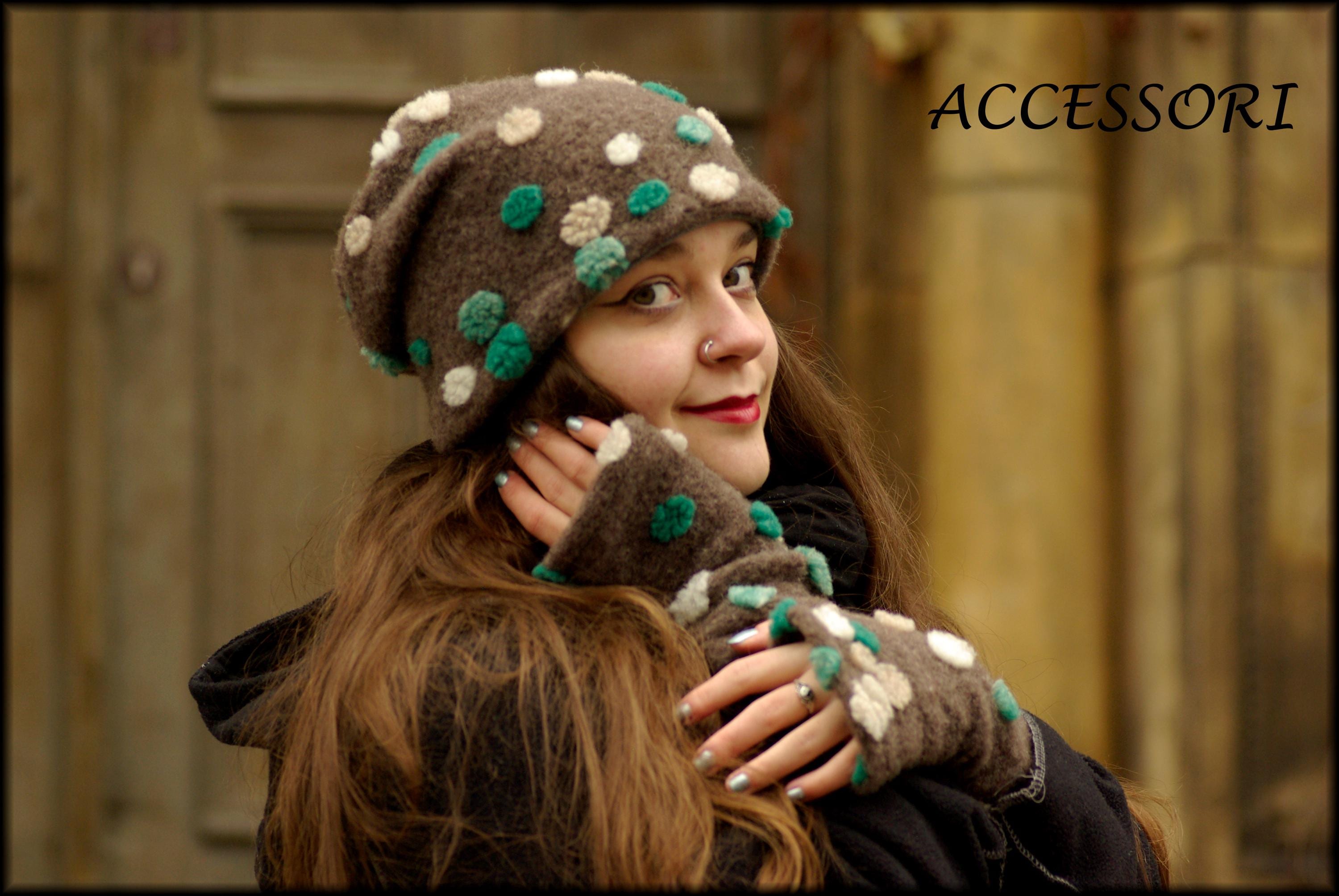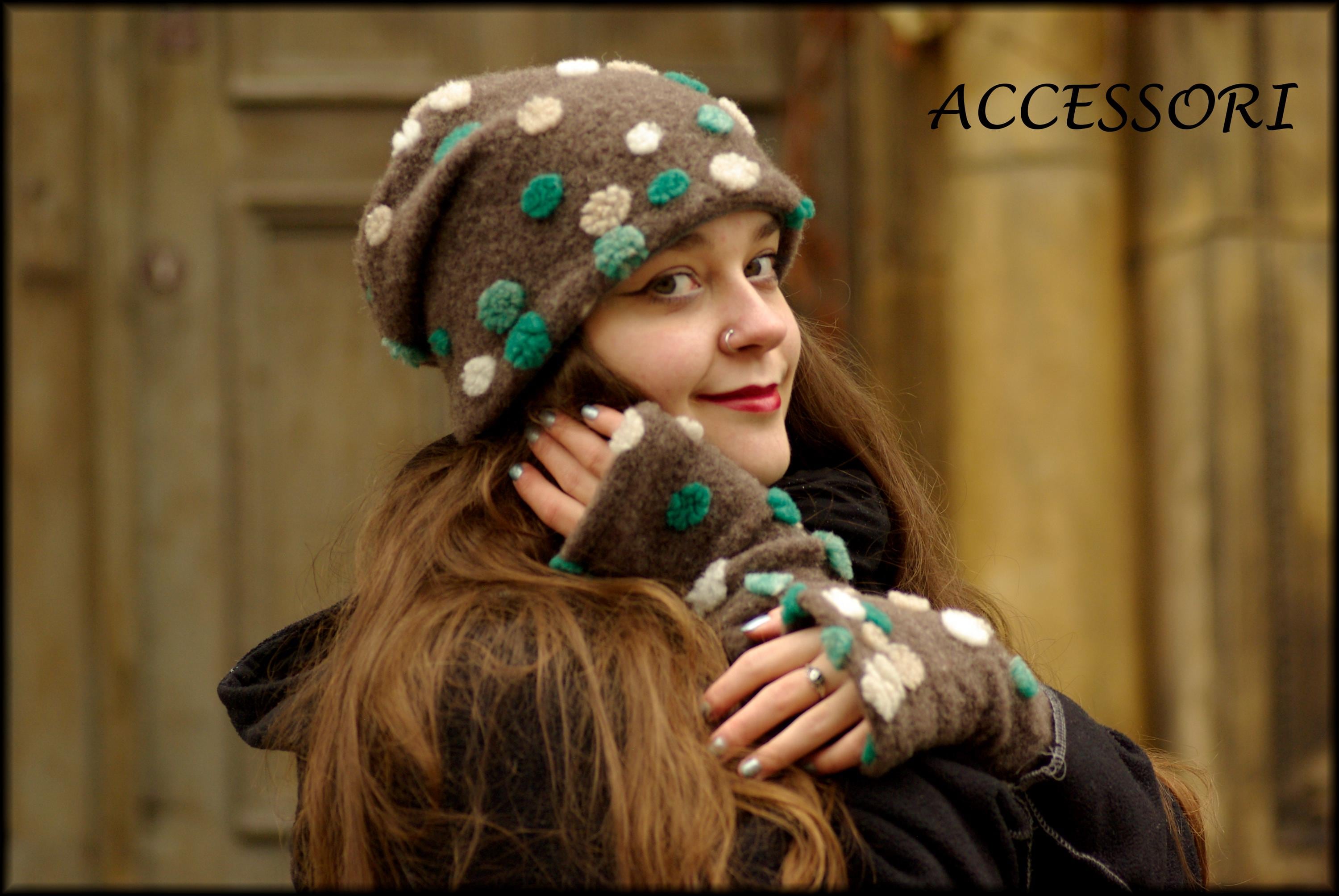 Matching wrist warmers with thumb holes can be ordered to go with the hat.
