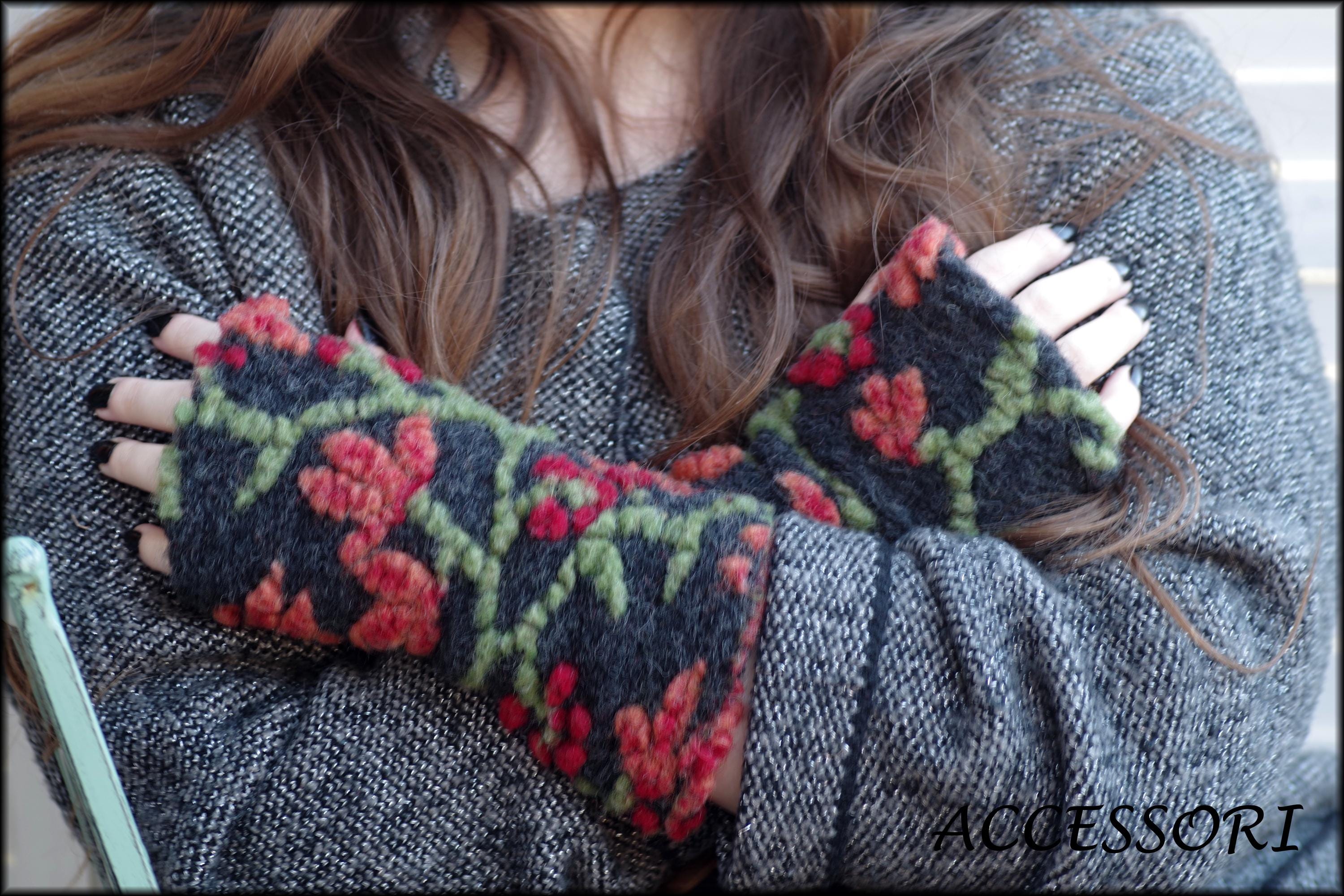 Arm warmers with thumb hole made of wool fabric - 80% wool, 20% cotton.