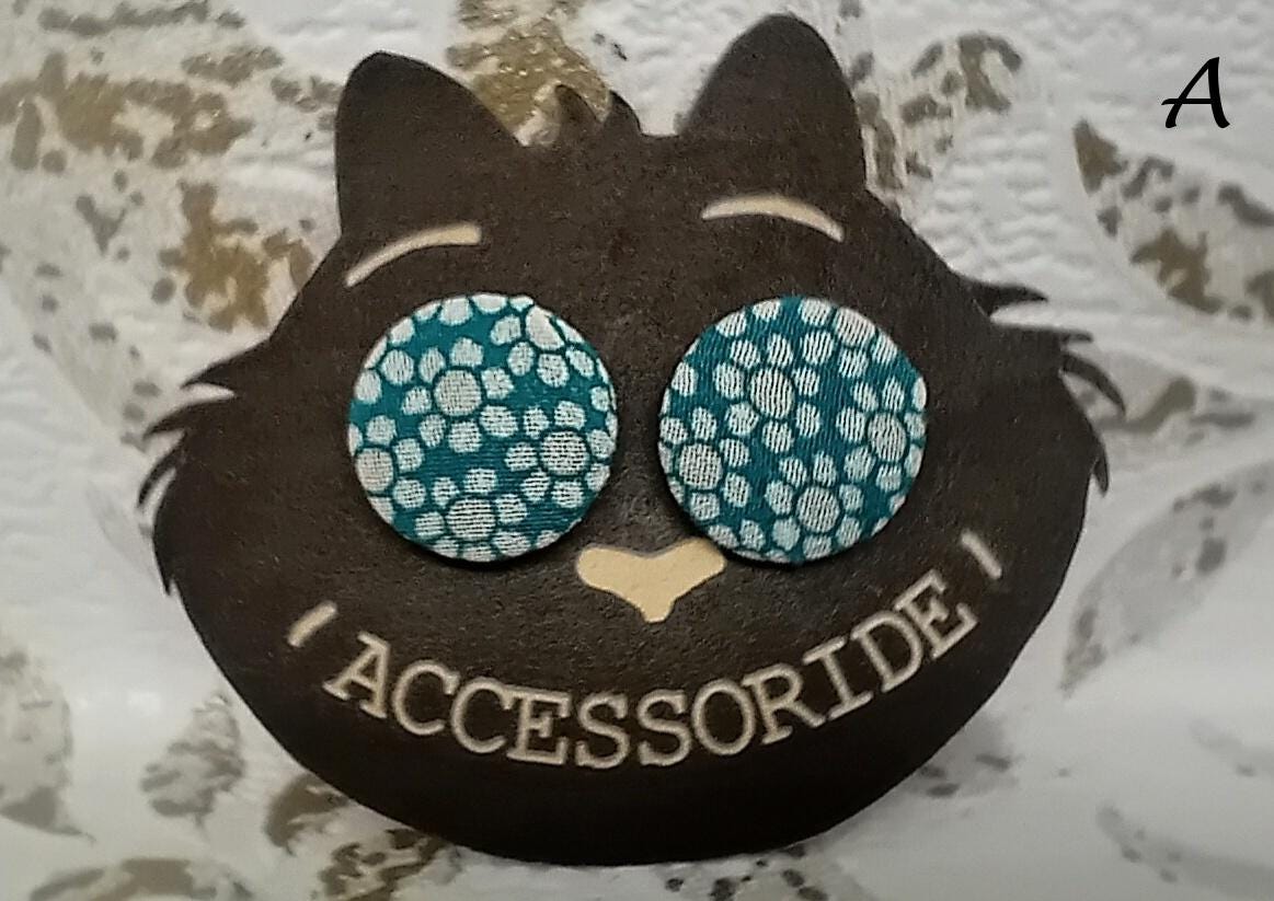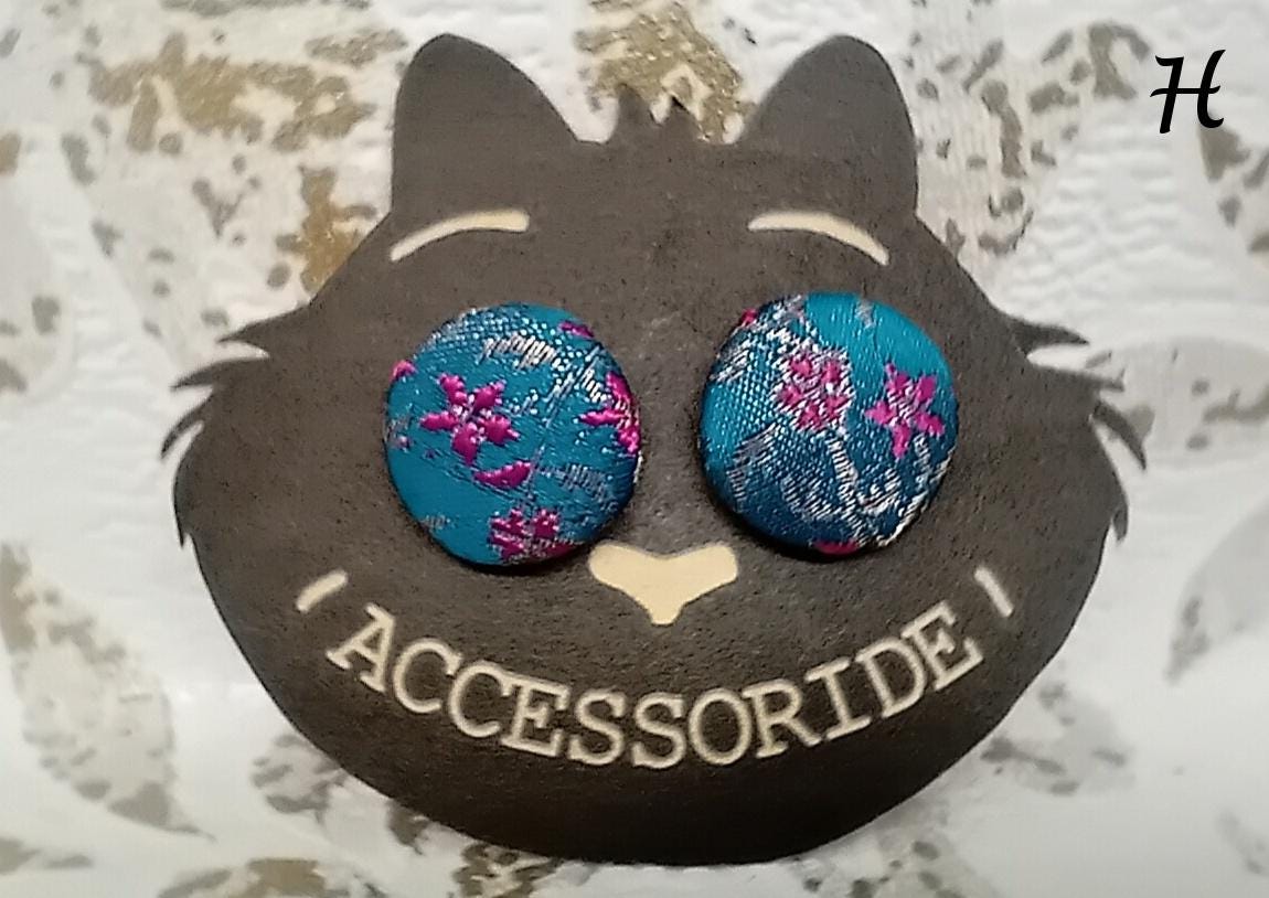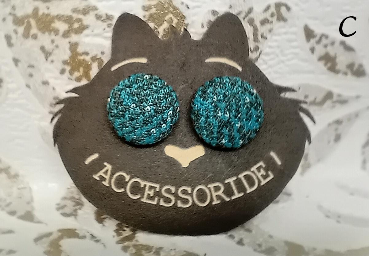 Stud earrings made of self-covered buttons in petrol color, stainless steel /nickel-free/