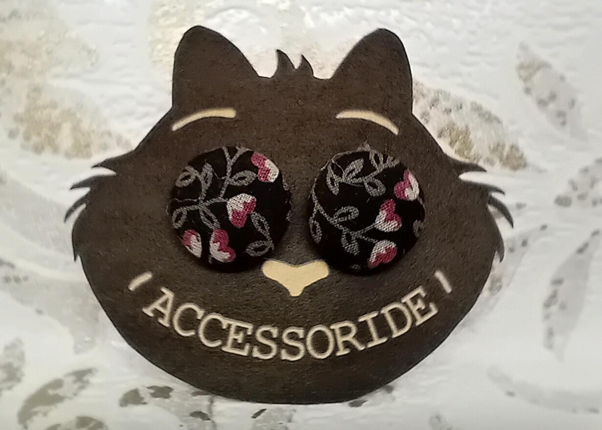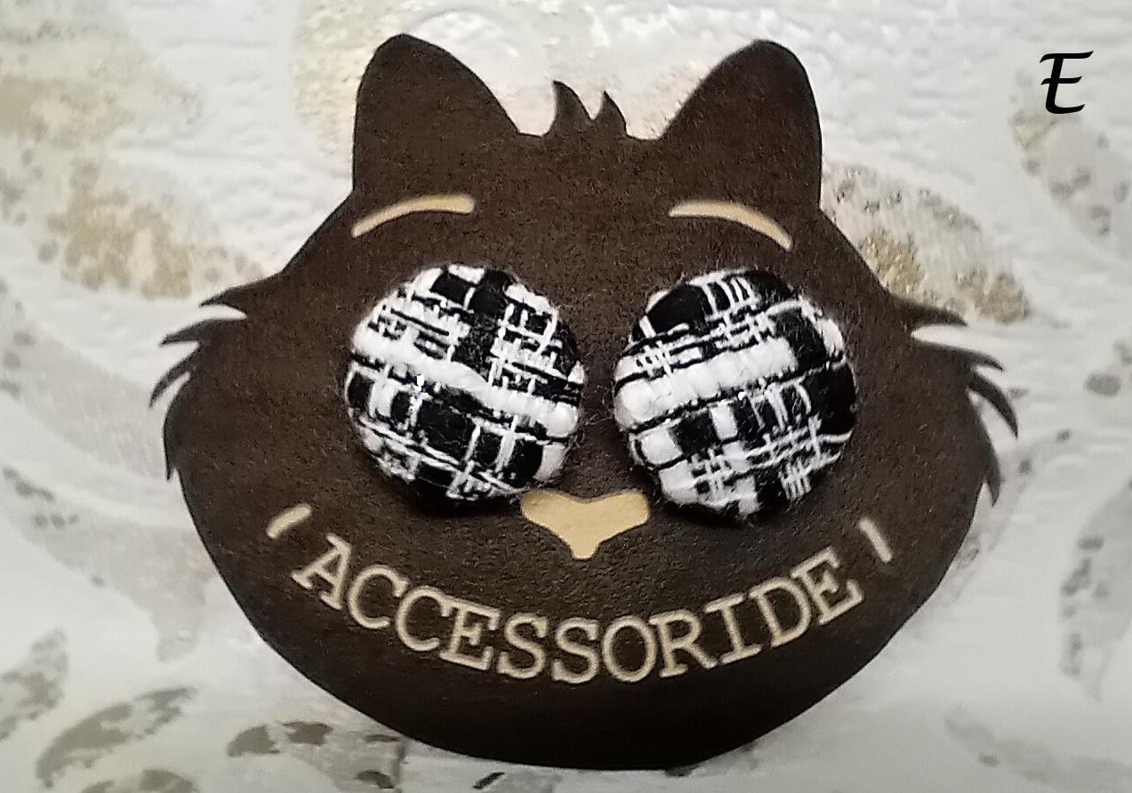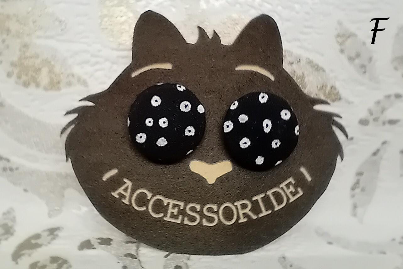 Black stud earrings made of self-covered buttons, stainless steel /nickel-free/