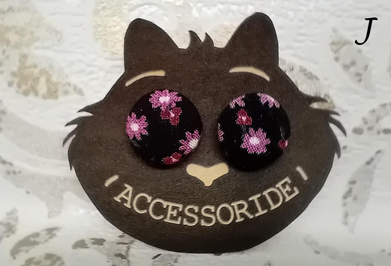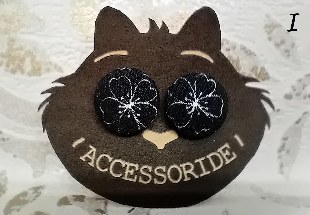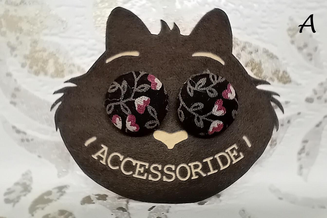 Black stud earrings made of self-covered buttons, stainless steel /nickel-free/