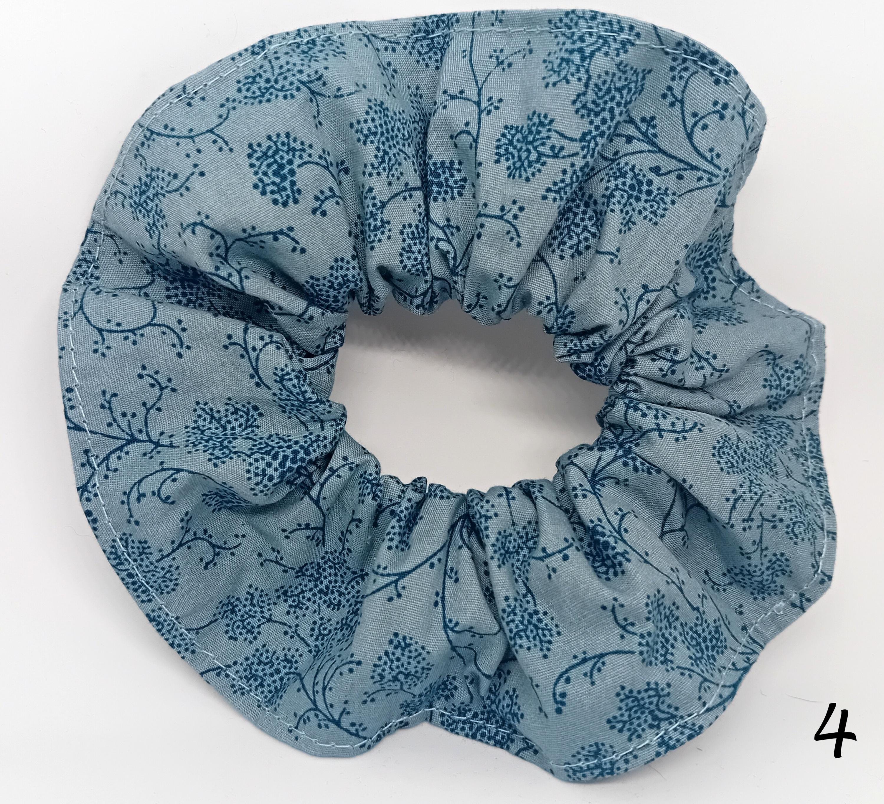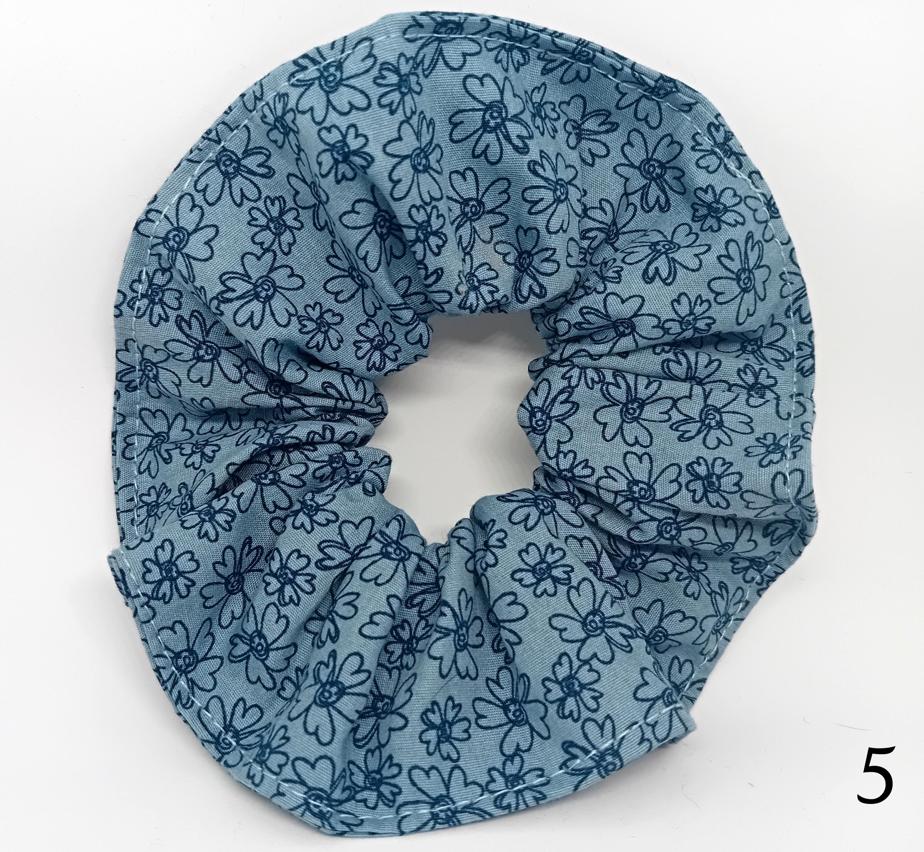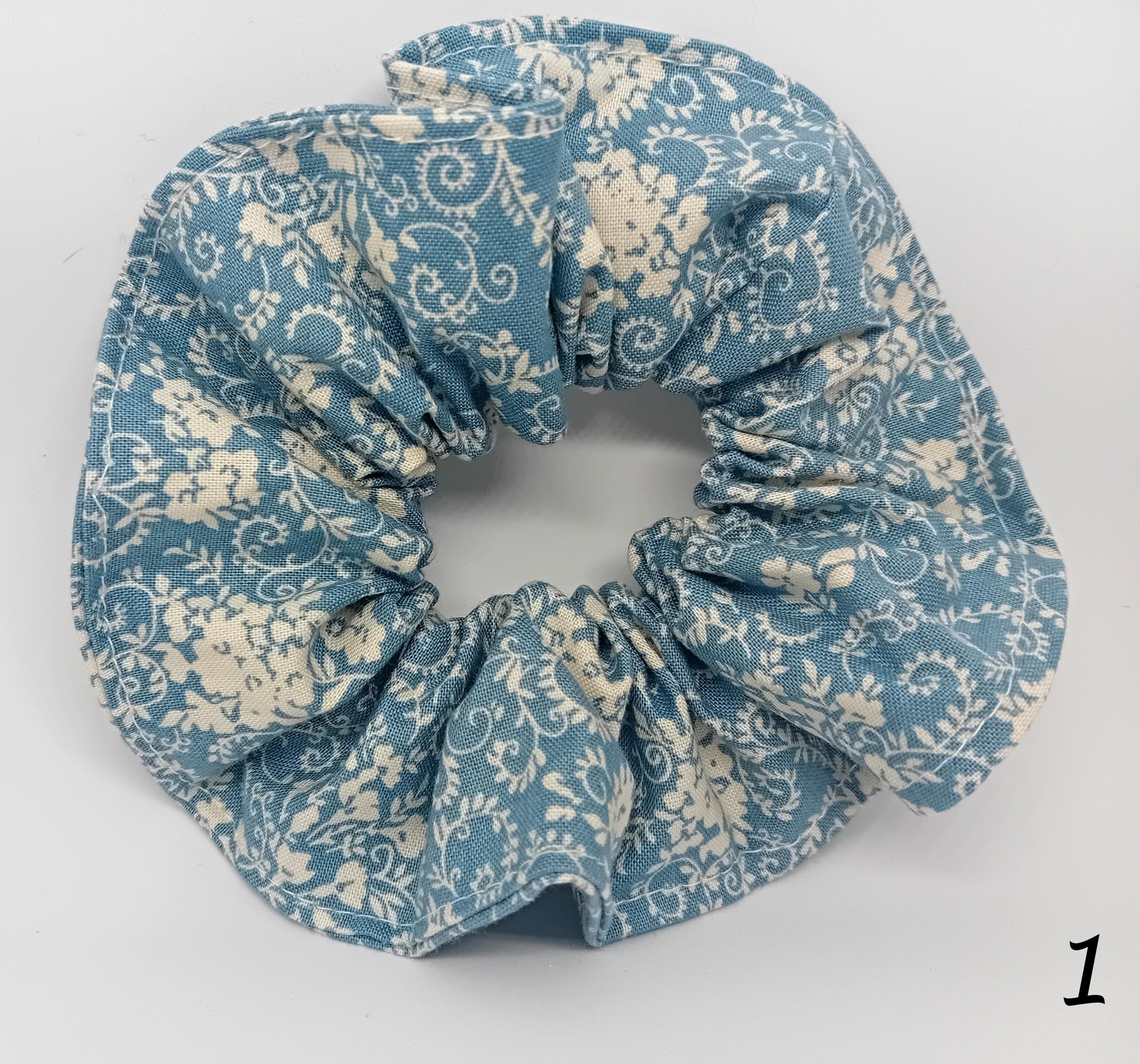 These scrunchies are sewn from various beautiful cotton fabrics.