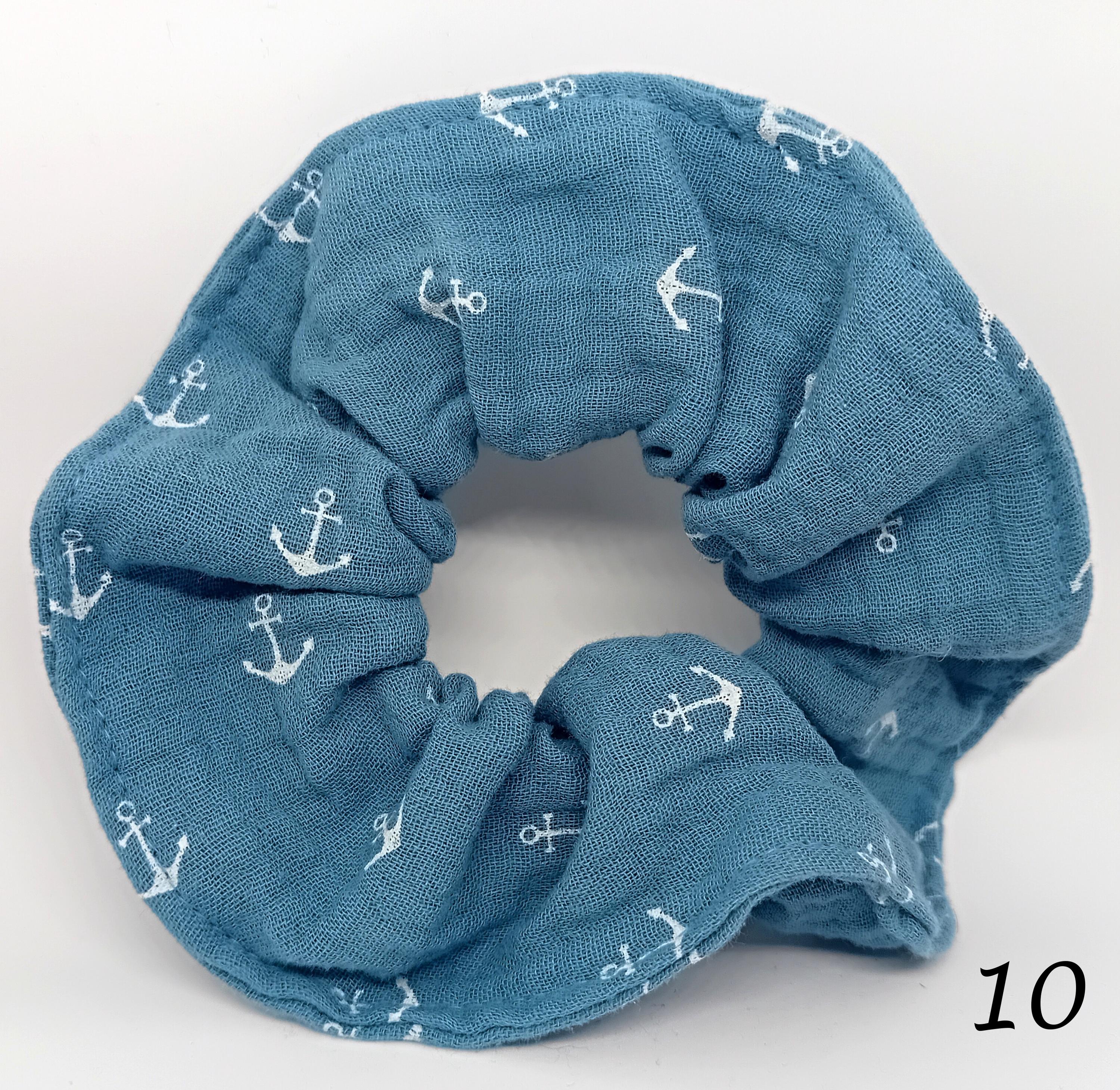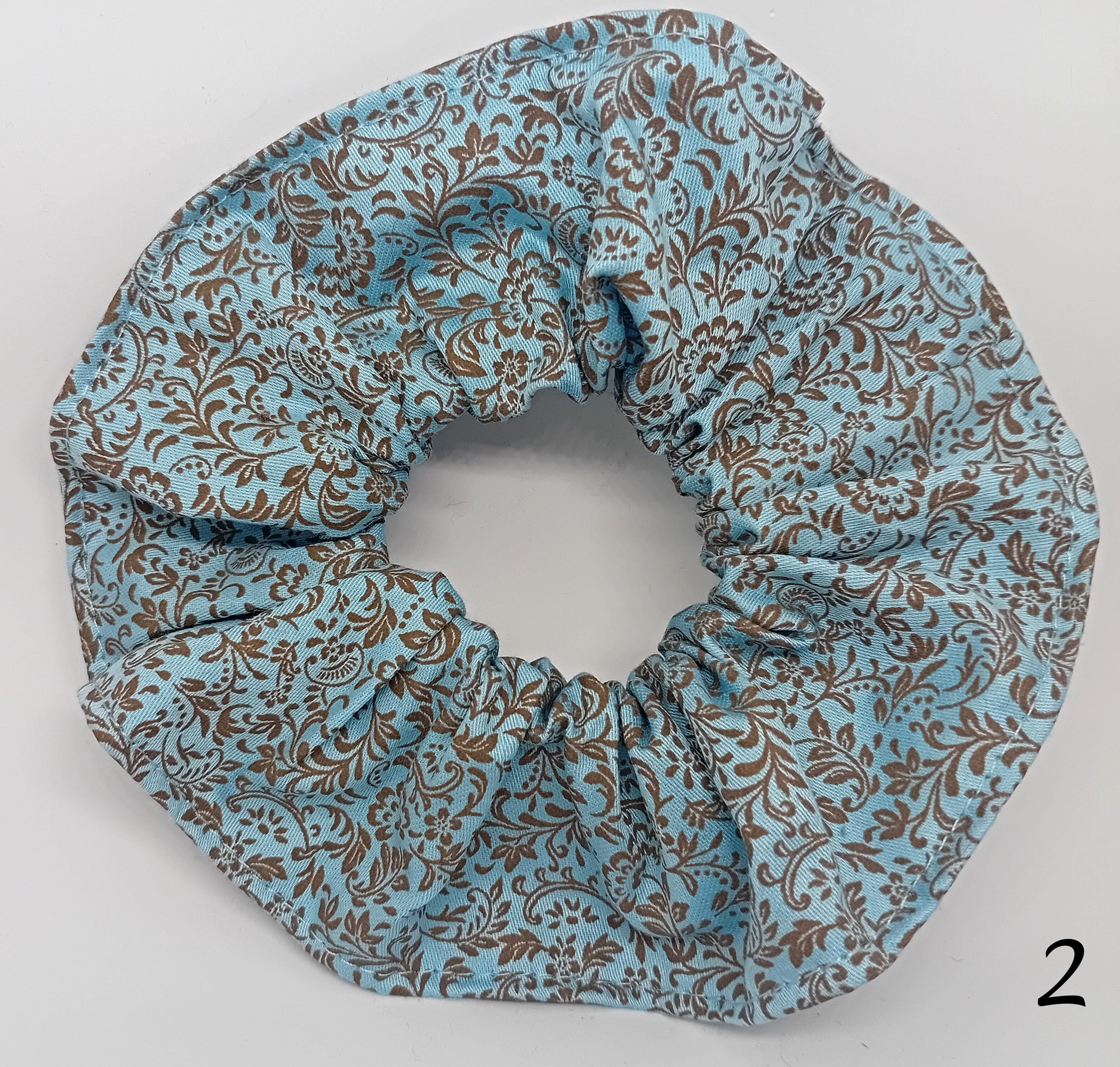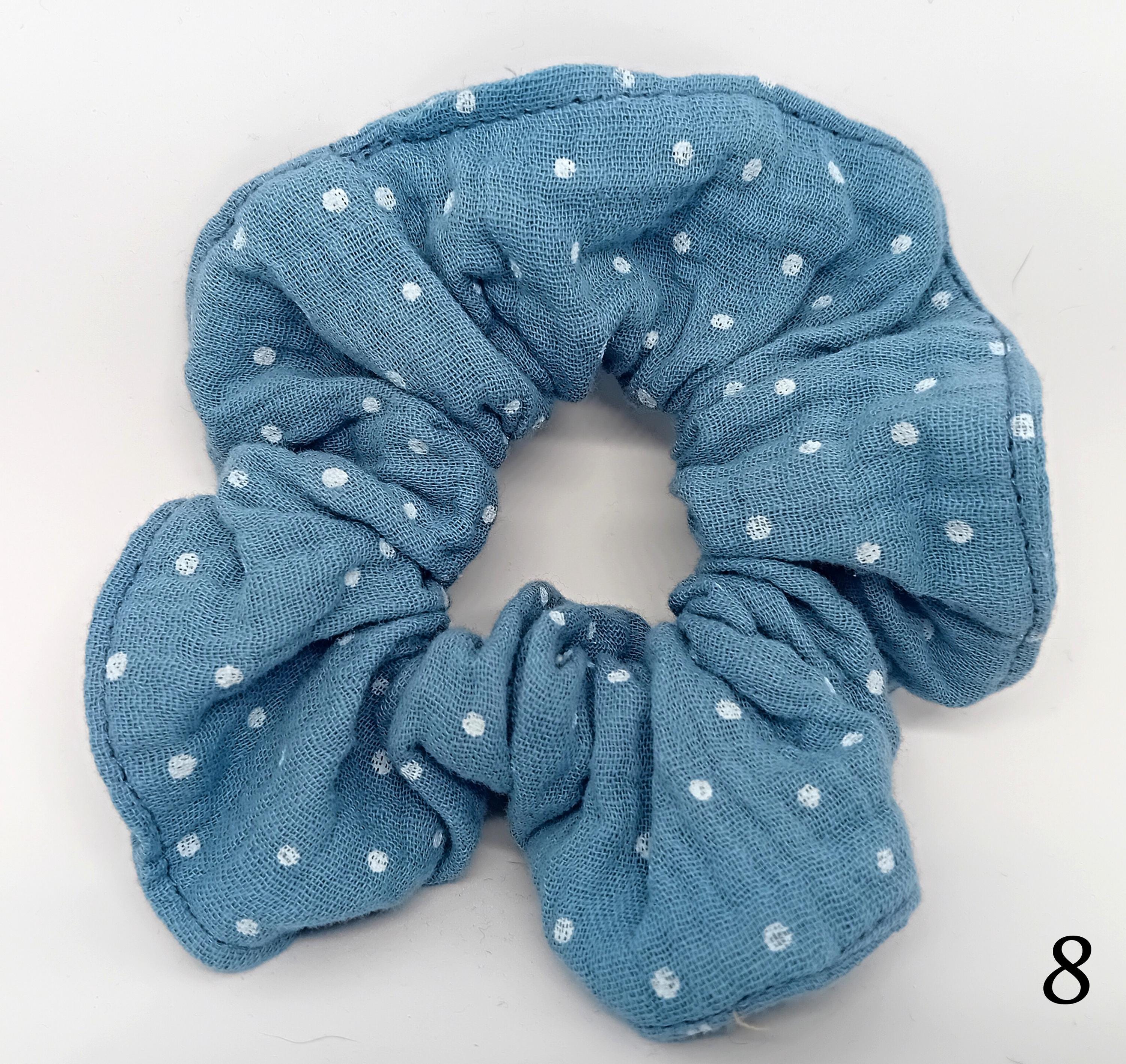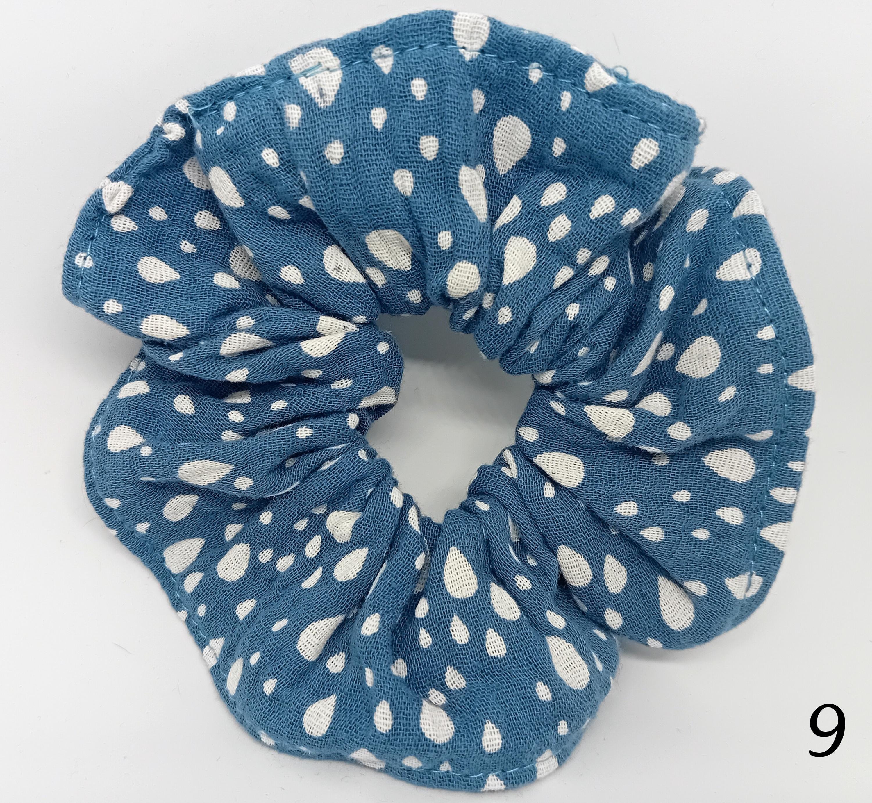 These scrunchies are sewn from various beautiful cotton fabrics.