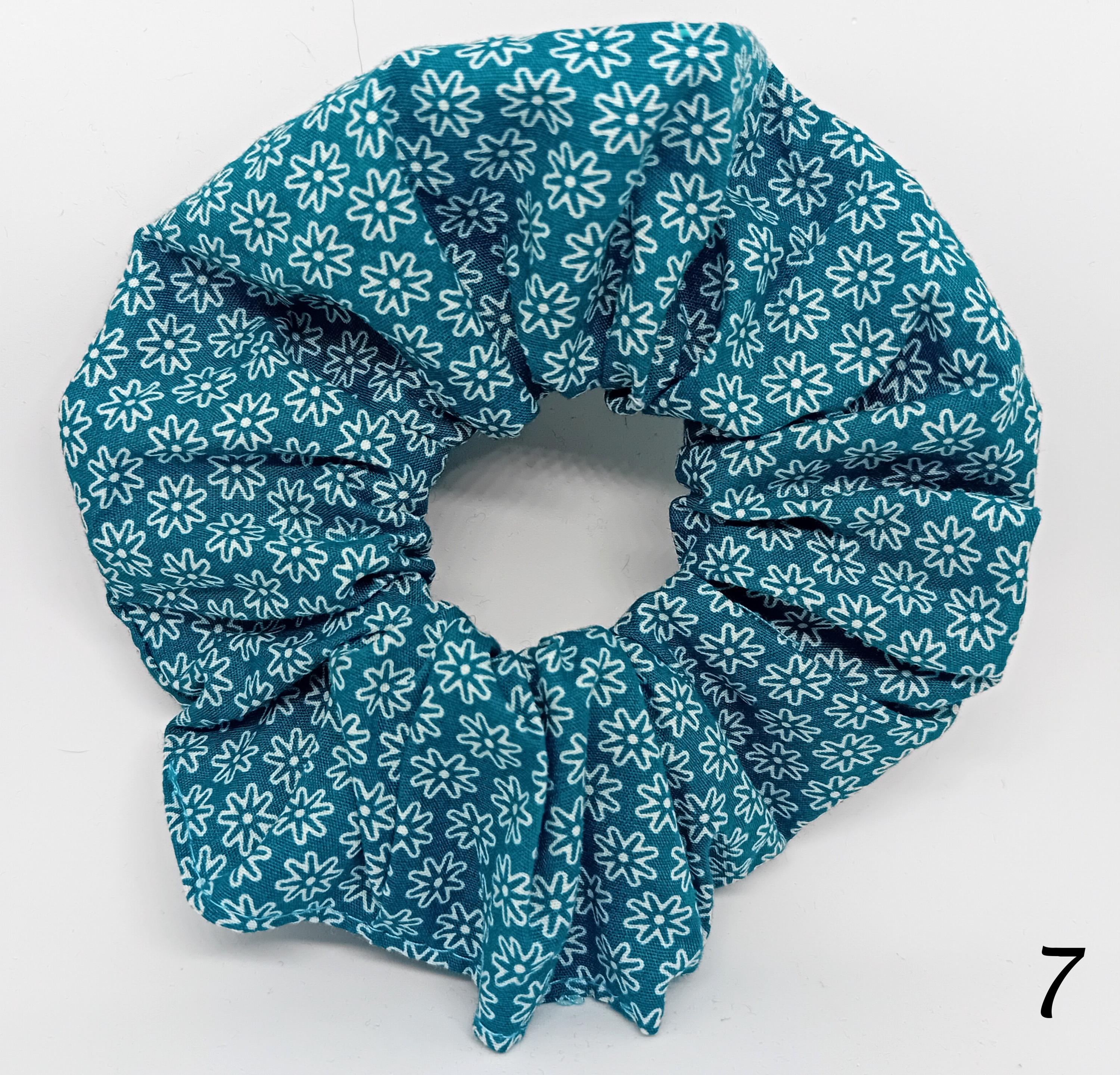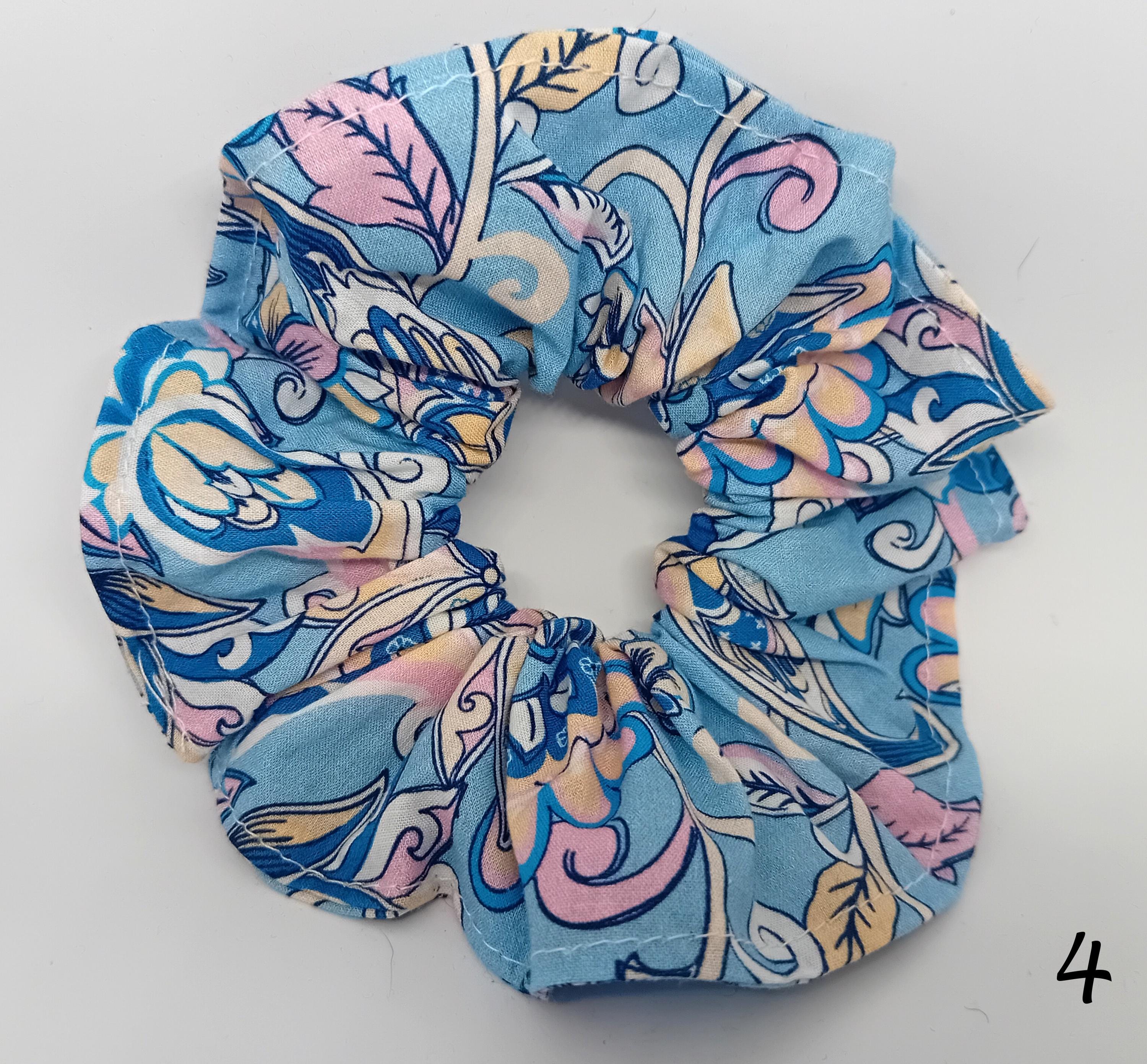 These scrunchies are sewn from various beautiful cotton fabrics.