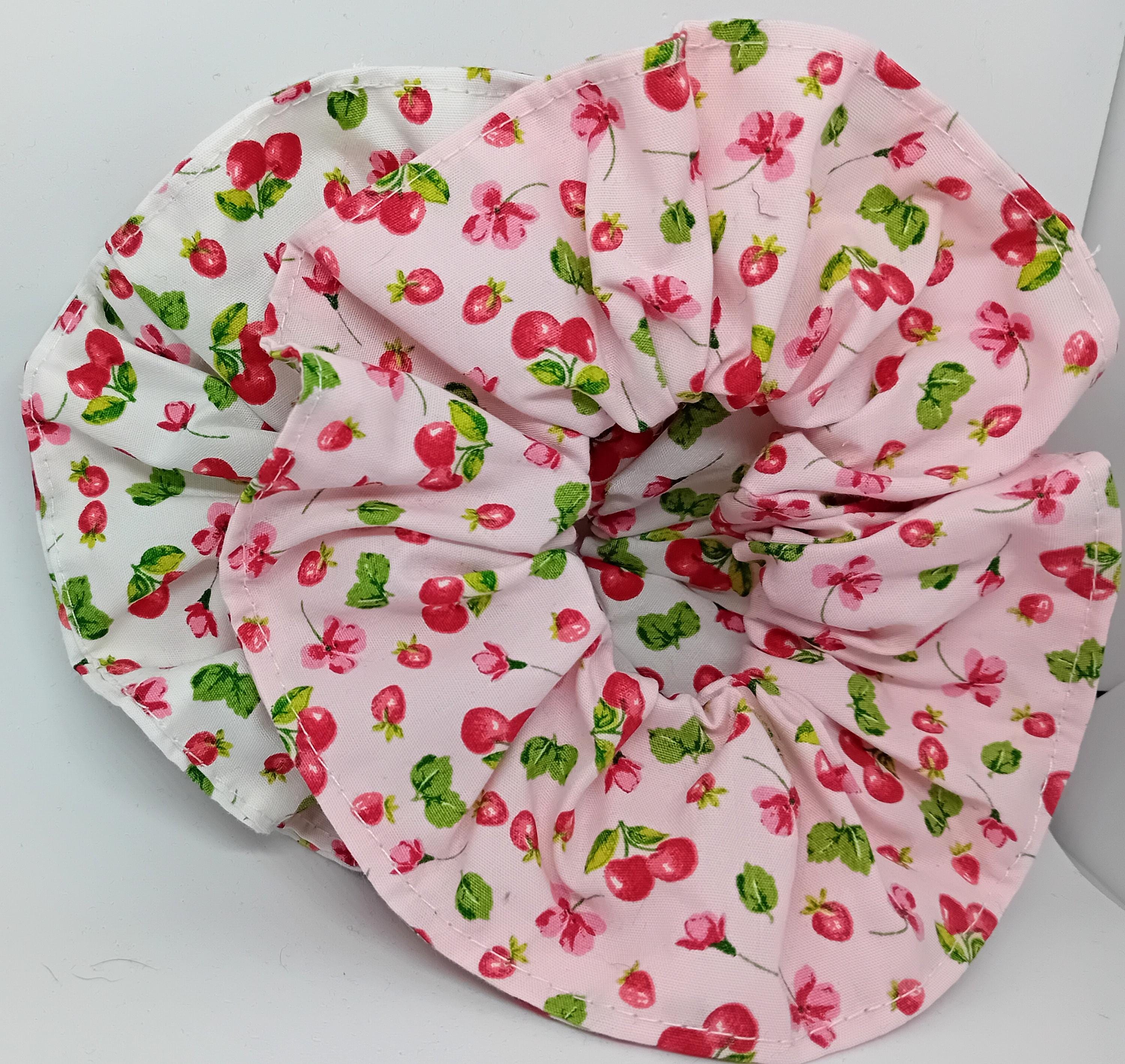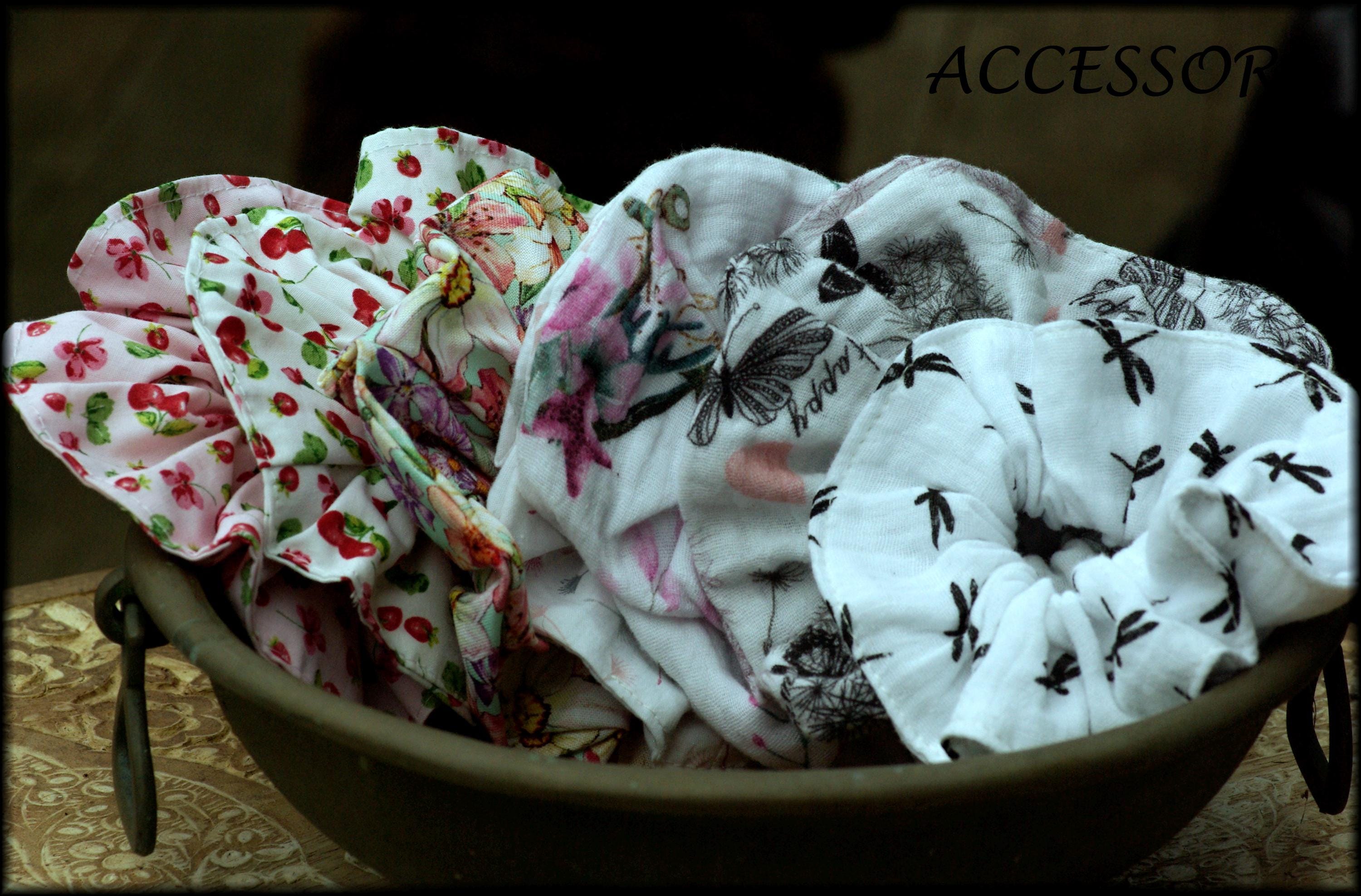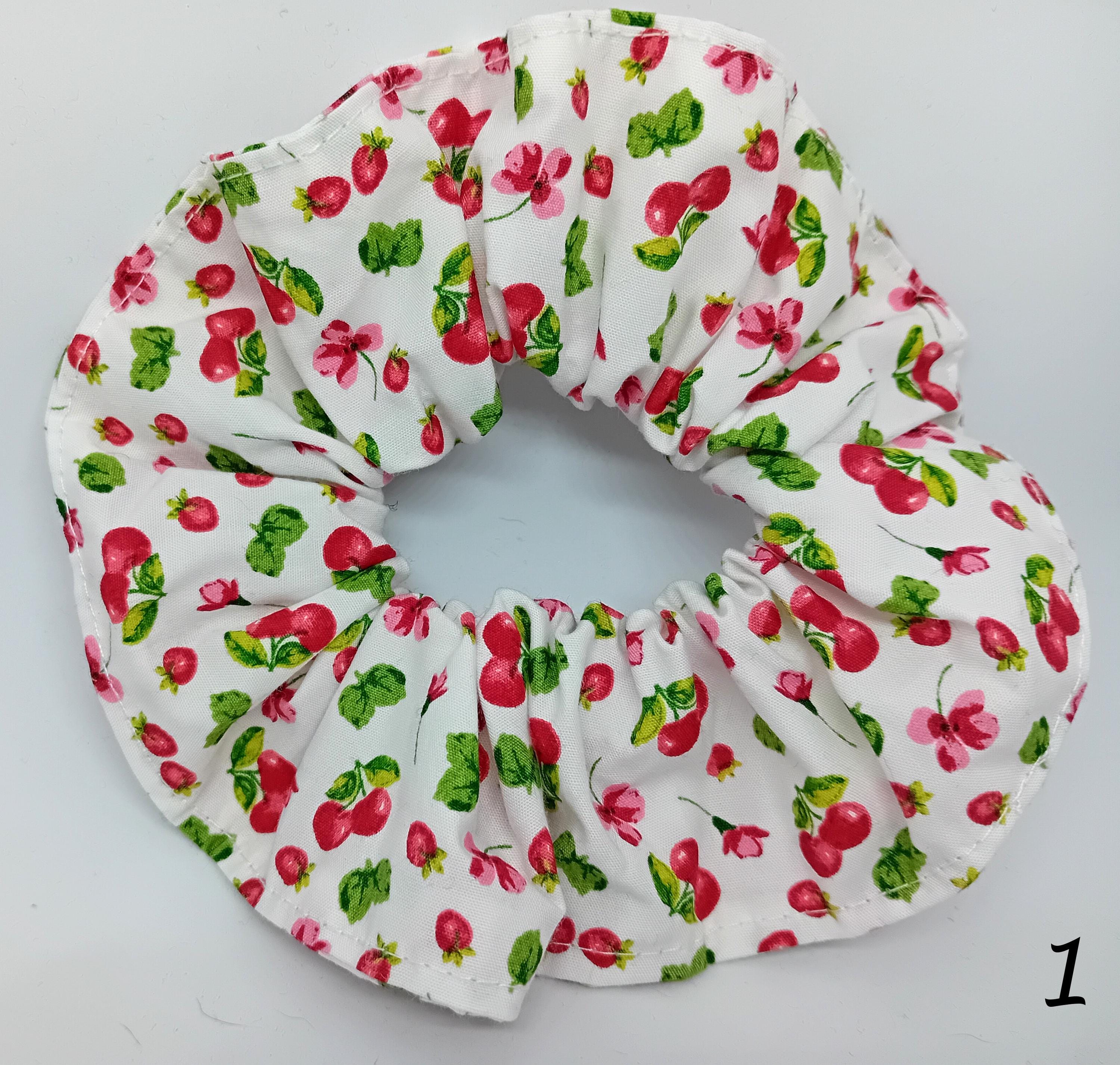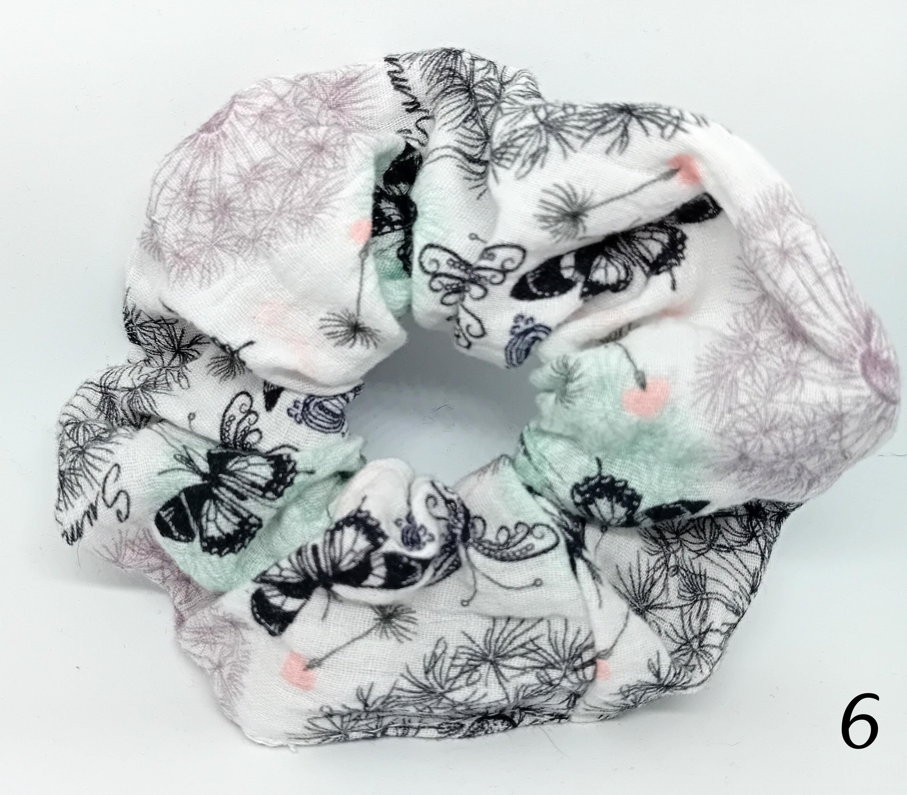These scrunchies are sewn from various beautiful cotton fabrics.