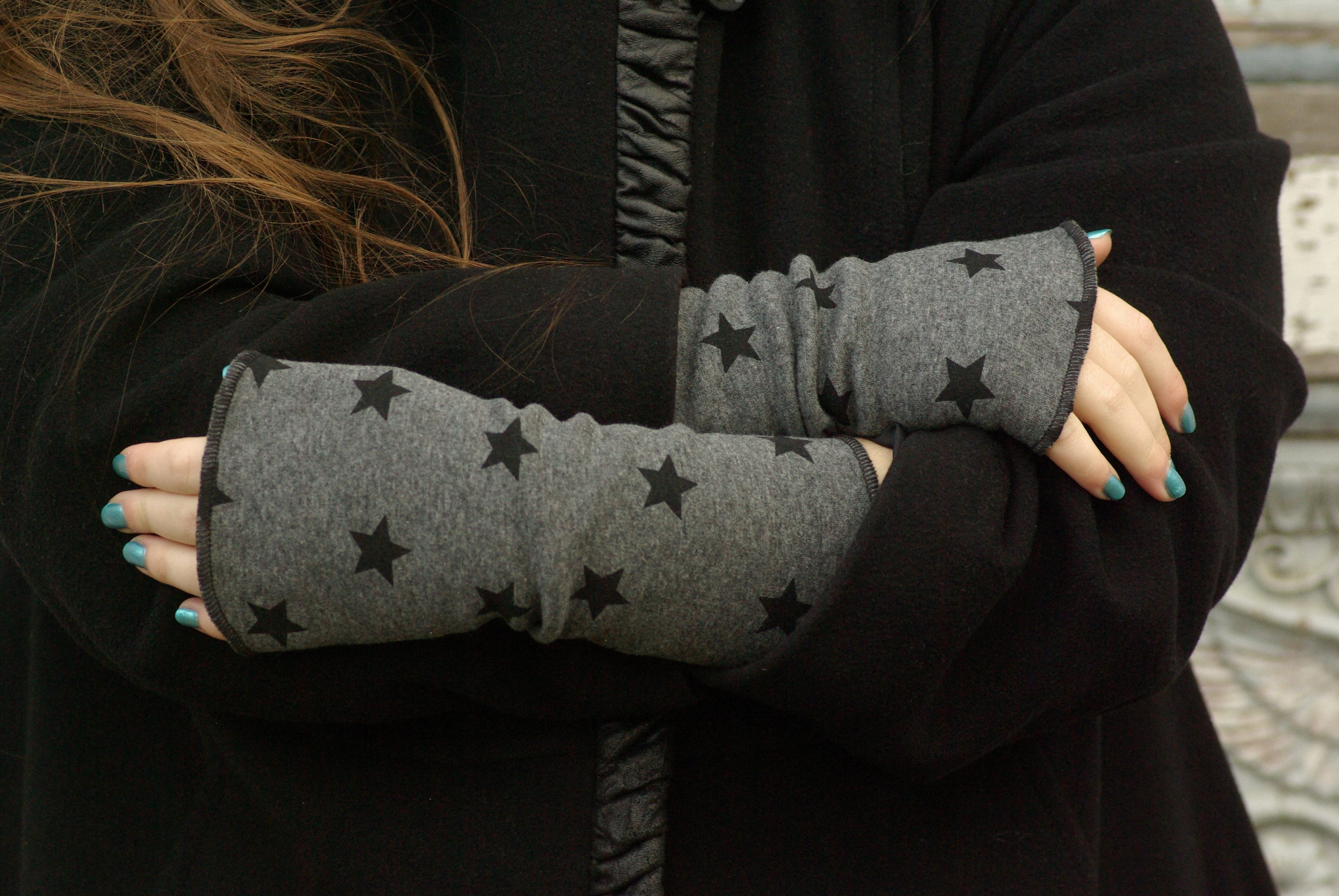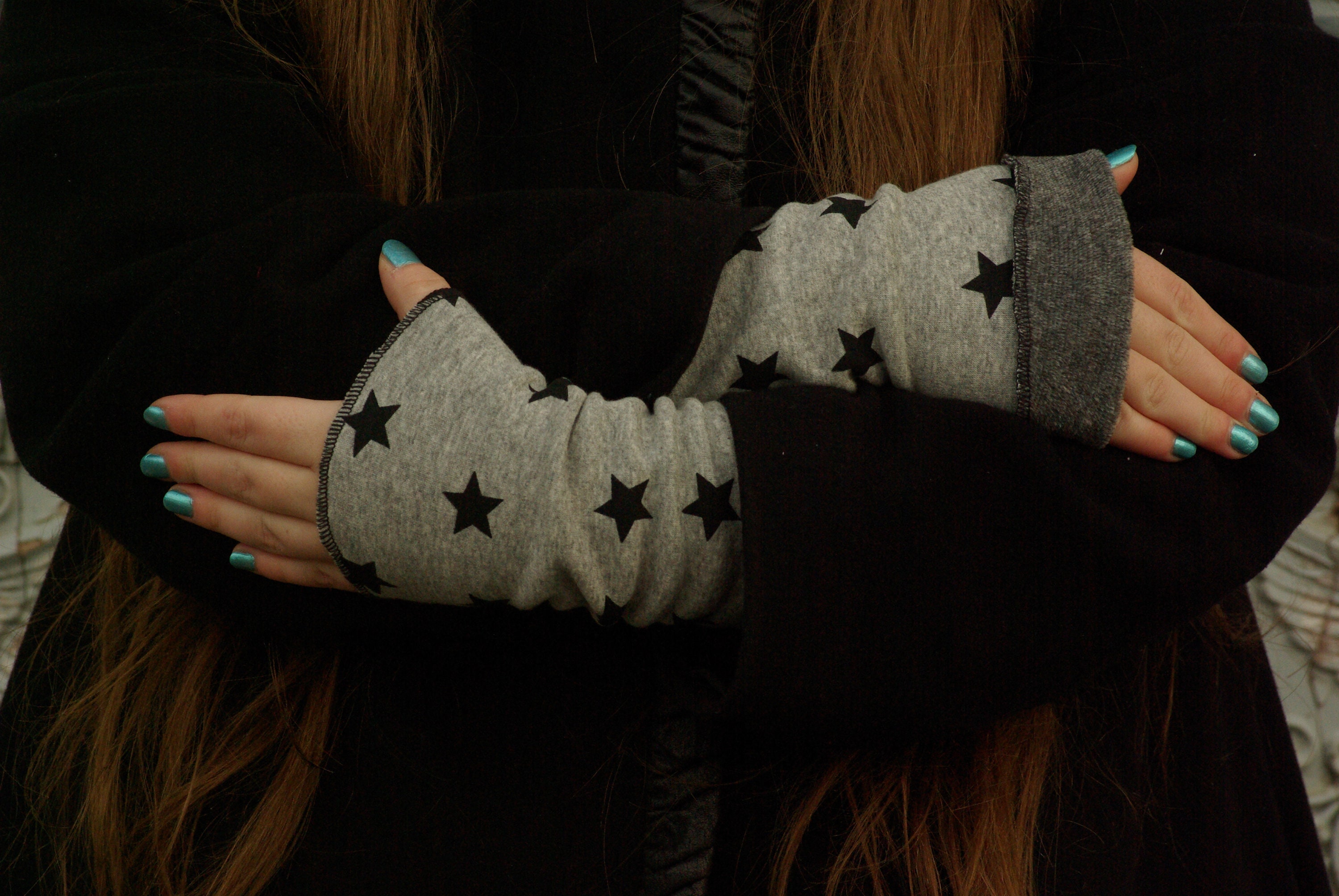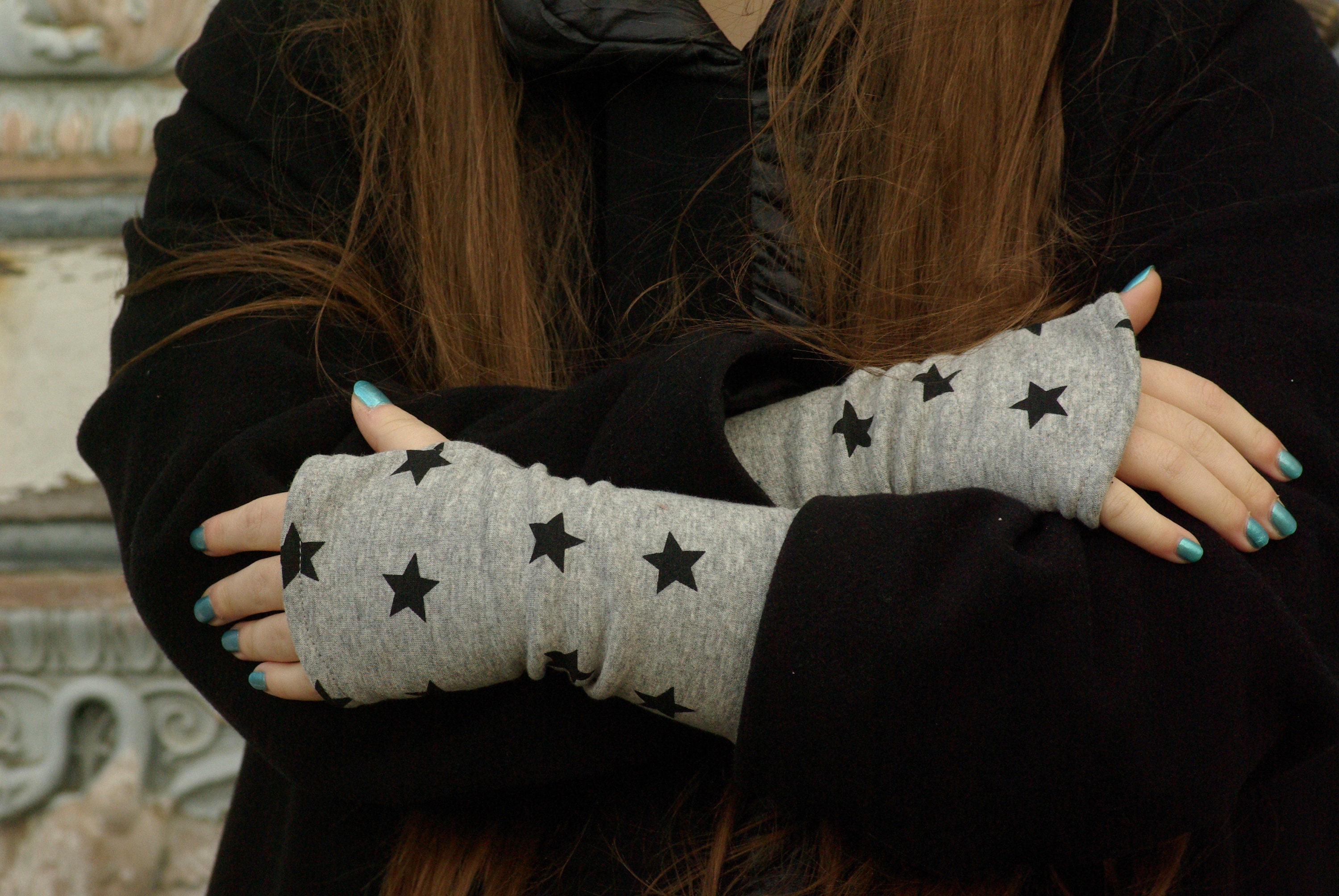 Warm, soft, comfortable arm warmers that can be rolled up and turned (length 25 cm) or with a thumb hole (length 21 cm) made from a wonderfully cuddly material: 56% polyester, 40% cotton, 4% elastane,
