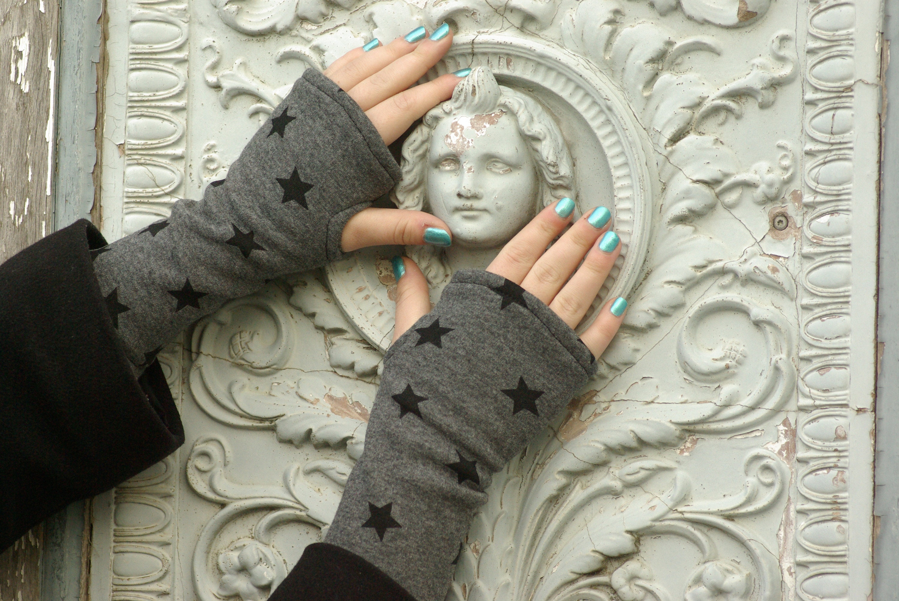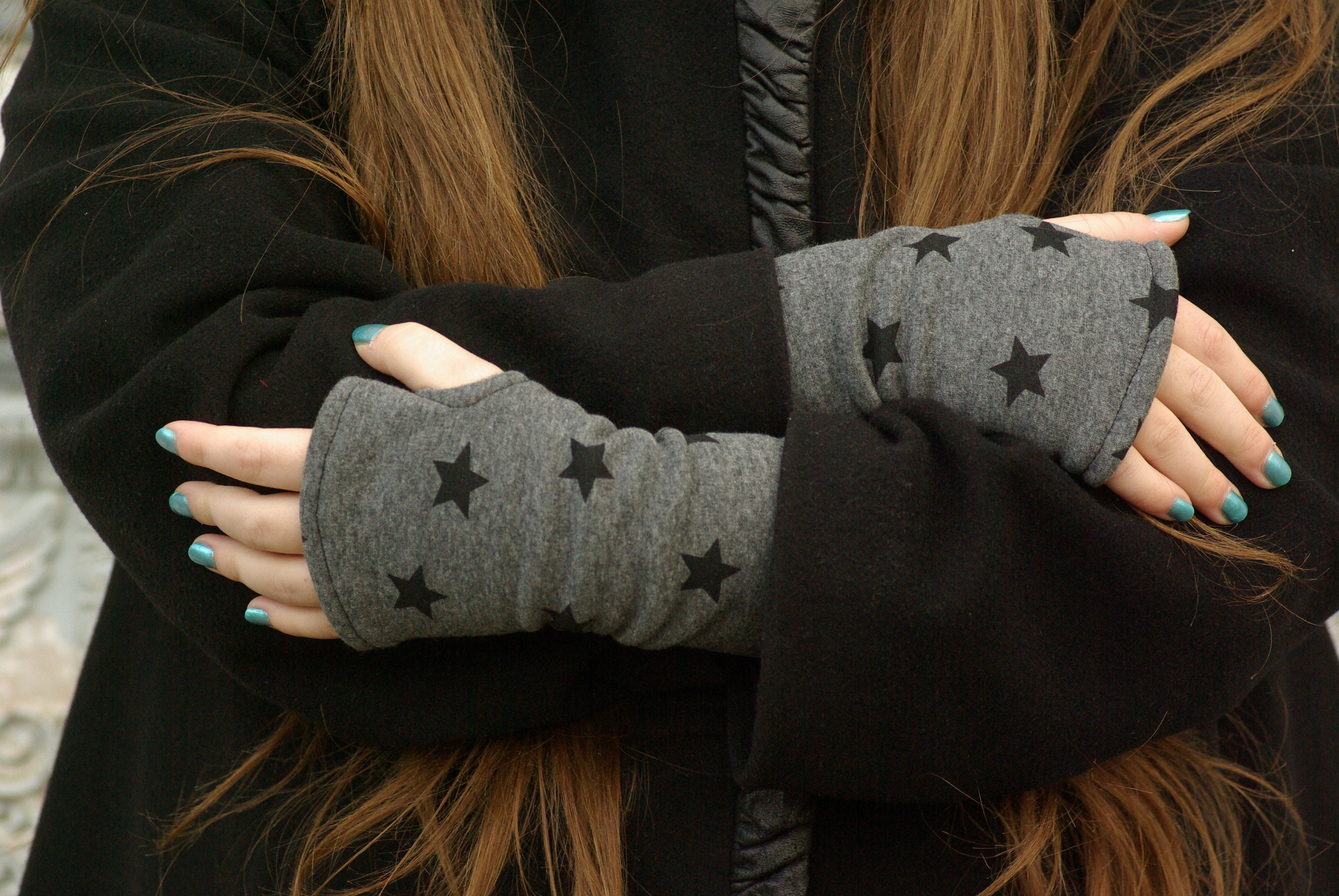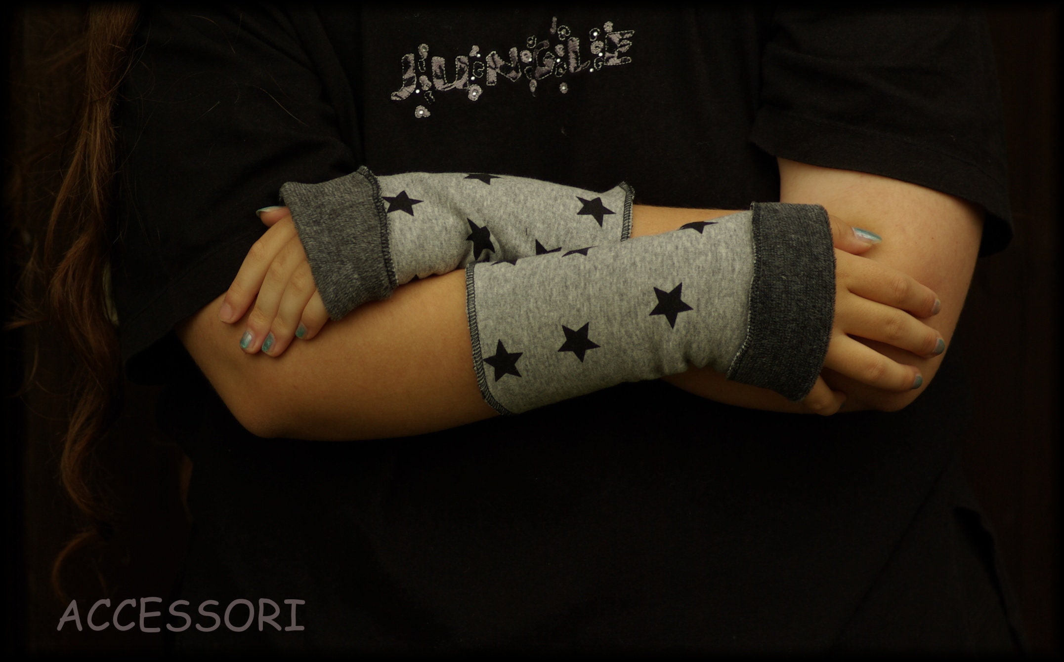 Warm, soft, comfortable arm warmers that can be rolled up and turned (length 25 cm) or with a thumb hole (length 21 cm) made from a wonderfully cuddly material: 56% polyester, 40% cotton, 4% elastane,