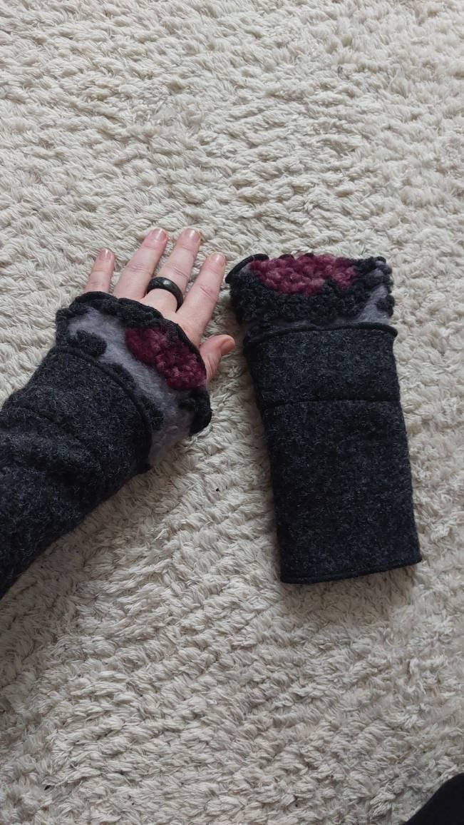 Wool arm warmers, length 20 cm, material: the monochrome fabric - 100% wool, the patterned fabric - 80% wool, 20% cotton