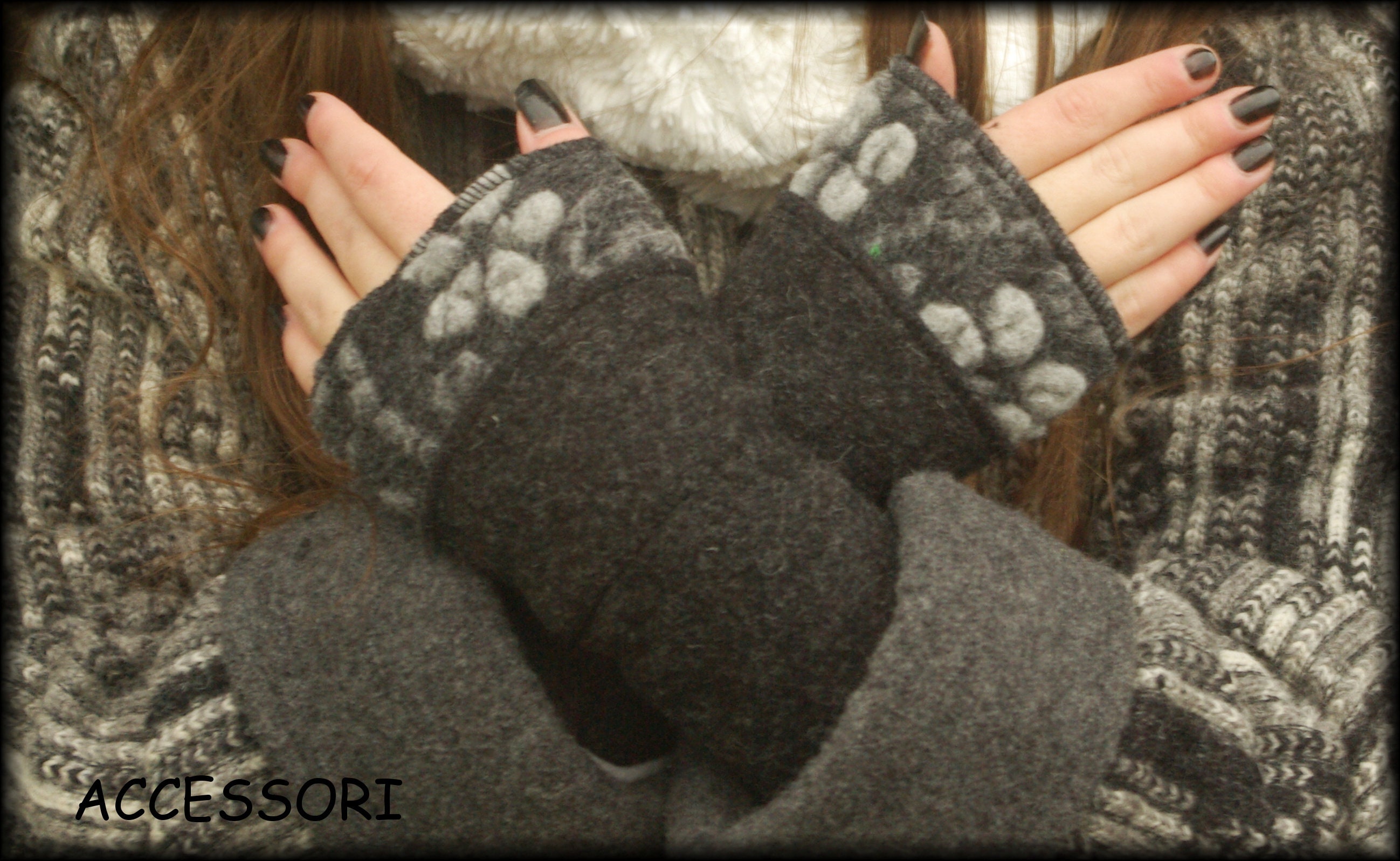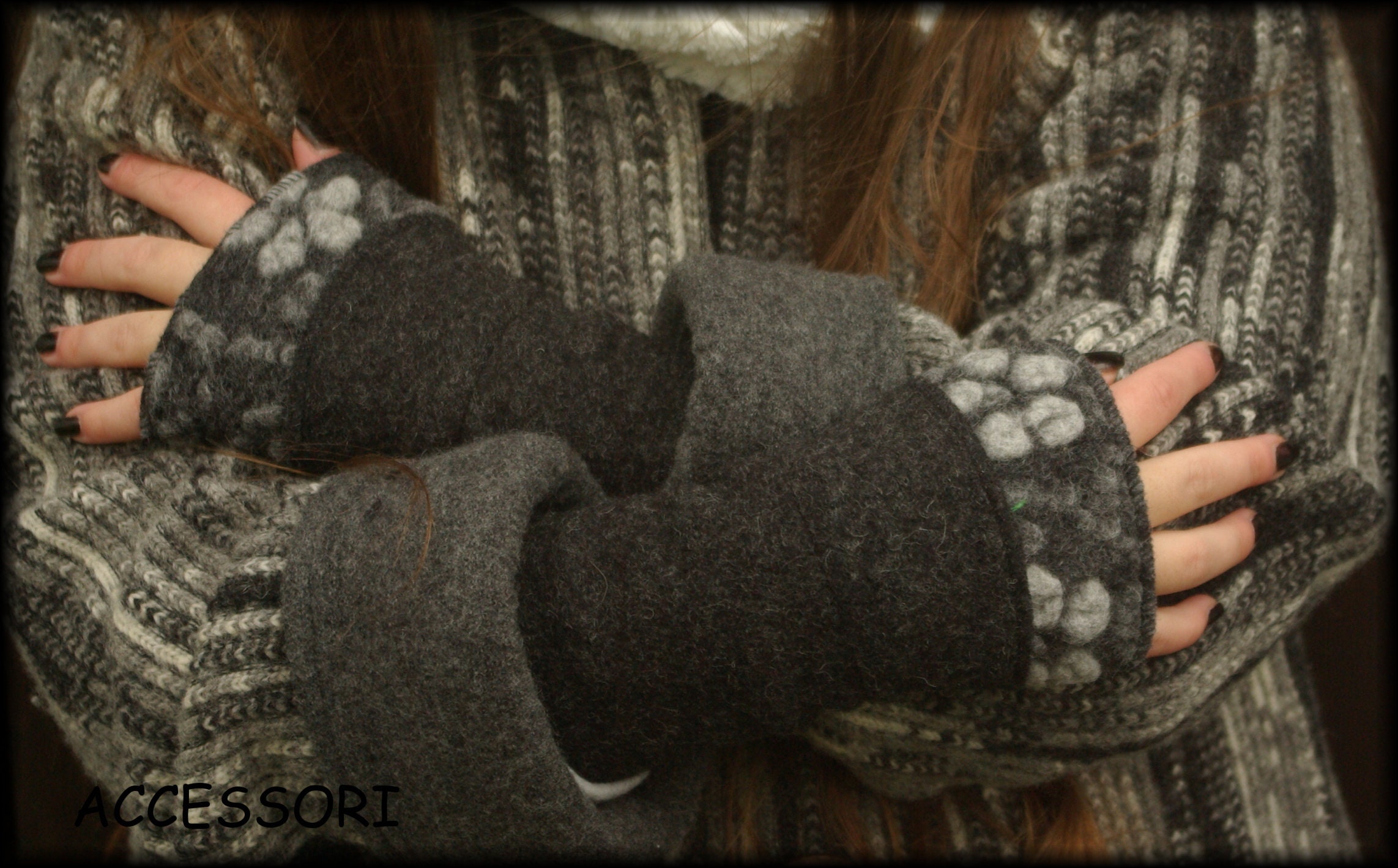 Wool arm warmers, 20 cm long, material: the solid-color fabric - 100% wool, the patterned fabric - 80% wool, 20% polyester