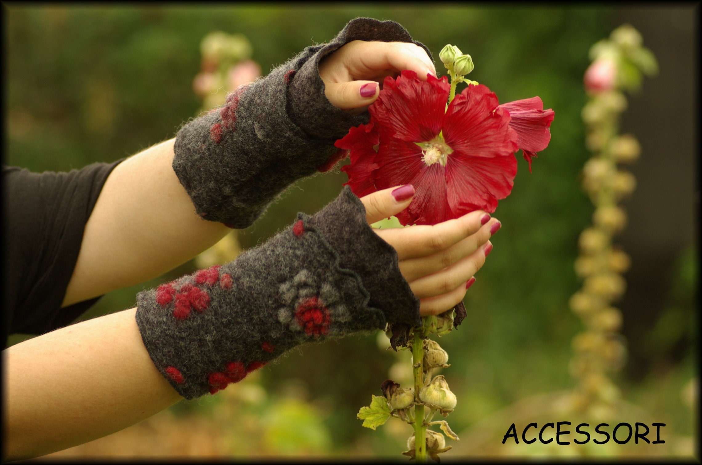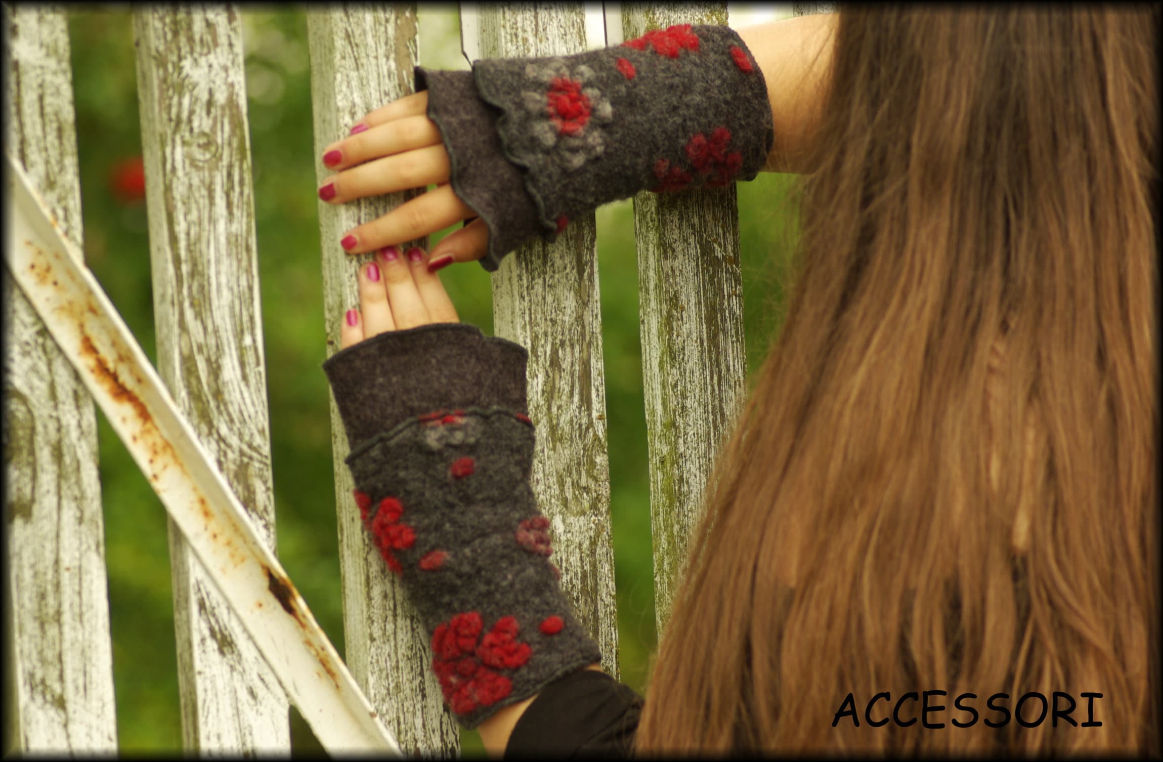 Wool arm warmers with thumb hole, length 20 cm, material: the solid-color fabric - 100% wool, the patterned fabric - 80% wool, 20% polyester