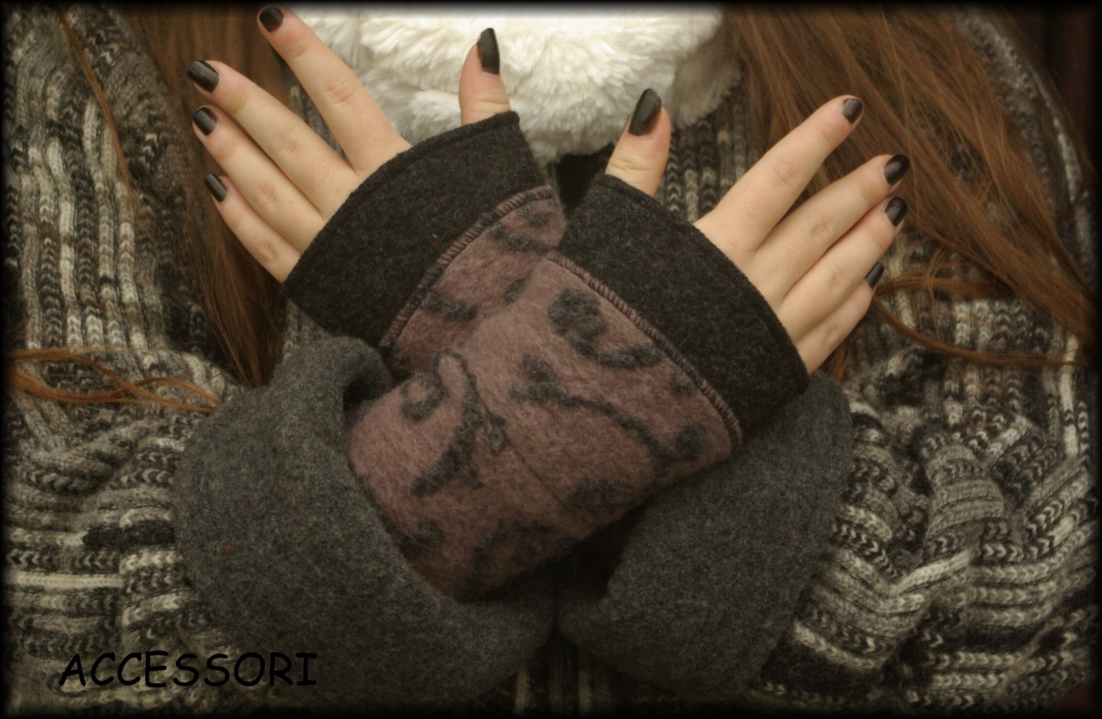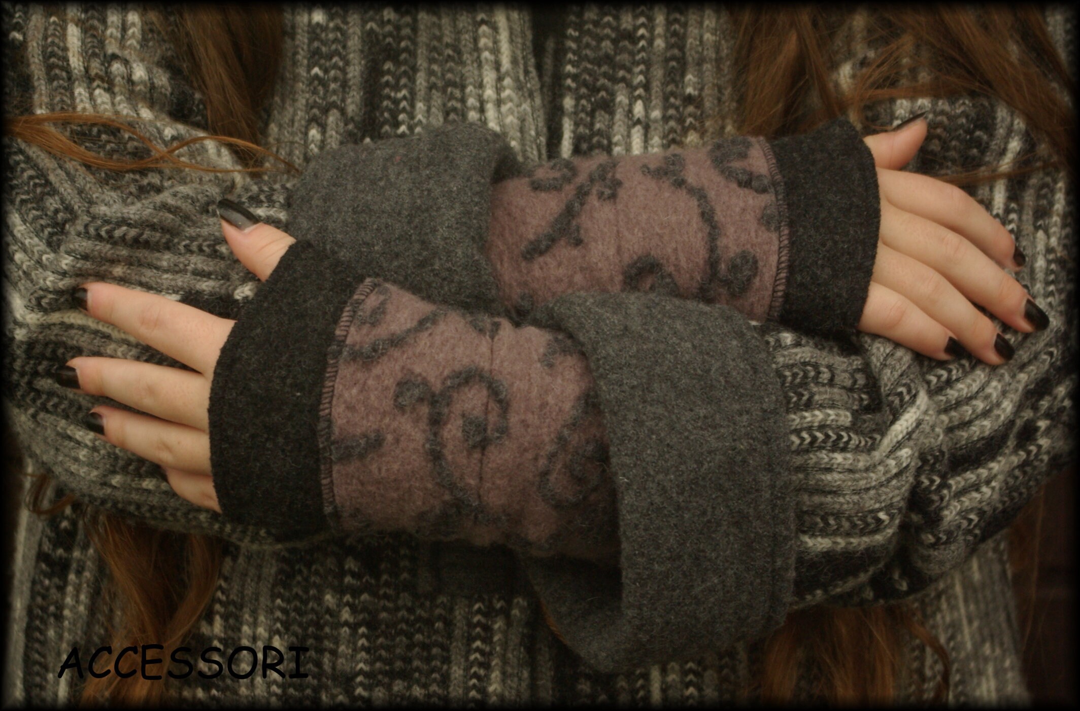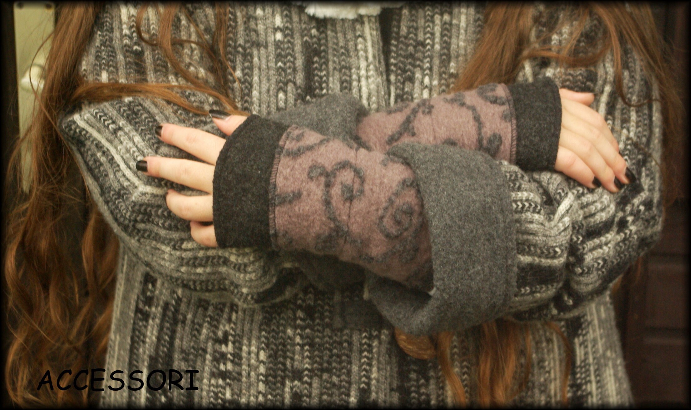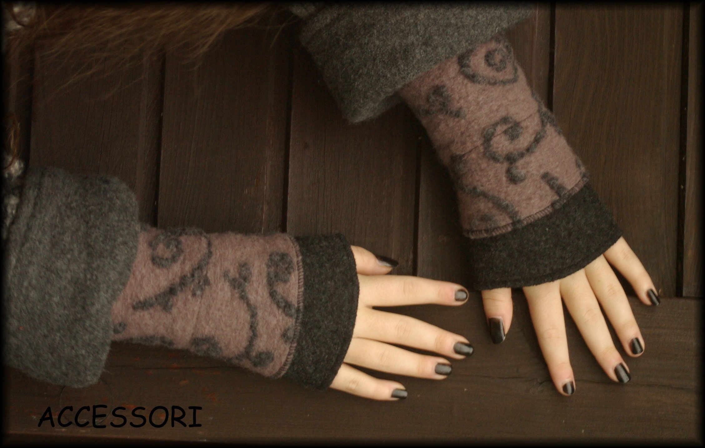 Wool arm warmers, 20 cm long, material: the solid-color fabric - 100% wool, the patterned fabric - 80% wool, 20% cotton