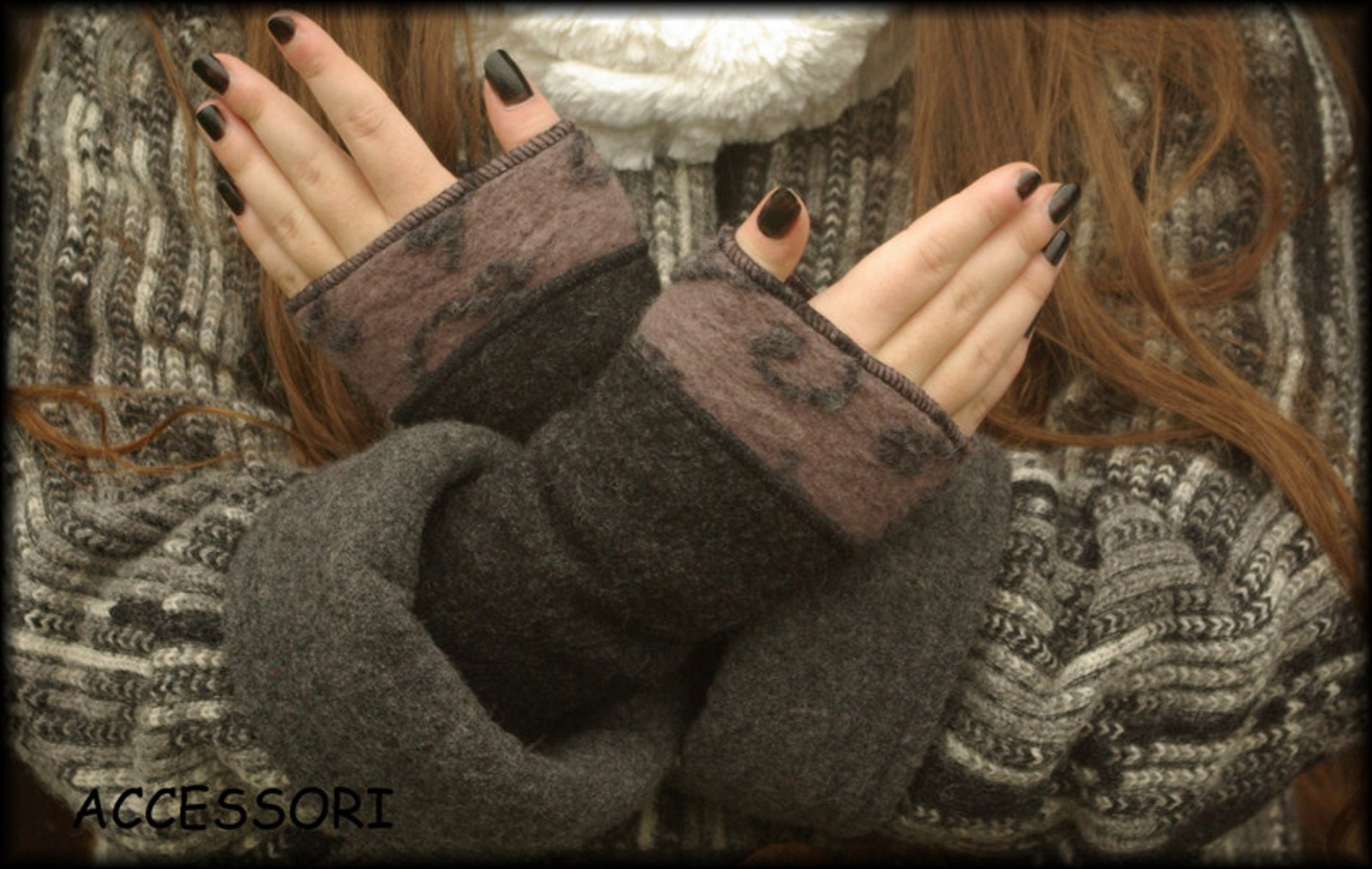 Beautiful wool arm warmers, length 20 cm, material: the monochrome fabric - 100% wool, the patterned fabric - 80% wool, 20% polyester, color grey and brown