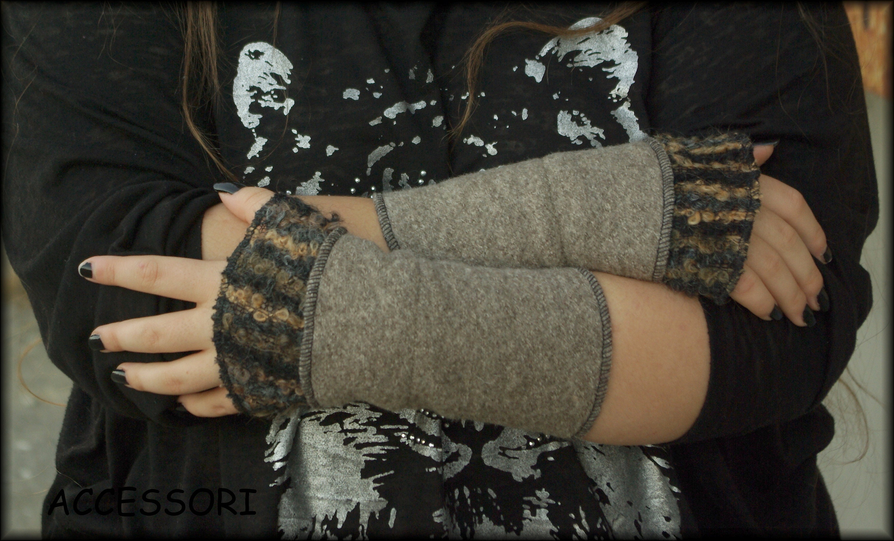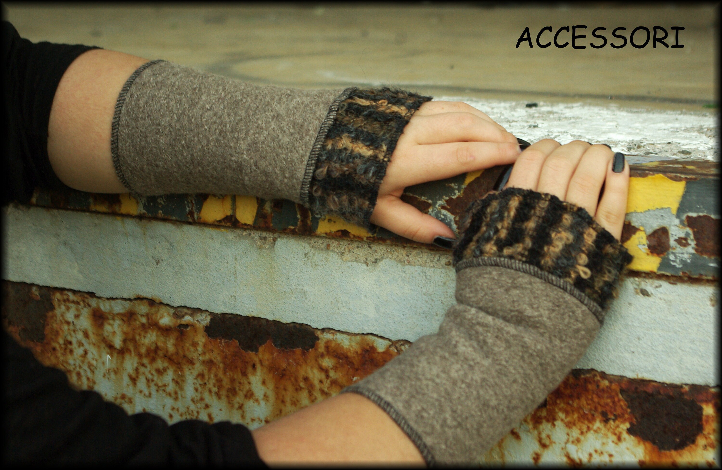 Beautiful wool arm warmers, material: solid-color fabric 100% wool, striped fabric 40% wool 60% polyester, length 20 cm