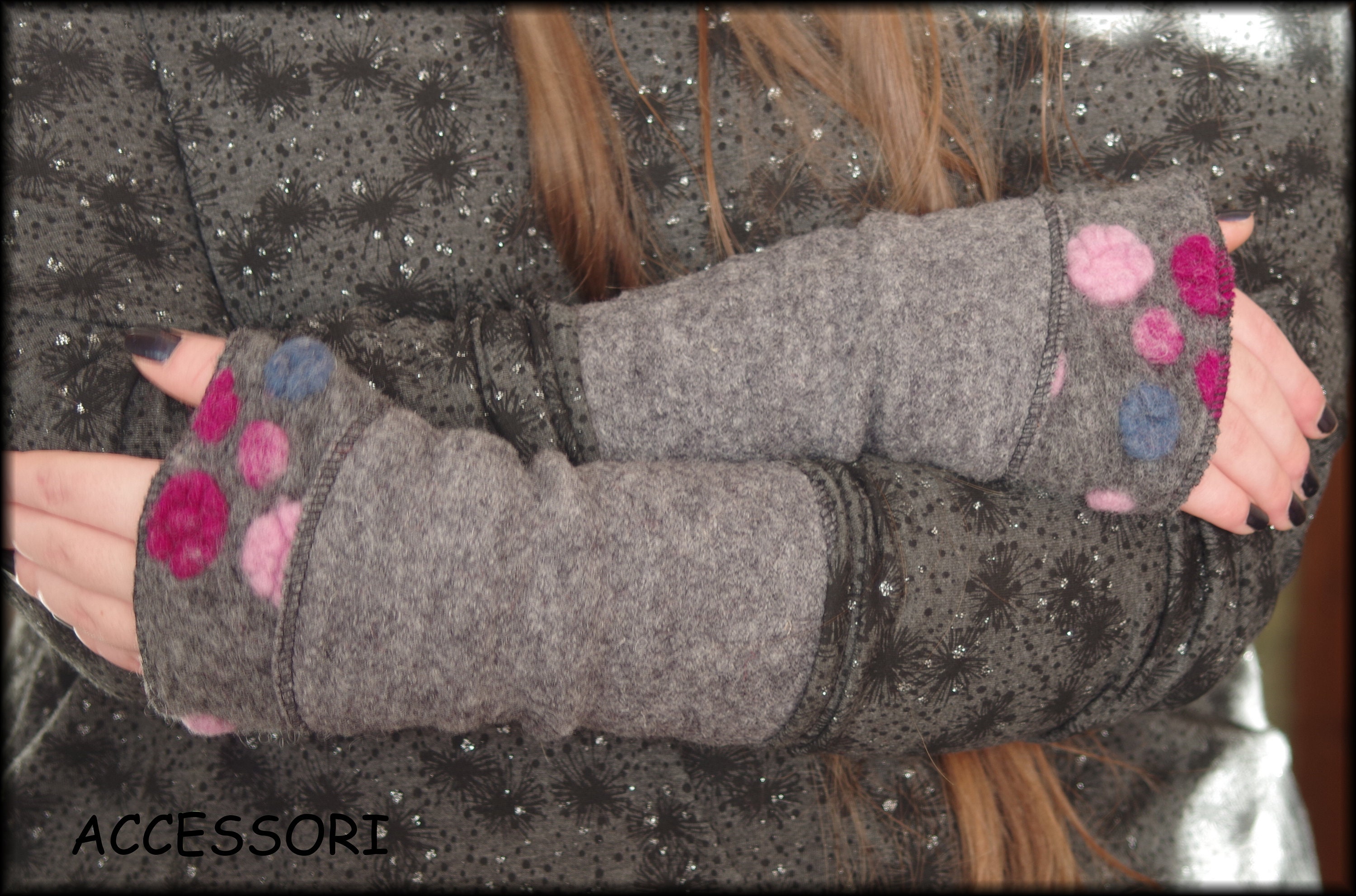 Soft, warm arm tulips made of wool fabric, length 20 cm, material: The monochrome fabric-100% wool, the patterned fabric-80% wool, 20% polyester