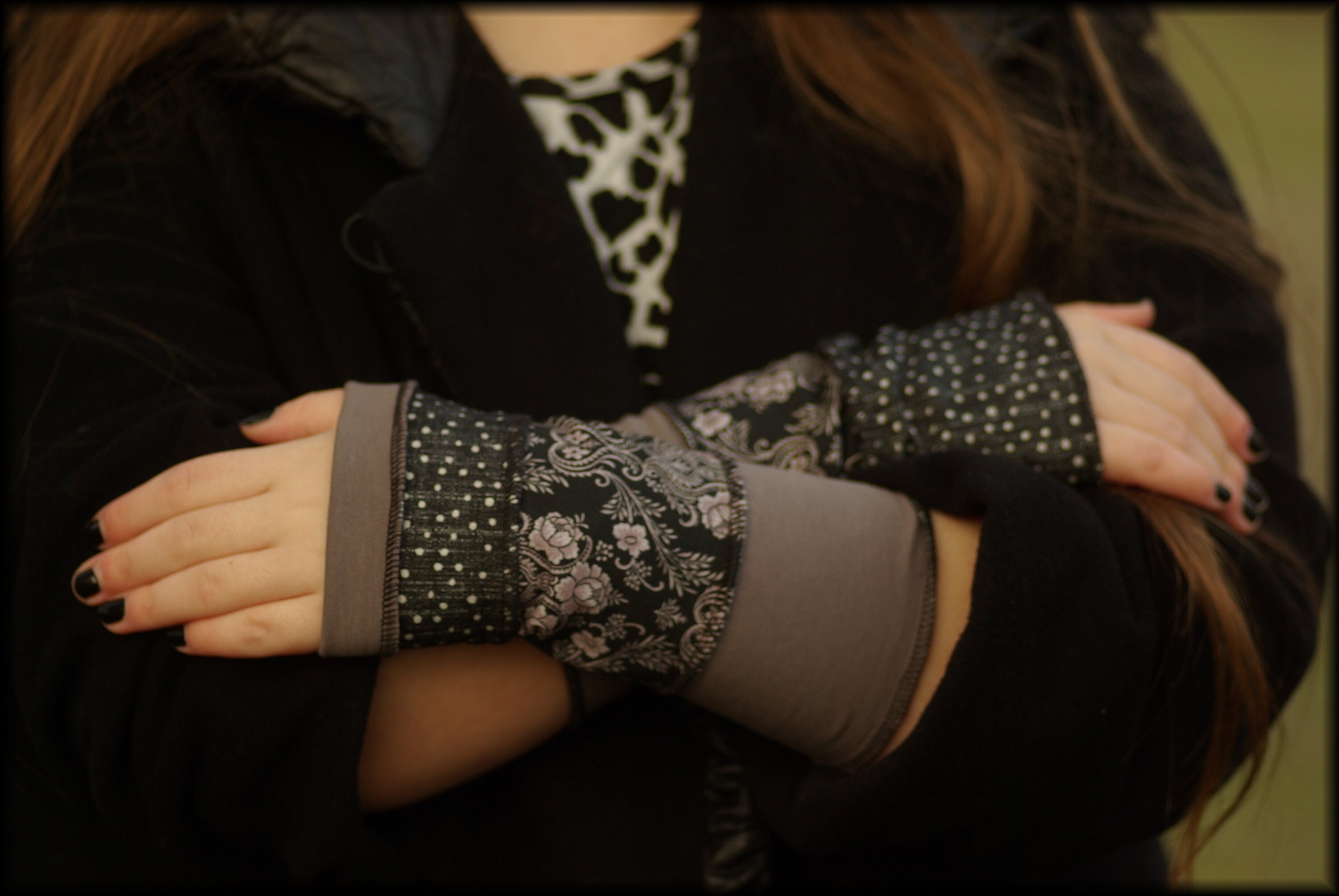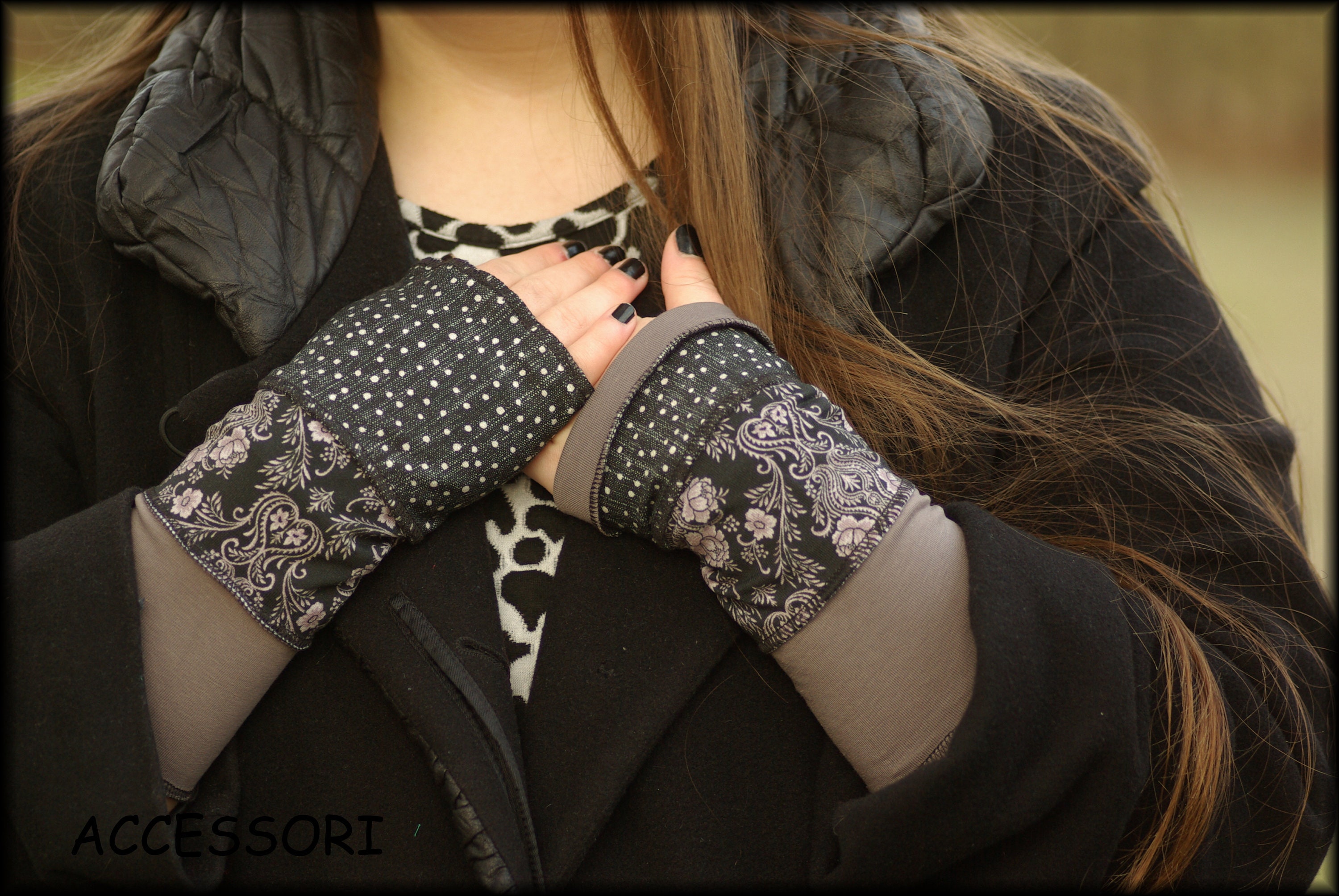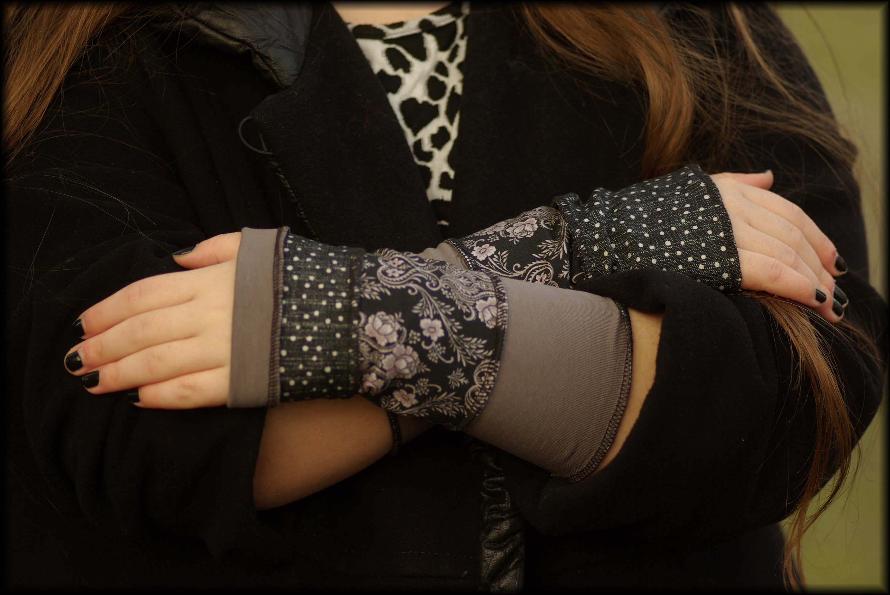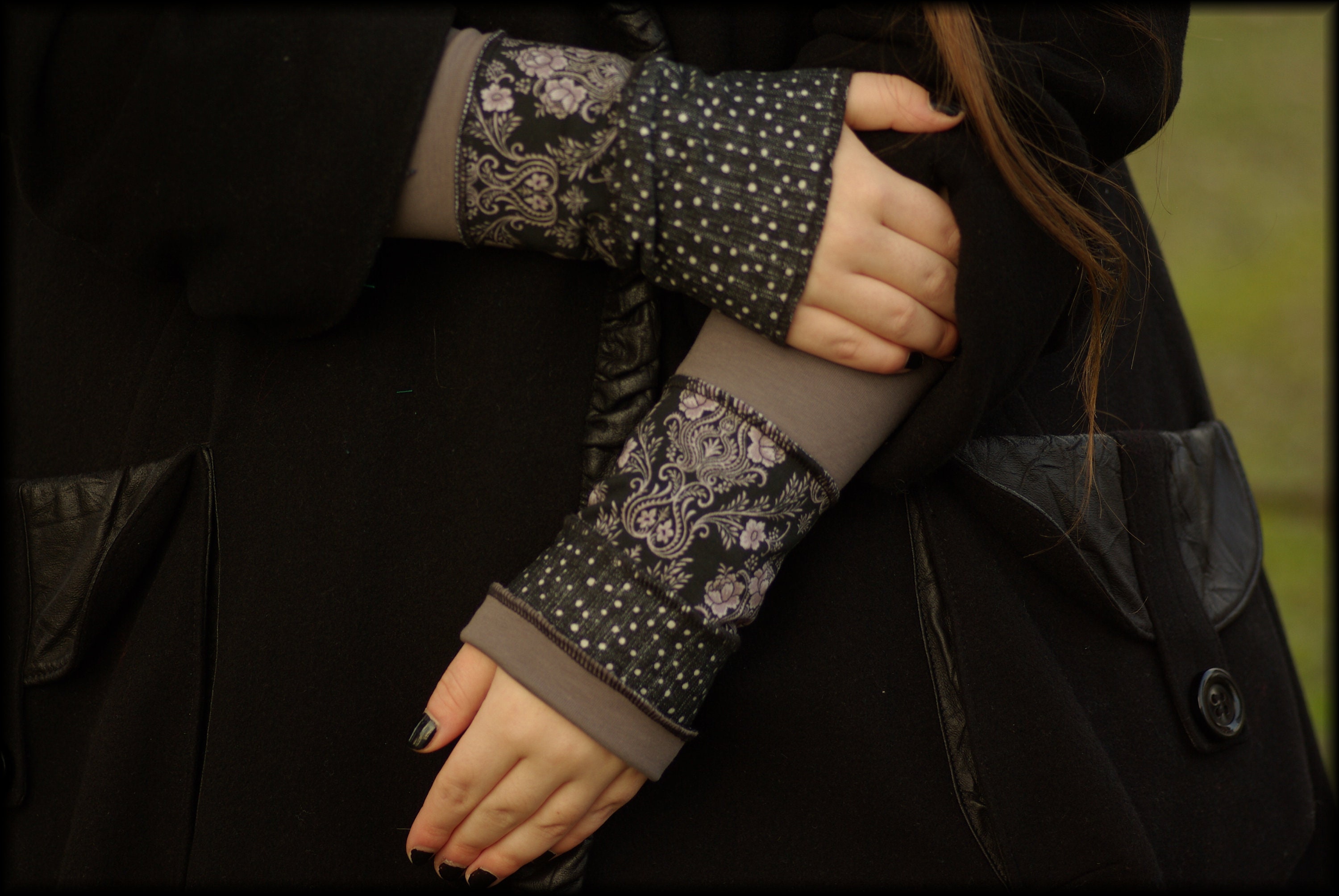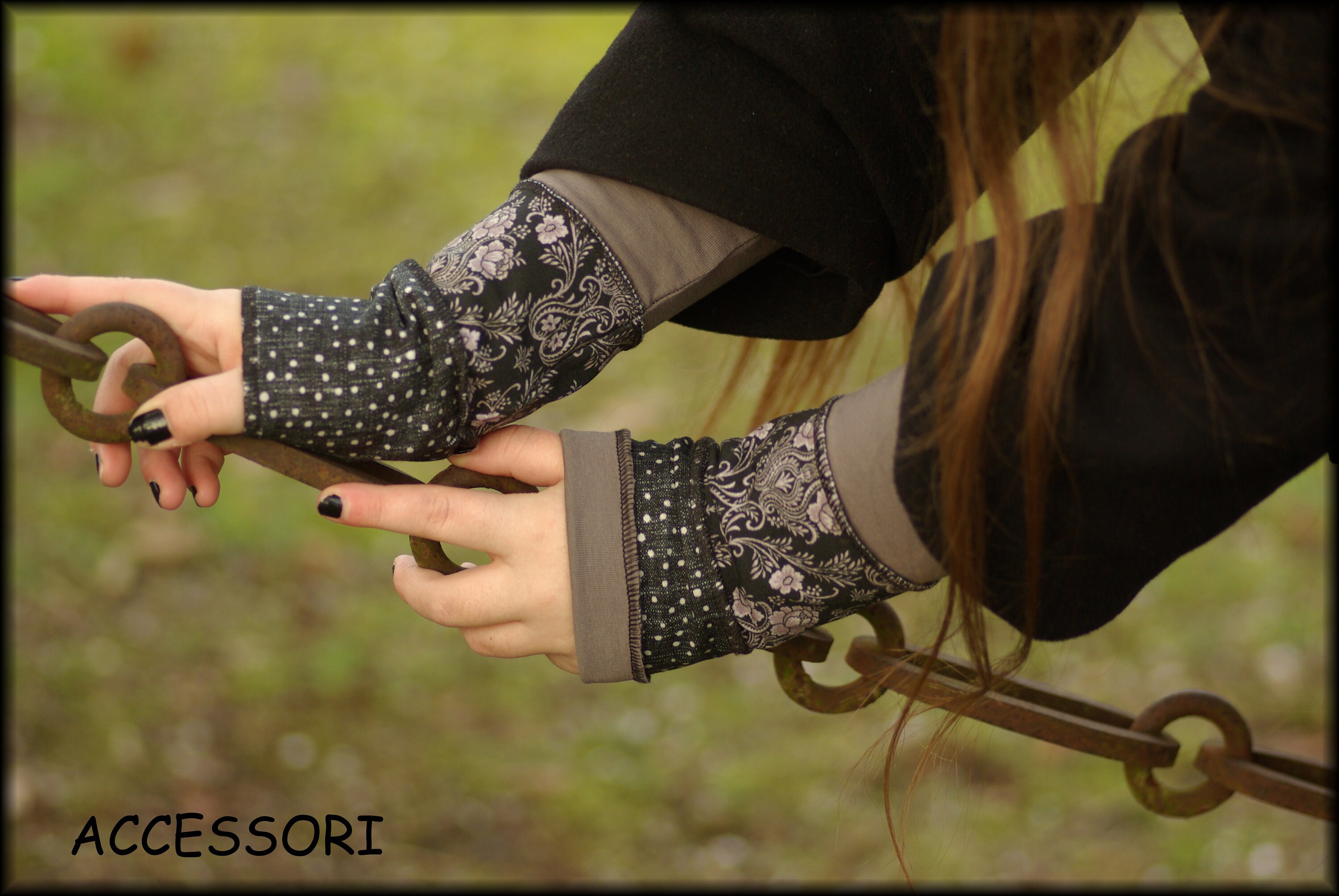 Beautiful pulse warmers in grey brown color, dotted and flowered, for turning and turning, length 22 cm, width 11 cm (on request I can also sew other dimensions. They are sewn from double fabric.