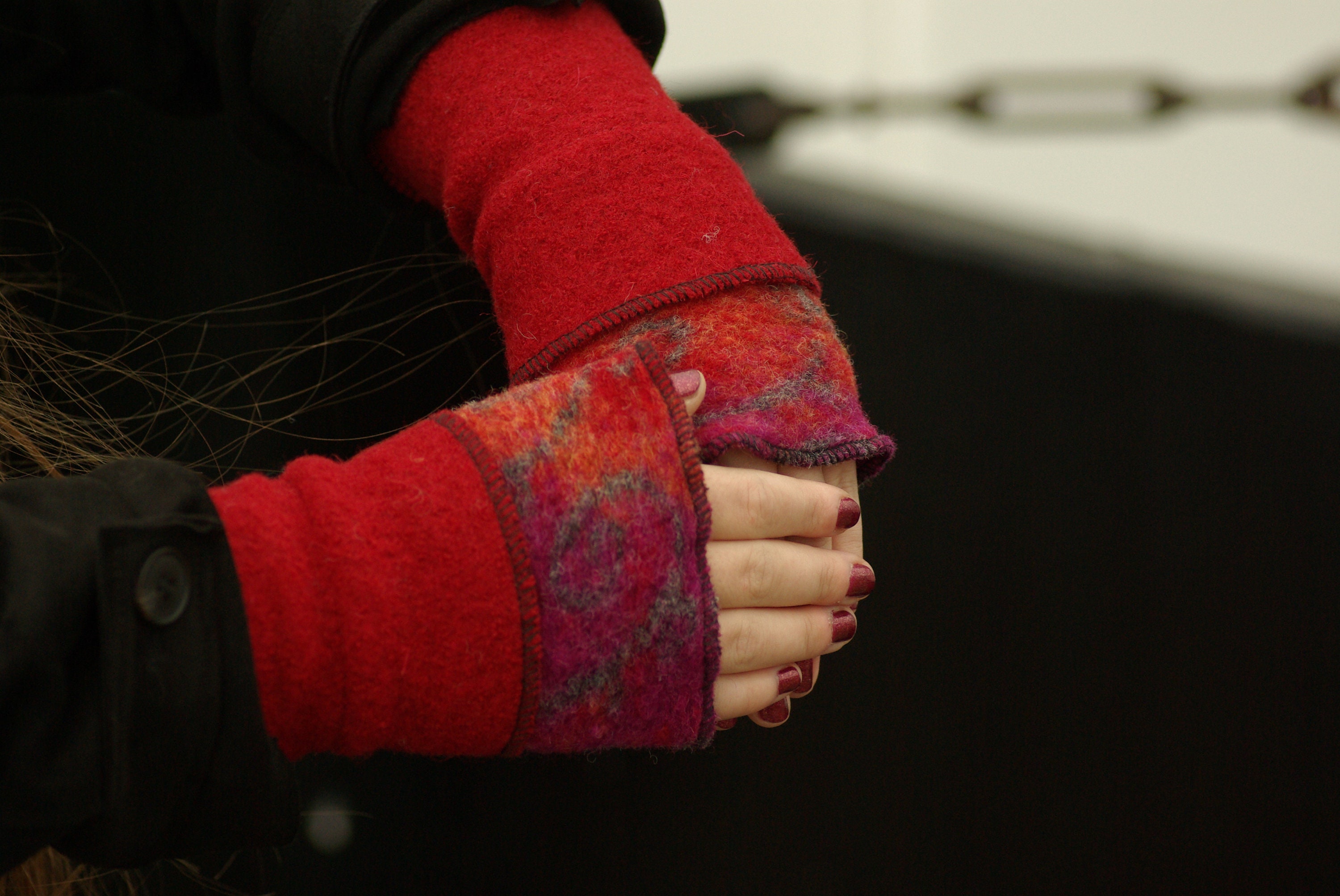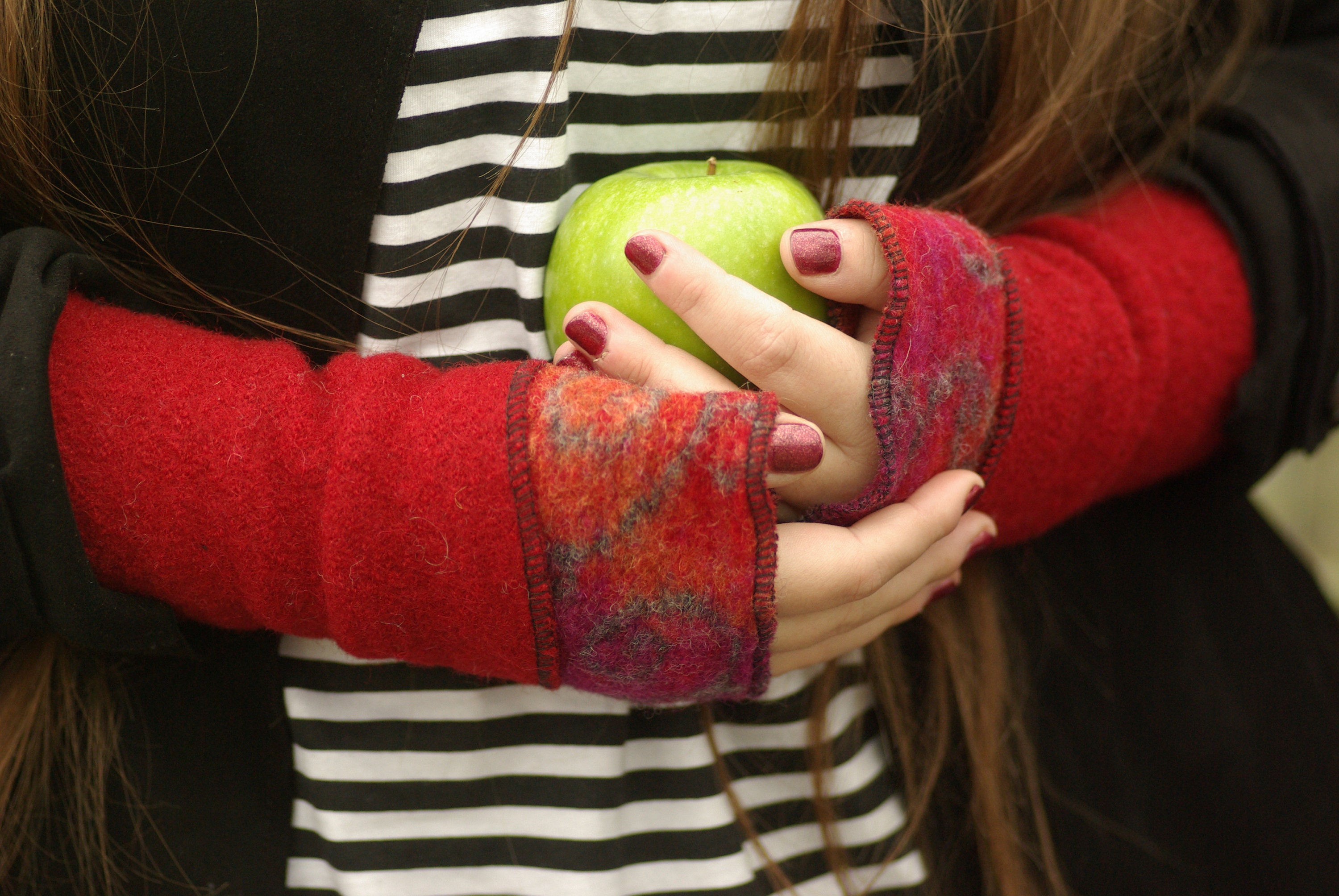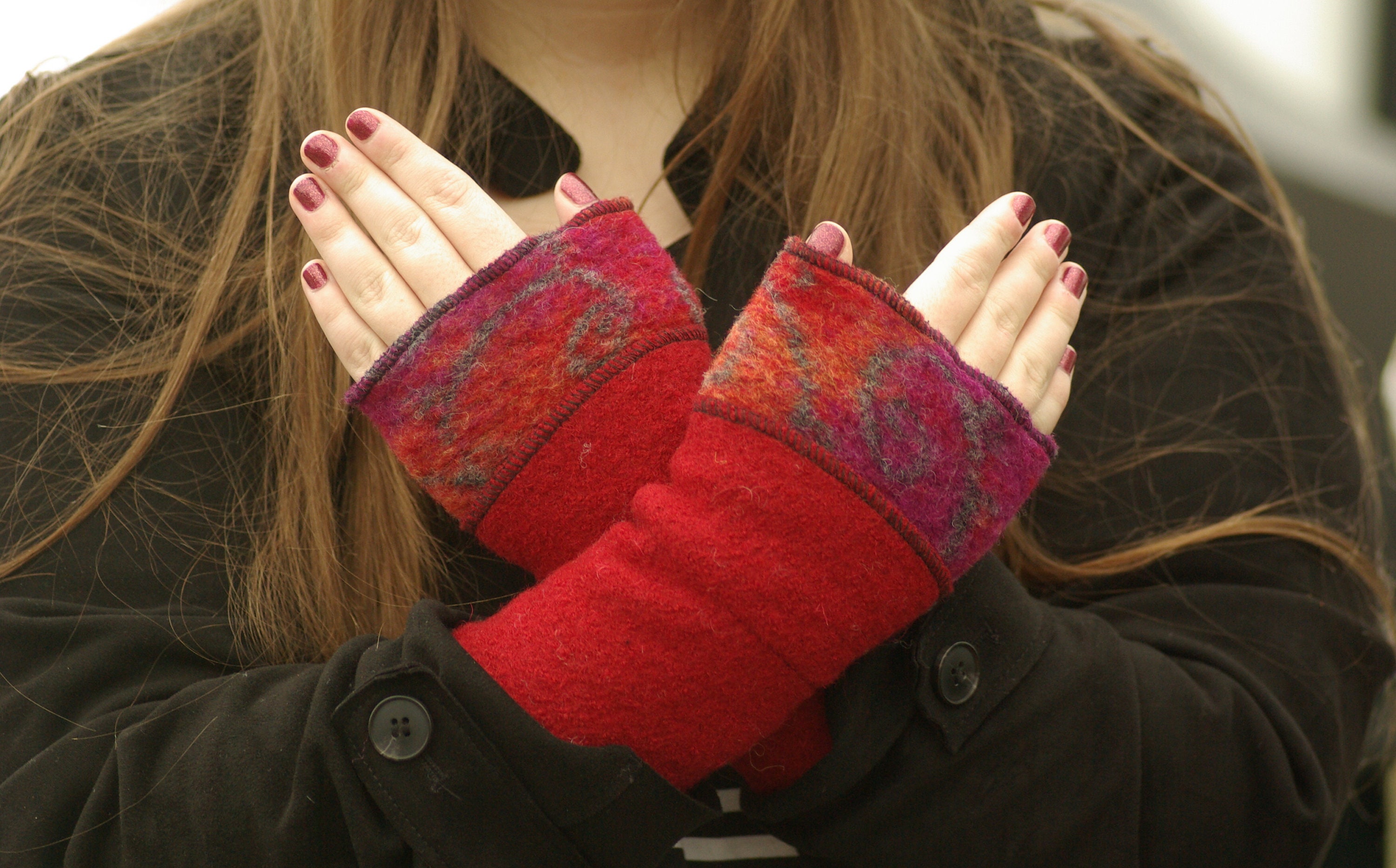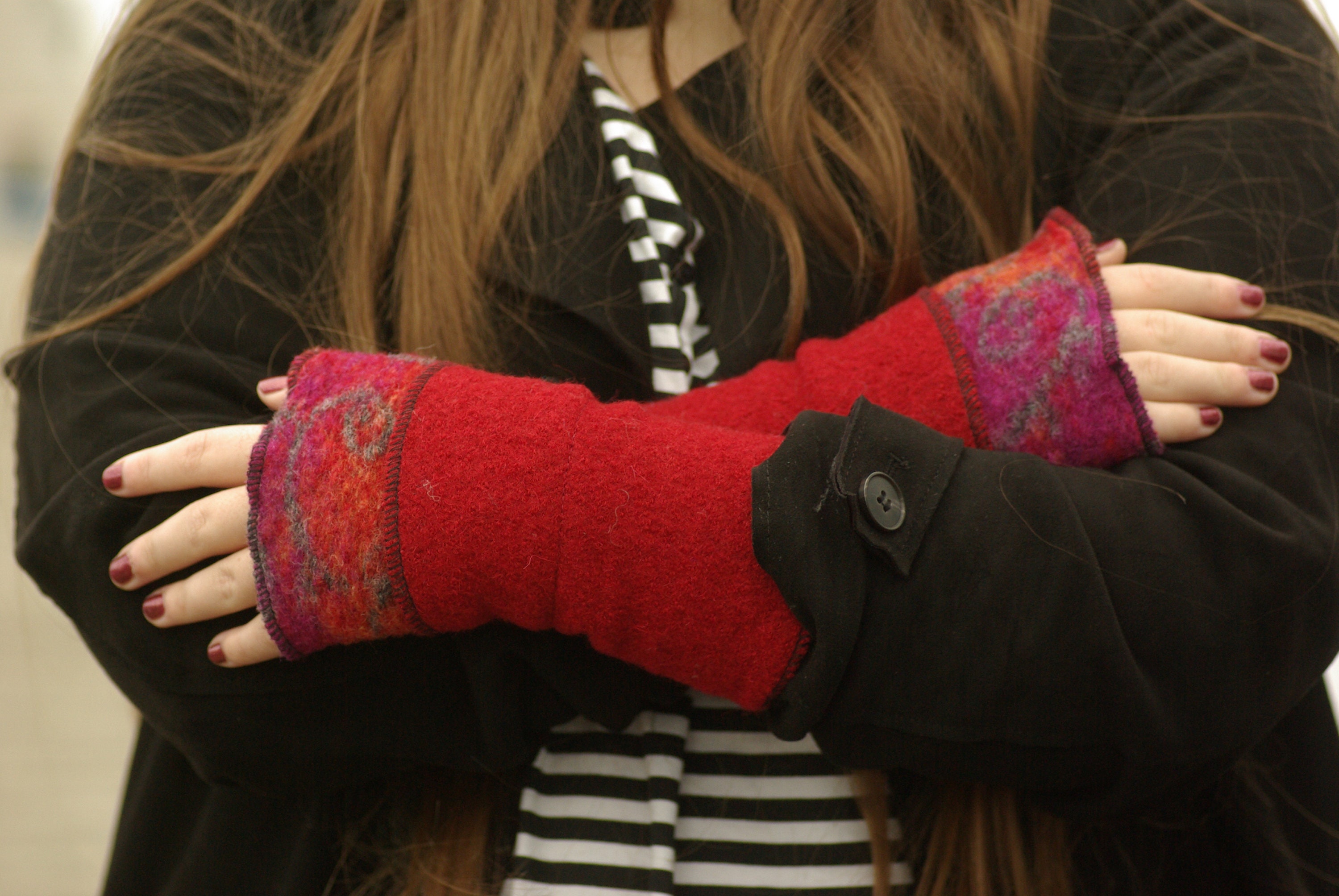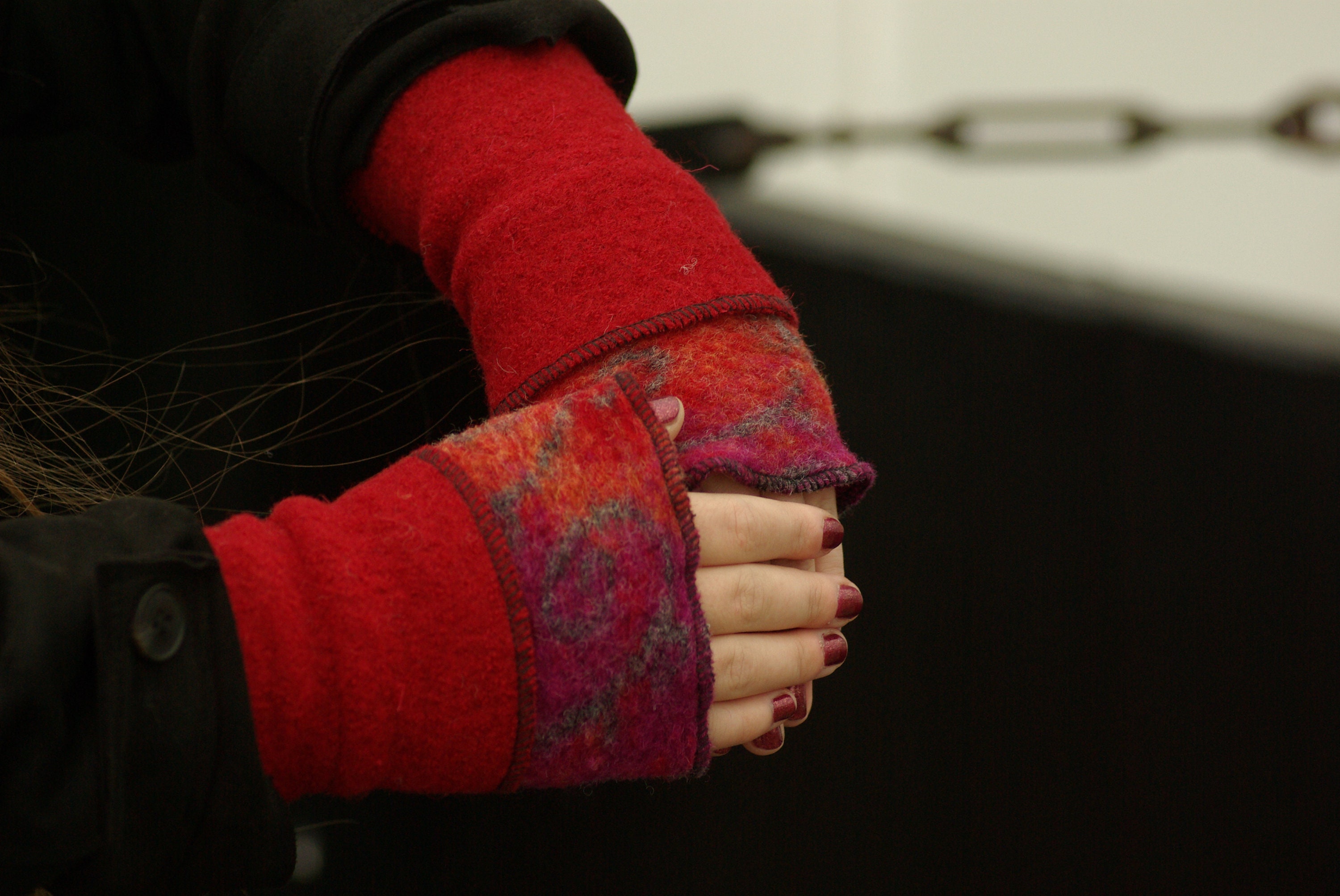 Beautiful arm warmers made of wool (plain fabric 100% wool, polka dot fabric 80% wool, 20% cotton), the cuffs are 20 cm long, nice and warm and light