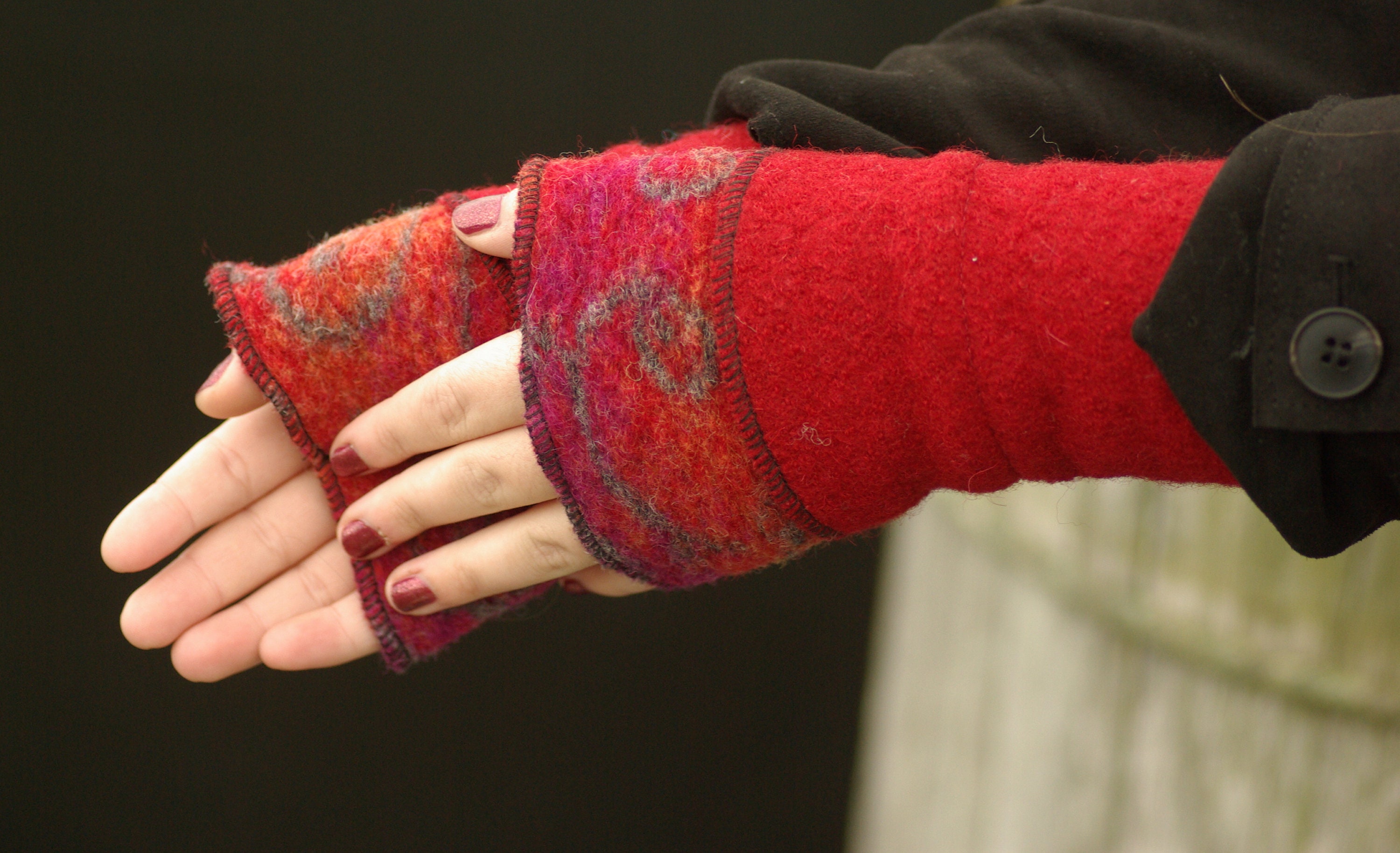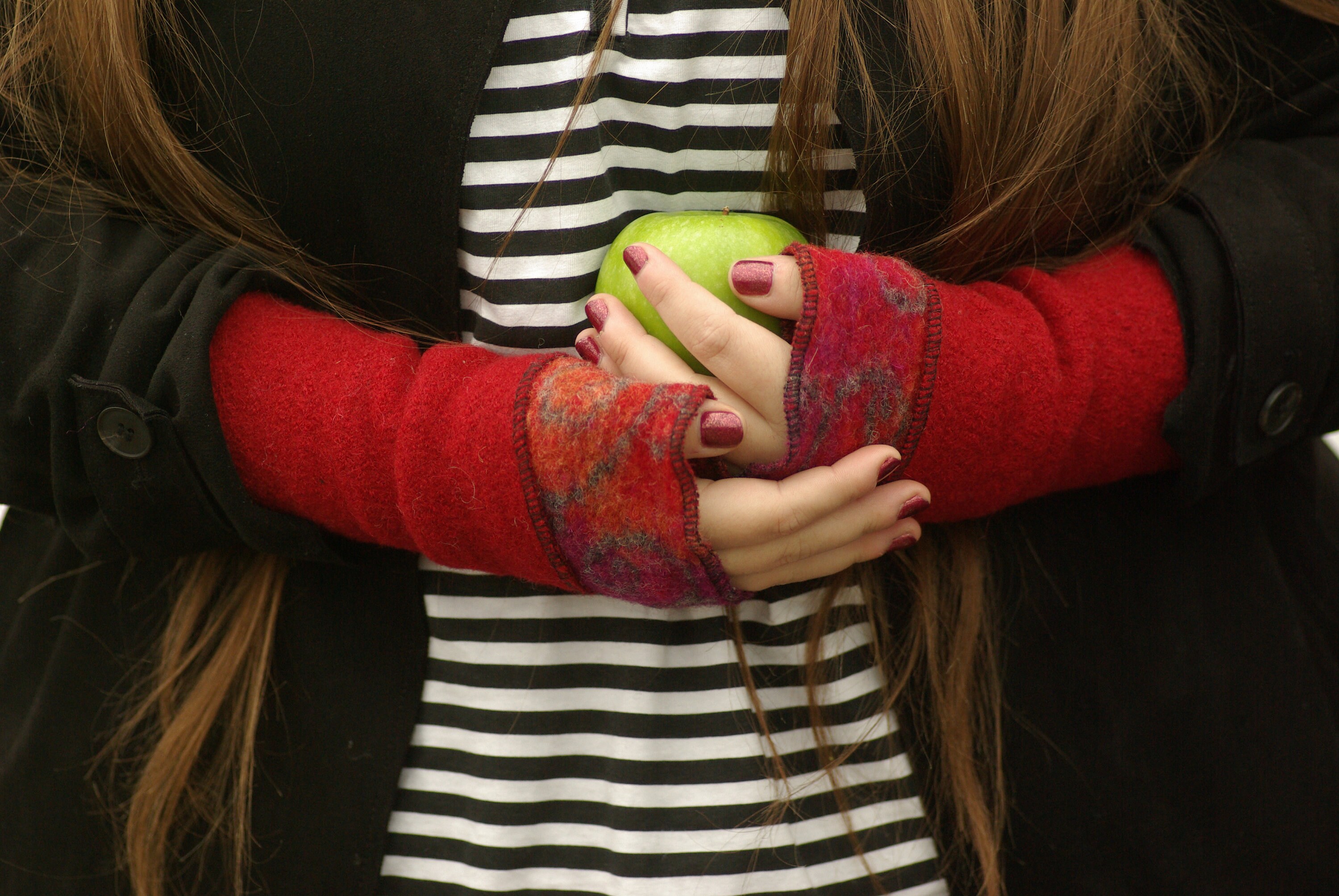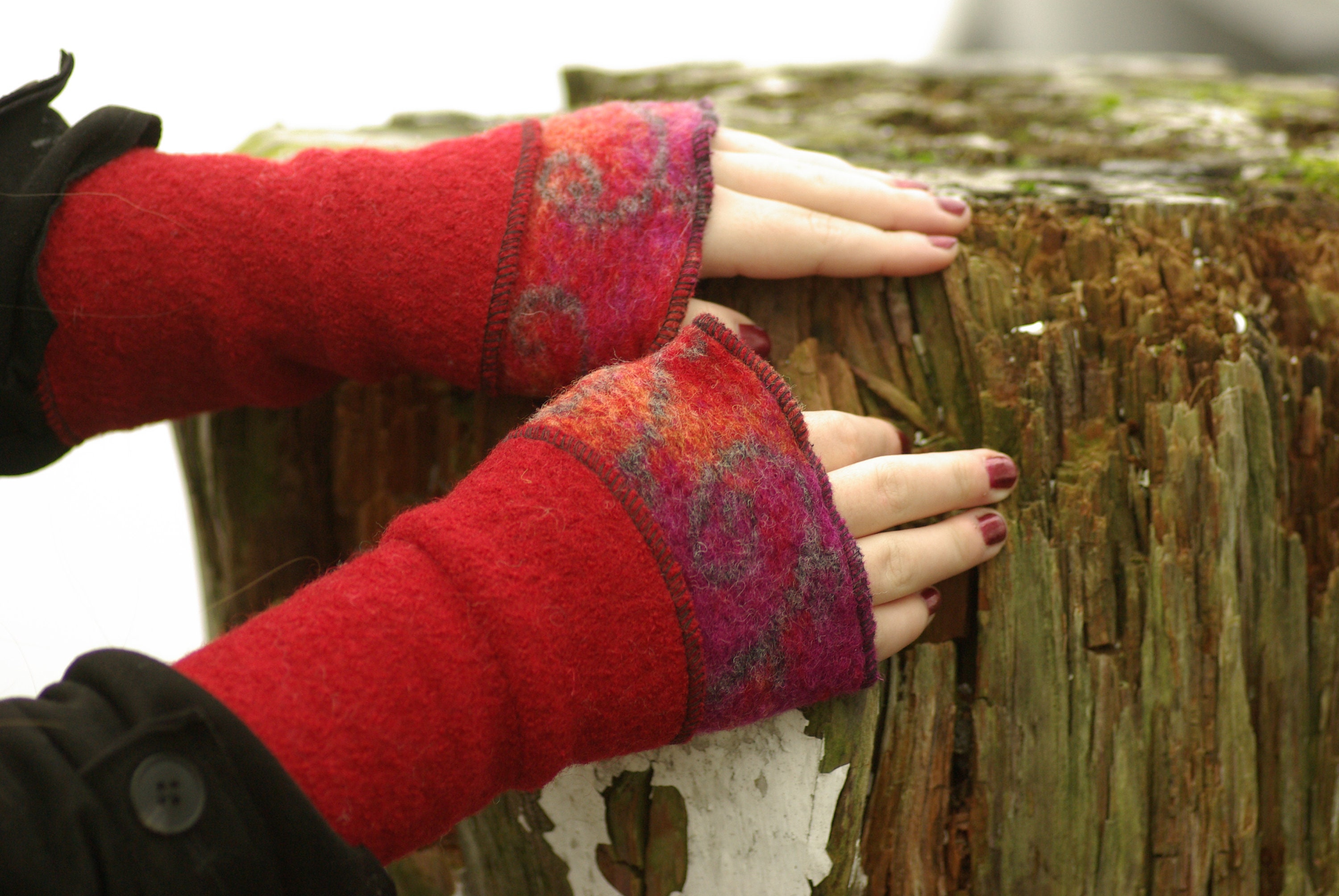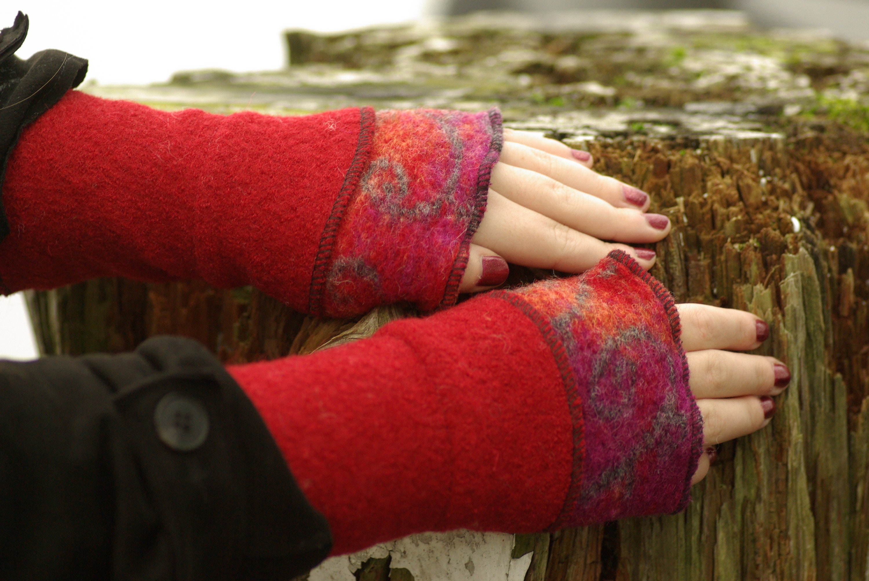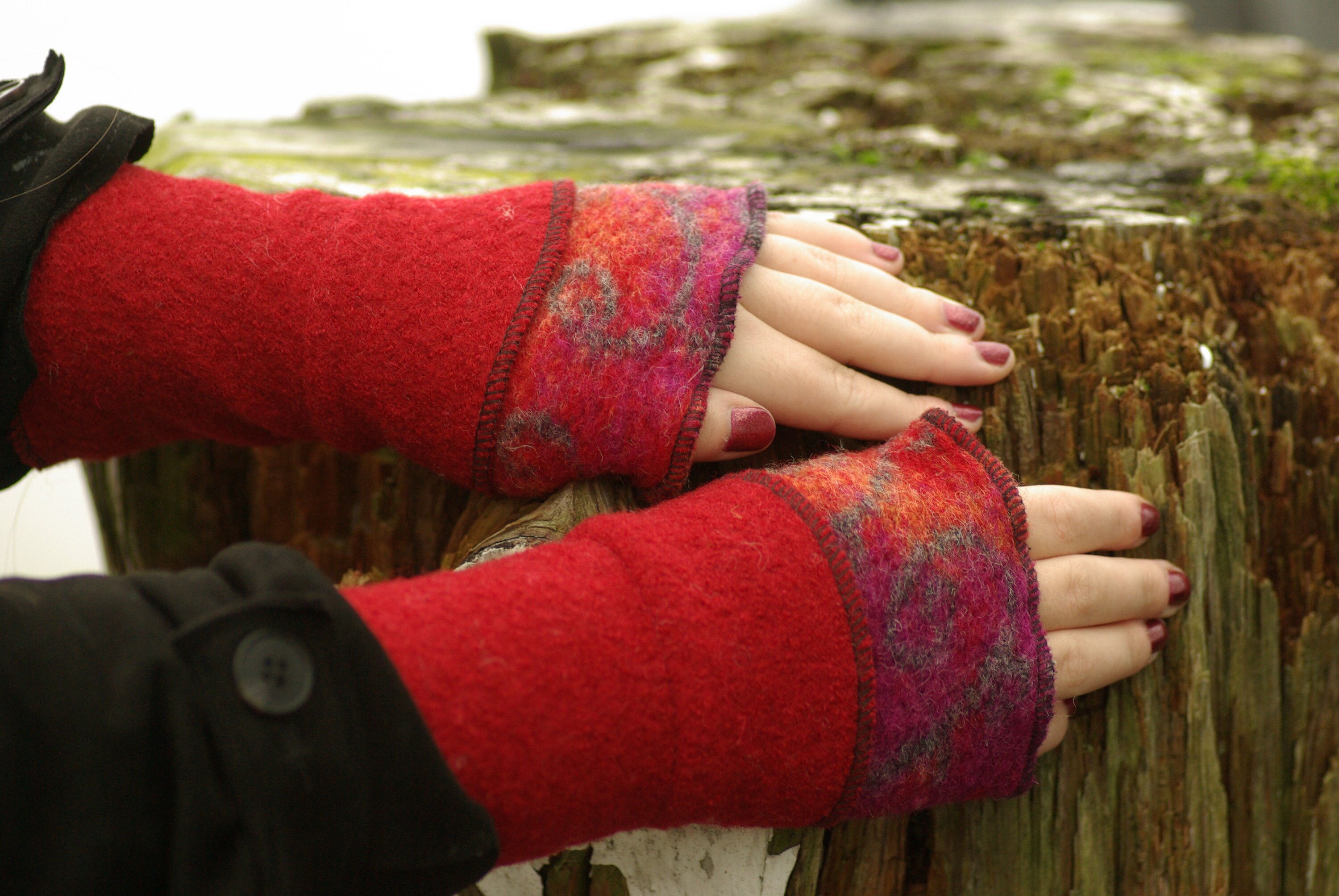 Beautiful arm warmers made of wool (plain fabric 100% wool, polka dot fabric 80% wool, 20% cotton), the cuffs are 20 cm long, nice and warm and light